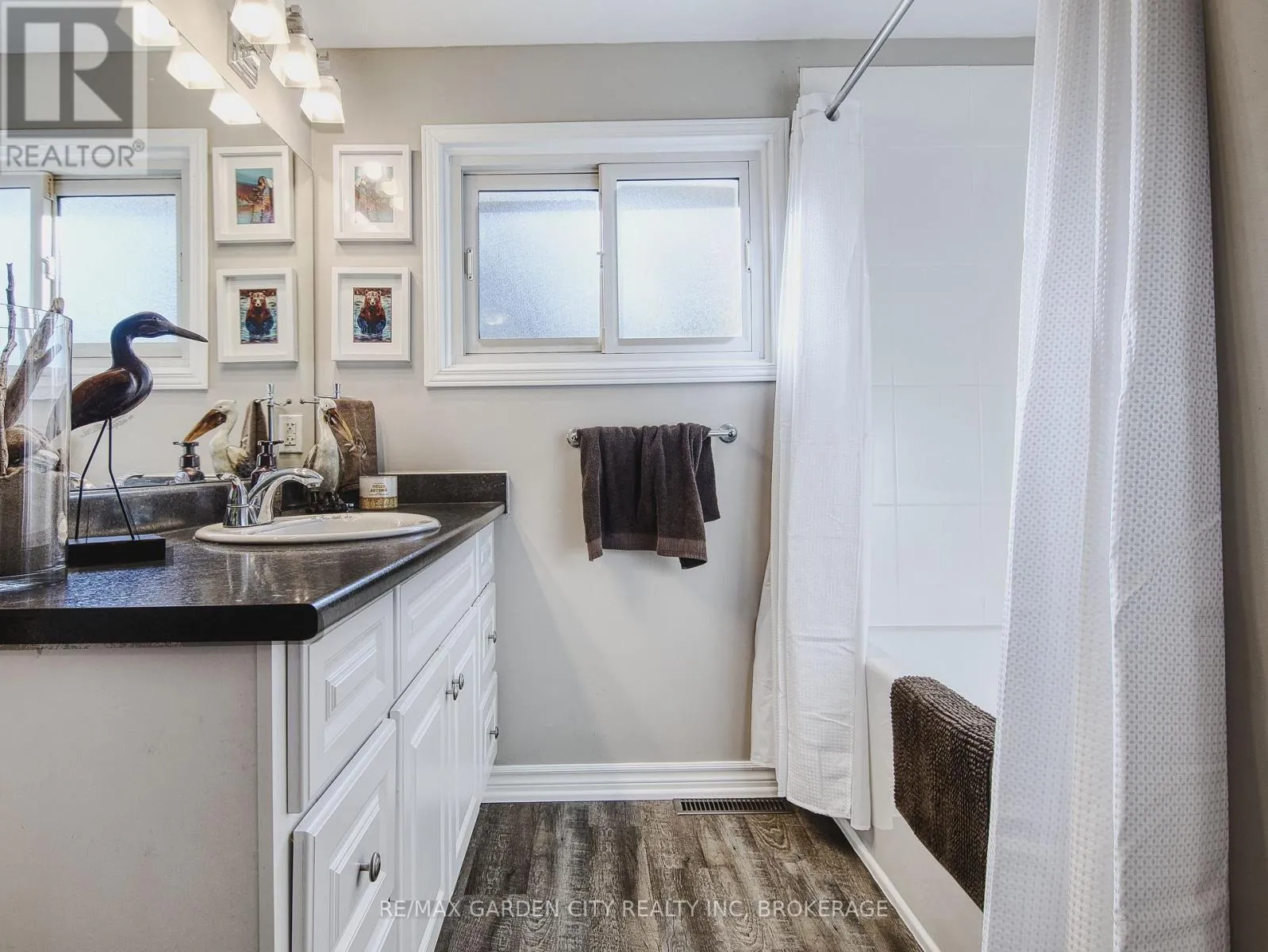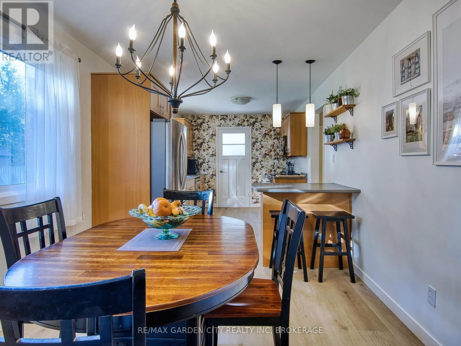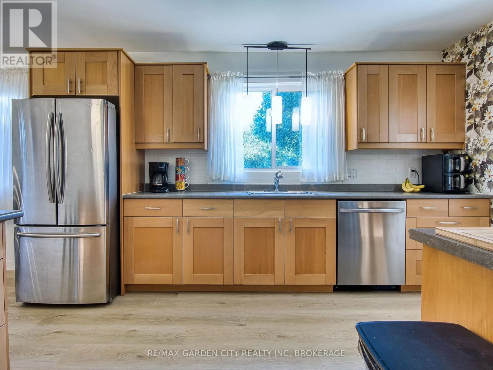 Cross Streets: Dorchester Rd & Thorold Stone RD. ** Directions: North of Thorold Stone Rd, West of Dorchester. Desired Rolling Acres area. Walk to your choice of schools, park, minutes to the QEW for the commuter and all amenities. Solid, spotless, 3+1 bedroom brick family home with attached double car garage and paved, double private driveway. Fully fenced, large backyard with covered concrete patio/BBQ area overlooking the sunken above ground pool and deck. Garden shed, landscaped. Covered tiled front porch entryway to foyer. Great floor plan with oversized, bright replacement windows throughout. Inviting hardwood floored living room with gas fireplace, large, formal dining room. Open concept dinette, kitchen with walkout to backyard. Redone 3 piece bathroom with spacious walk-in shower plus a newer 4 piece bathroom upstairs. 3 bedrooms and a walk-in pantry. Comfortable, cozy rec room, high ceilings and pot lights. 4th bedroom, laundry room, storage room, 8 year new FAG furnace and CA unit. 200-amp breakers having enough power for that backyard hot tub you've always dreamed of. Start or move your family into a neighbourhood where you can leave your doors unlocked! This is it! (id:27476)