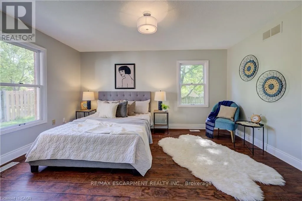 Dorchester to Dawson to Southgate Welcome to serenity!! This stunning home is situated in a beautiful and QUIET neighbourhood with mature trees, yet only minutes to major hwys! Gorgeous fireplace with stone feature sets the tone for this lovey home creating a welcoming atmosphere. Professional upgrades include a Kitchen a chef would love! Stunning cabinetry, pot lighting, quartz countertop, island & stainless steel appliances. Main level primary bedroom with walk-in closet and fully updated bath. The view from the upper level looking over the living room is breathtaking!! An additional added feature, is the open upper hall (could be used as home office). Wood floors, freshly painted and ready! Enjoy this summer is a VERY large fully fenced yard where you can enjoy some family time! (id:27476)
