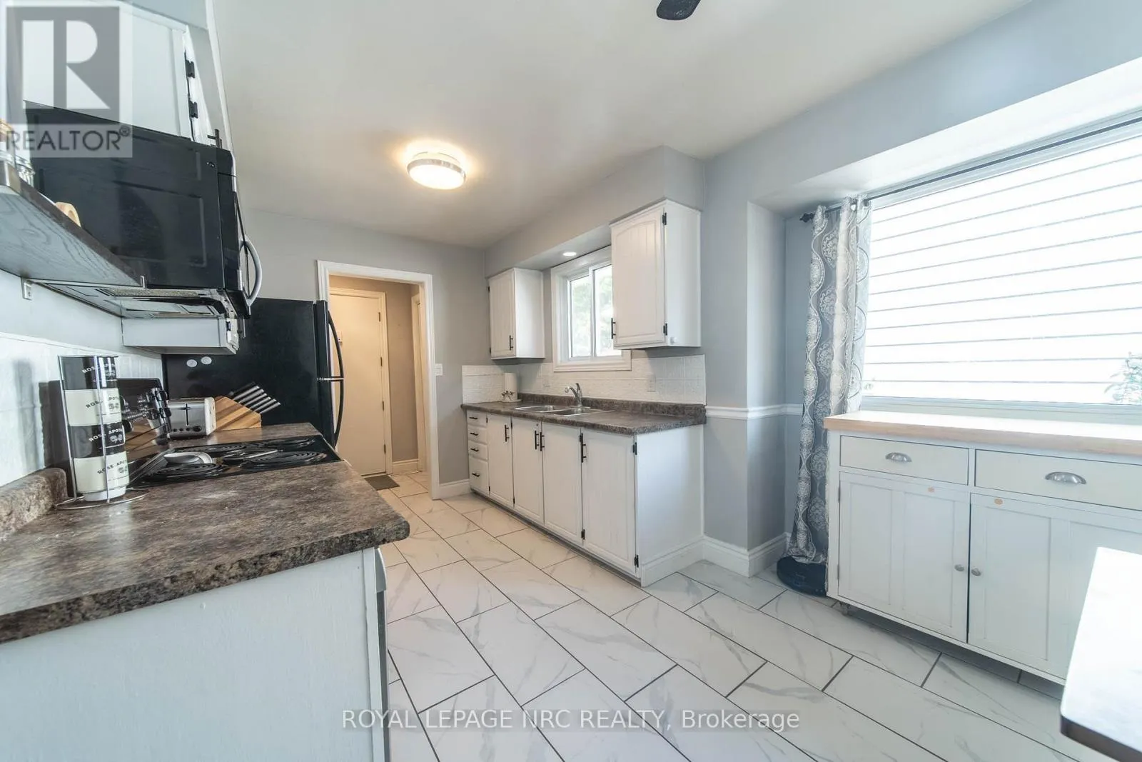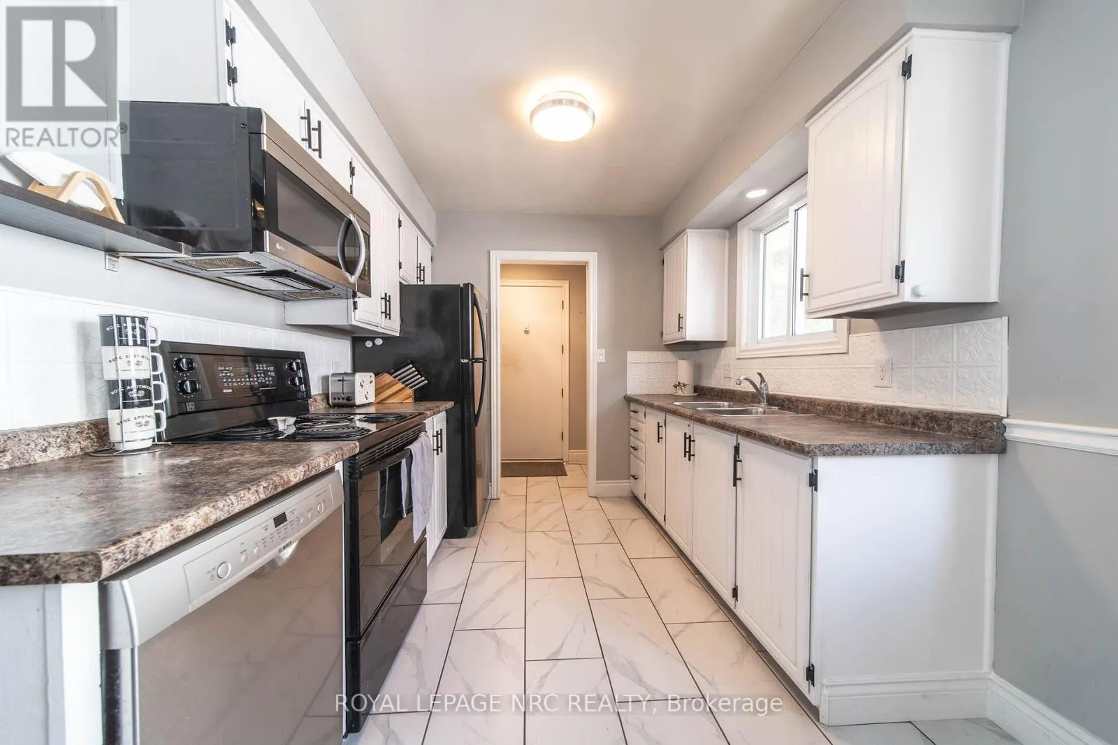 Cross Streets: Dolphin Street. ** Directions: Dorchester Road to Dolphin Street to York Drive. Beautifully maintained 4-Level backsplit semi that's move-In ready! This charming and well-kept home is ideal for first-time buyers or a young family. Thoughtfully designed, this home features 2 bedrooms (primary with walk in closet), plus a den on the lower level, providing flexible space for an office, playroom, or guest area. The main floor offers a welcoming layout with a spacious living and dining room, bright kitchen, and hardwood flooring throughout the principal rooms and bedrooms. A total of 1.5 baths add convenience for family living. The large recreation room is a standout feature, complete with a projector and screen that are included, making it perfect for movie nights or entertaining. it's tastefully decorated and very well maintained, offering comfort and style throughout. Enjoy a fully fenced yard, providing both privacy and space for children or pets. Prime Location: Close to public transportation, the QEW, schools, churches, and shopping for everything you need is within easy reach. Updates include: Roof and A/C 2004, kitchen, windows. (id:27476)