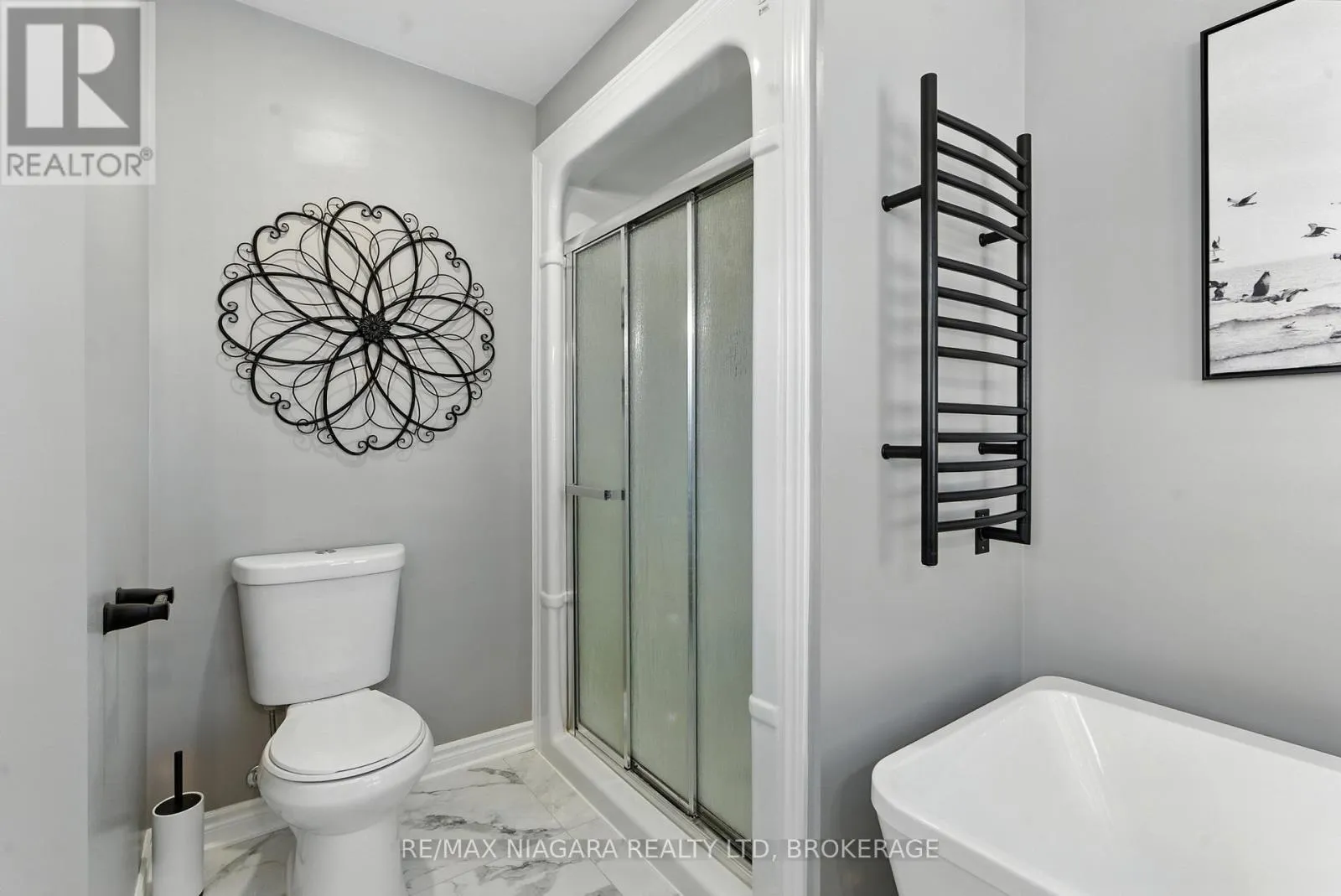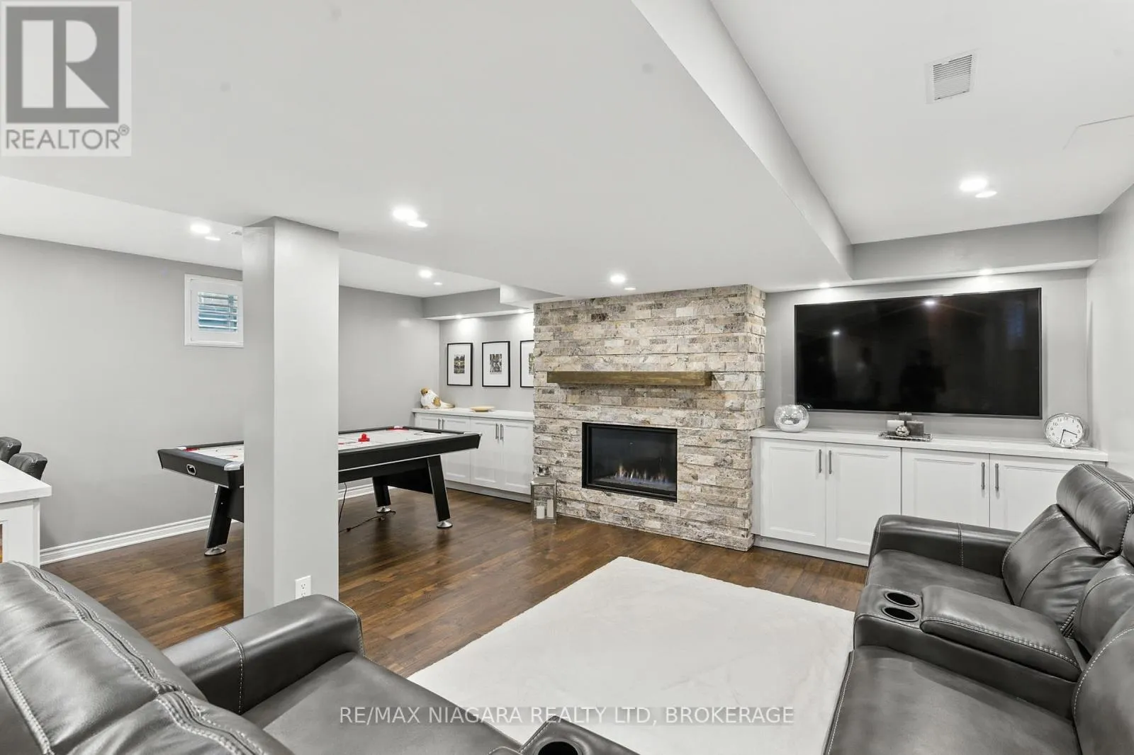 Cross Streets: Kalar And Lundy's Lane. ** Directions: South on Kalar from Lundy's Lane, west on Angie and north on Fausta. This stunning 4-bedroom, 4-bathroom family home is ideally located close to shopping, schools, parks, and quick access to the QEW, making it perfect for commuters and families alike. Step inside to discover an open-concept main living space designed for both everyday living and entertaining. New pot lights and flooring throughout. The kitchen area has ample counter and cabinet space, with stainless steel appliances and breakfast bar. The dining area features custom shelving and seamlessly flows into the living room, complete with cozy fireplace and walk out to the backyard. Upstairs, the lavish primary suite, abundant with natural light, offers a custom walk-in closet, opulent fireplace and spa-like 4-piece ensuite with with standalone tub, separate shower and towel warmer, a true retreat. 3 additional bedrooms and additional 4 piece main bath. The fully finished lower level is a showstopper, featuring a sophisticated wet bar with built in bar fridge with stone countertop, fireplace feature wall and games area providing the perfect space for gatherings or relaxing movie nights. Outside, enjoy a backyard oasis with covered deck, children's playground area, and covered BBQ area with a gas line ideal for year-round entertaining. The double car, extra-wide garage and expansive driveway provide plenty of parking for family and guests. So many features making this home, not only spacious in nature, but sleek and modern with an undertone of warmth! (id:27476)