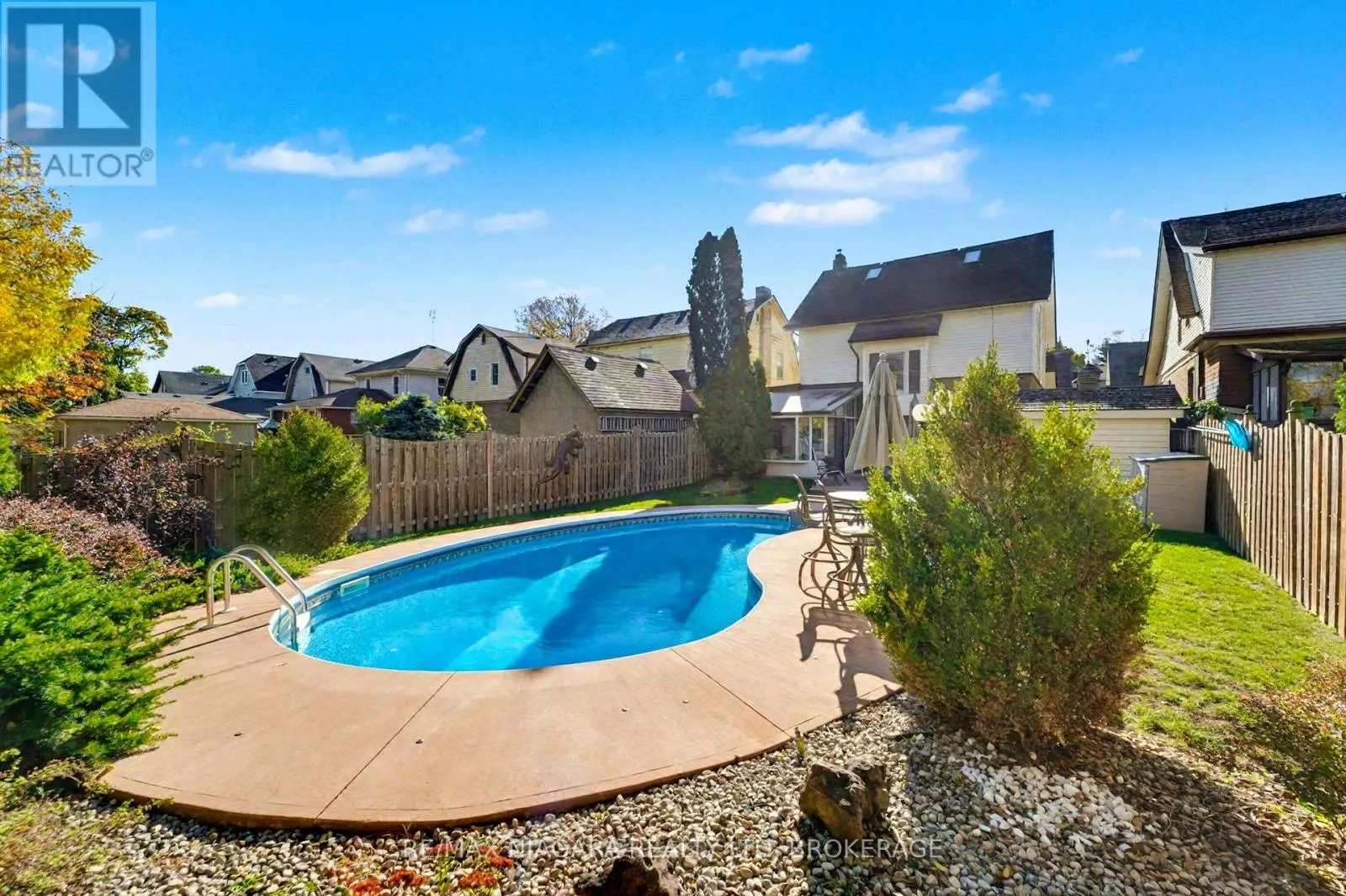 Cross Streets: FOURTH AVE. ** Directions: Valley Way - South on Fourth, Left on Armoury. This exceptionally maintained home blends timeless character with thoughtful, high-quality upgrades throughout. From the moment you arrive, the curb appeal stands out with Trillium Award-winning gardens and stunning landscaping that set the tone for all this property has to offer. The main floor offers a warm and inviting formal living room with hardwood floors, gas fireplace, and beautiful coffered ceilings. Patio doors lead to a charming front porch the perfect spot for your morning coffee or evening cocktail. The spacious eat-in kitchen features an abundance of quality cabinetry, built-in appliances, island, and is open to a cozy family room ideal for both everyday living and entertaining. Upstairs, the second floor features a massive primary bedroom with plenty of closet space, a 4-piece bath with jacuzzi tub and separate shower, and a versatile open den/office area (which could easily be converted back to a bedroom). Theres also an additional walk-in closet for extra storage. The finished third floor provides even more space great for a guest suite, kids playroom, gaming area, or an extra bedroom. The 3rd level also includes additional storage. The finished basement includes a games/rec room, 3-piece bathroom, laundry area, and a handy work room. The backyard is truly your own private oasis. The kidney-shaped inground pool, sunroom, beautiful concrete work, and meticulously maintained landscaping make this space truly perfect for relaxing or entertaining all summer long. Additional updates/features include furnace(2023), Central Air(2022) and concrete driveway. (id:27476)