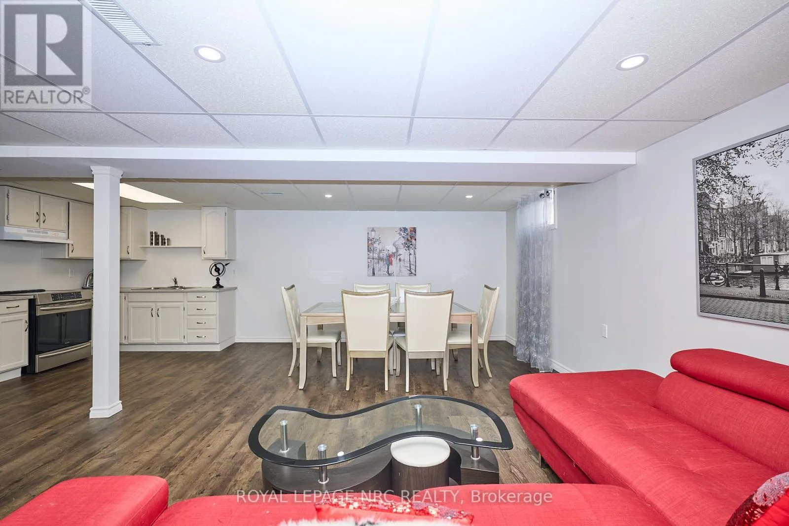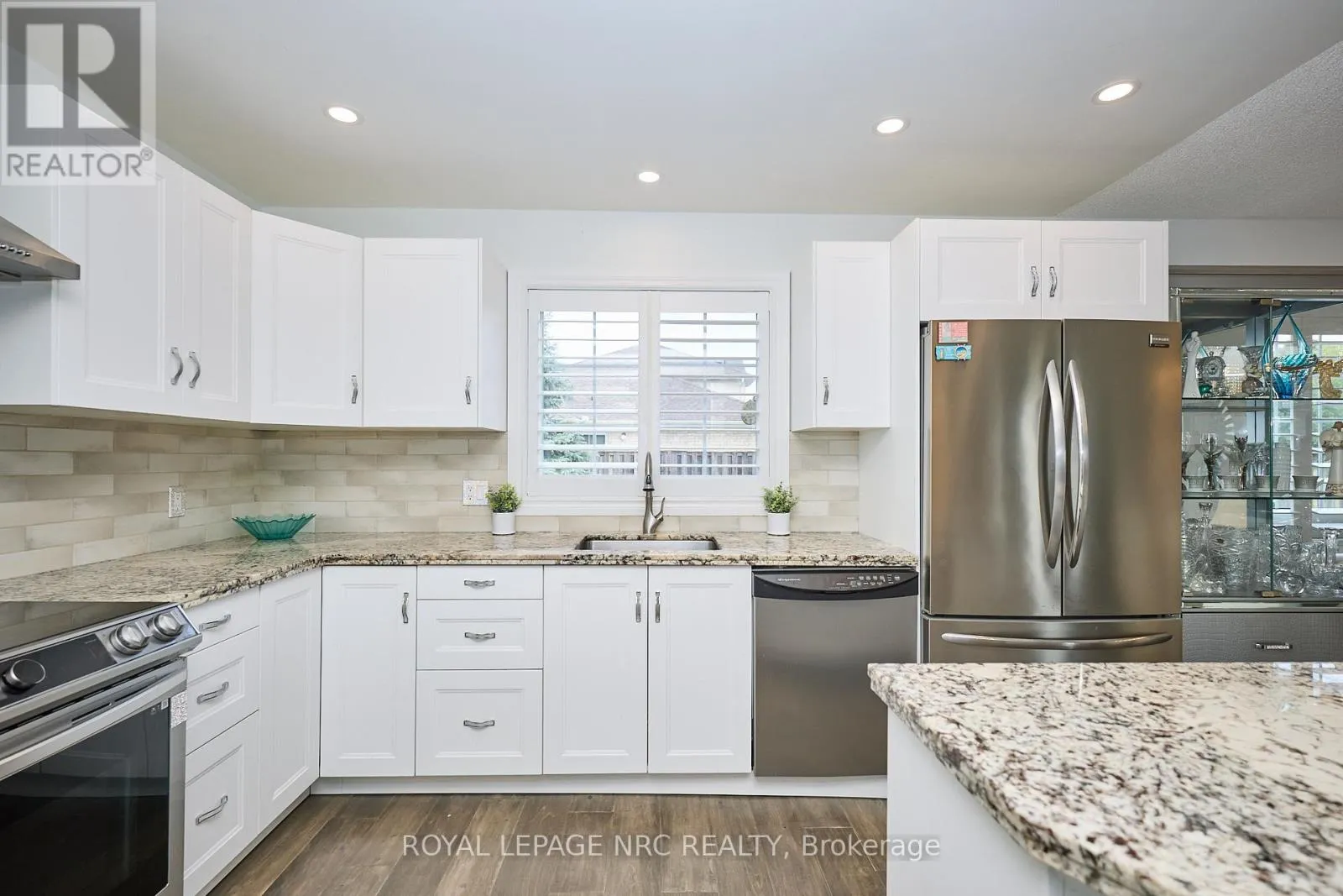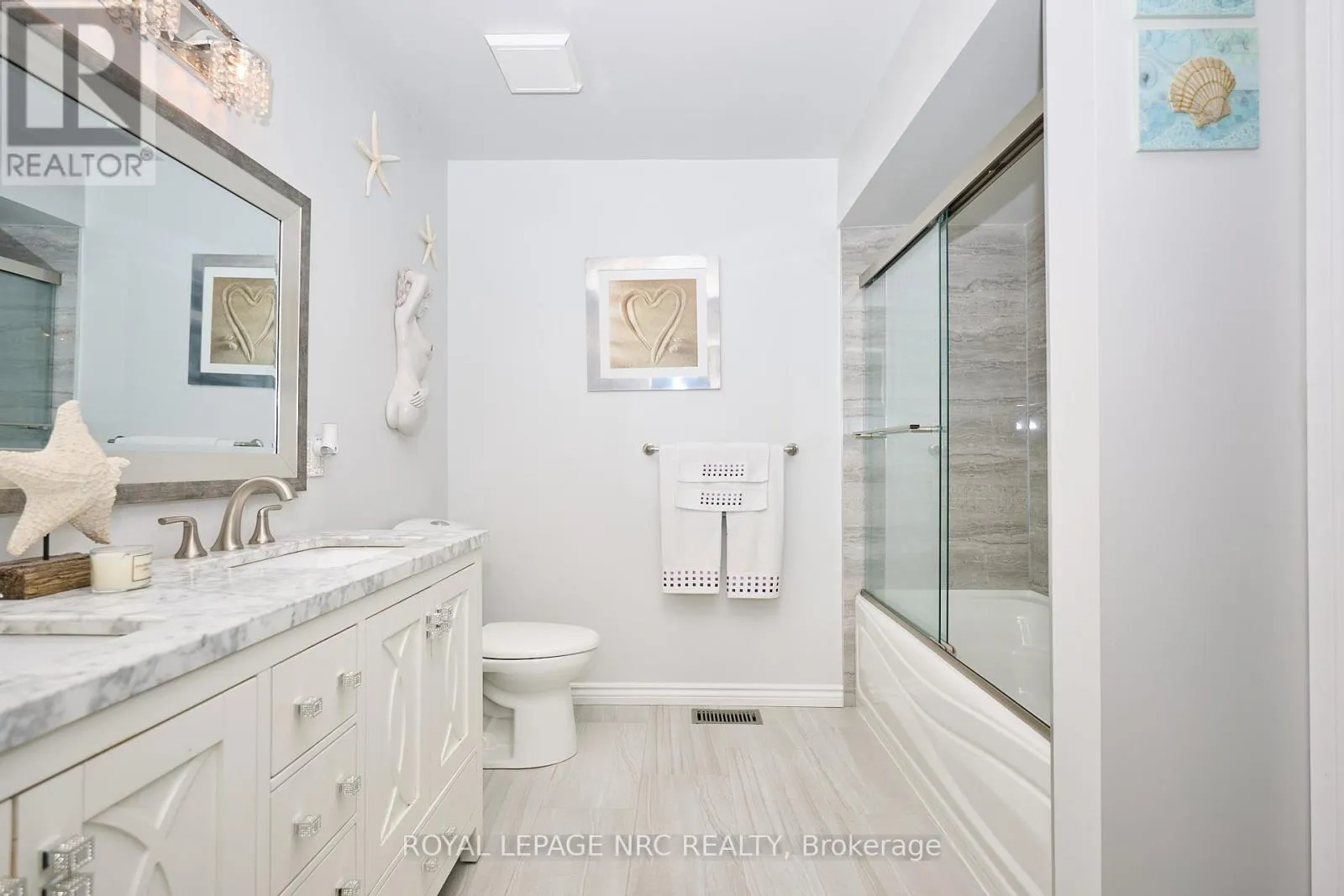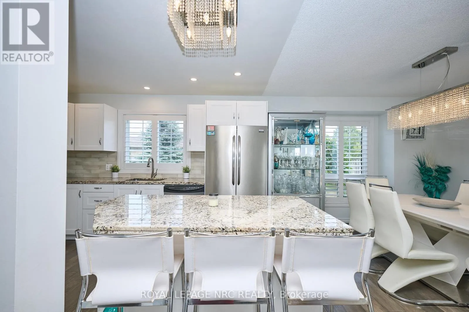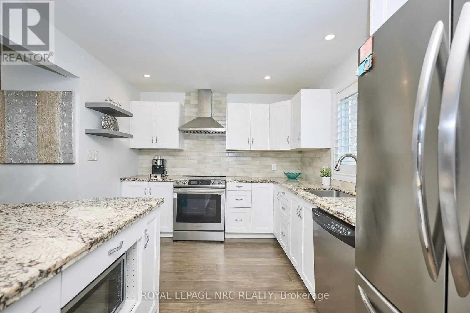 Cross Streets: MONTROSE AND MONASTERY. ** Directions: into complex at the rear. IN-LAW SUITE! Looking to rent out your lower level to help with expenses? Look no further! Beautifully Updated Bungalow End Unit Townhome in Prestigious Mount Carmel Estates! This fully renovated bungalow offers the easy of maintenance-free living complete with an attached garage and private parking for up to 4 vehicles. Located in the highly sought-after Mount Carmel neighborhood in Northend Niagara Falls, this home is move-in ready and ideal for families, downsizers, or those seeking multi-generational living. The main level boasts stunning quality laminate flooring throughout, California Shutters and a beautifully renovated kitchen with granite counters, island, upgraded cabinetry, and a stylish tiled backsplash that is open-concept to dining room and living room w/convenient walk-out to huge private backyard (w/no side neighbors) that is rare to find in townhome living. The spacious bathroom features double sinks with marble counters, a skylight, and ensuite privilege to the primary bedroom, which offers double closets. The second bedroom also boasts double closets. The fully finished basement presents excellent in-law potential with a second kitchen, large open-concept living/dining/kitchen area, a third bedroom, a three-piece bathroom, and a massive utility/laundry room. With its prime location, stunning upgrades, and useful living spaces, this home offers exceptional value in one of Niagara Falls most desirable communities. Check out attached video tour! (id:27476)