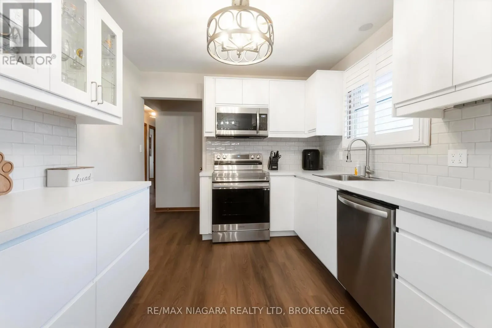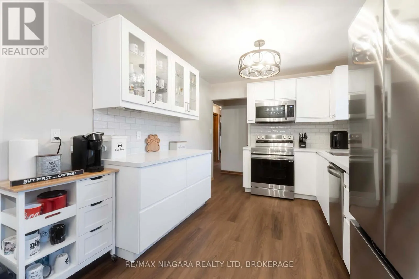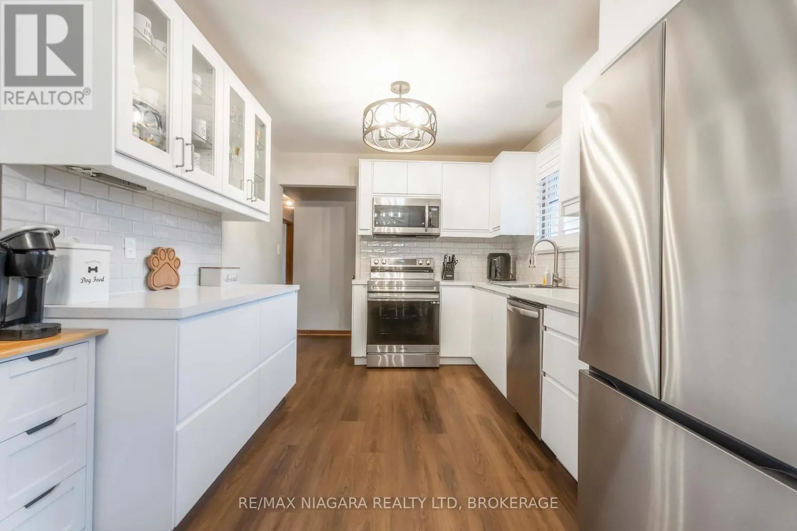 Cross Streets: DORCHESTER RD. ** Directions: THOROLD STONE RD - DORCHESTER RD - PETTIT AVE. Solid All-Brick Bungalow with In-Law Potential & Detached Garage. Welcome to this meticulously maintained all-brick bungalow, built in 1968 and thoughtfully updated while preserving its original charm. Tucked away on a quiet street, this home features a detached concrete block garage added in 1974 and offers ideal potential for an in-law suite, with a separate rear entrance providing easy access between the upper and lower levels. Inside, the layout is perfect for extended families or additional rental income, offering two kitchens, two living rooms, and two dining areas. A stunning stone and brick feature wall with a wood-burning fireplace adds warmth and character to the space. Recent updates completed in 2023 include a renovated kitchen and bathroom on the main floor, new flooring, a 100 amp breaker panel, fresh shutters, and a new garage roof bringing modern comfort and peace of mind to this solid, well-built home. With nothing left to do but move in and enjoy, this property is a perfect blend of functionality, flexibility, and timeless appeal. (id:27476)