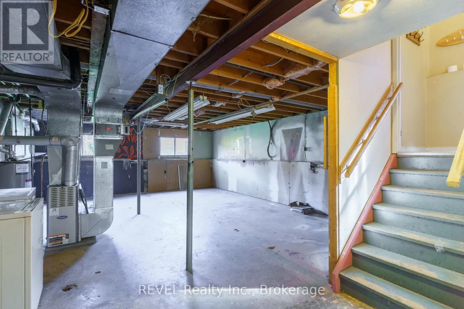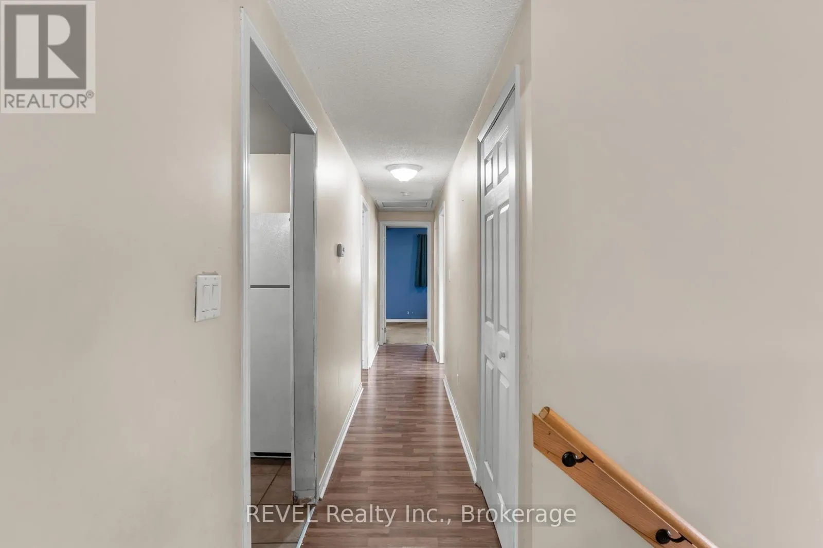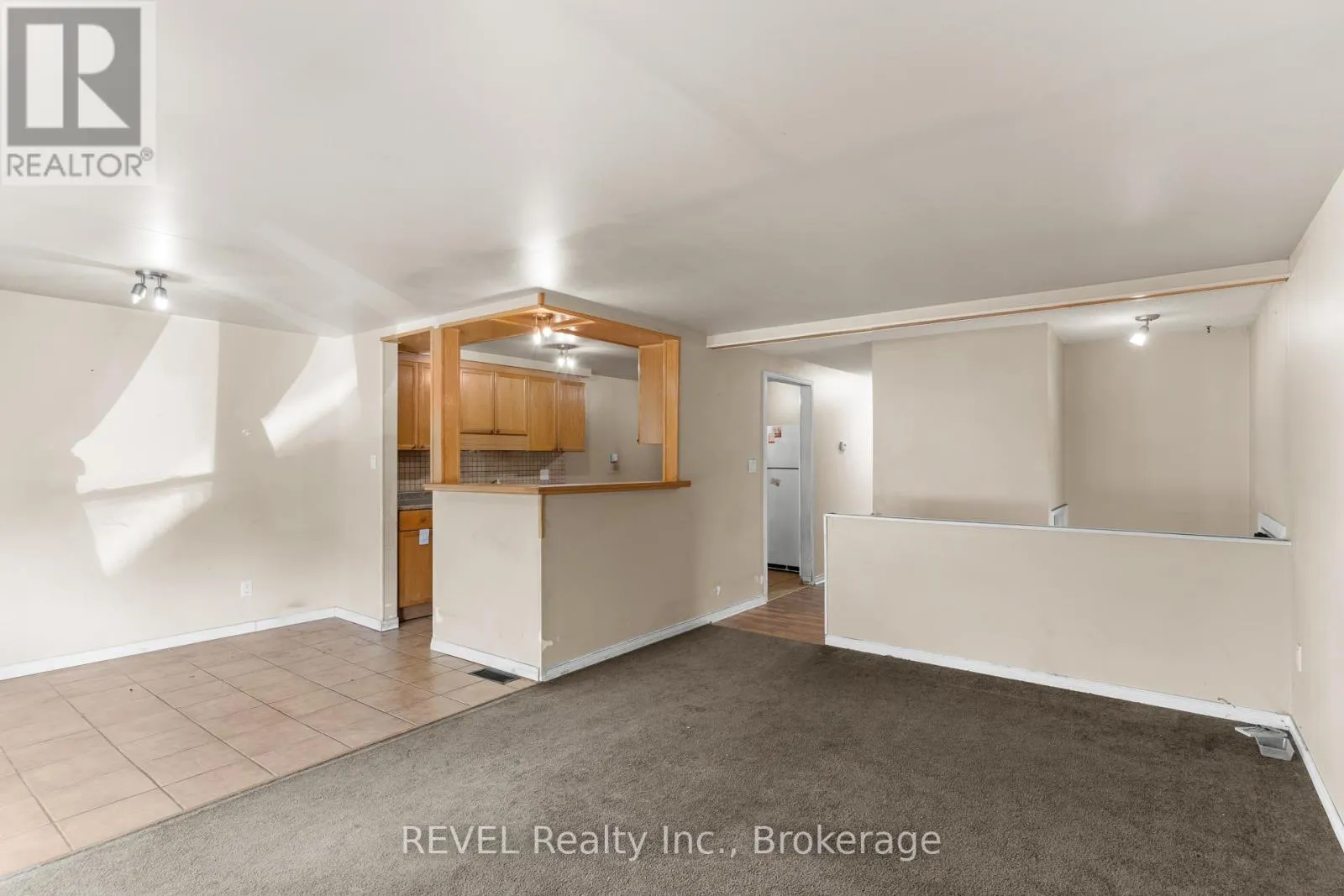 Cross Streets: dawson. ** Directions: dorchester to Dawson to gage ct. Welcome to 5016 Gage Court, a charming semi-detached raised bungalow perfectly positioned on a quiet cul-de-sac in one of Niagara Falls' most sought-after residential pockets. This home presents an exceptional opportunity for buyers who value both comfort and potential - a solid foundation with endless possibilities to personalize, modernize, or invest for future growth.Step inside and immediately feel the warmth of the open-concept main level, where natural light pours through large front windows, highlighting the generous living and dining areas. The kitchen offers ample cabinetry and counter space, seamlessly connecting to the heart of the home - ideal for family living or entertaining guests. Originally designed as three bedrooms, the home has been converted into a two-bedroom layout featuring a massive primary suite that spans the width of the home, creating a rare and inviting retreat.The lower level expands the living space with a large recreation room anchored by a classic brick fireplace - a perfect setting for cozy nights in or a future in-law suite for extended family. The unfinished portion of the basement offers excellent storage and workshop space, ready for your personal touch.Outside, enjoy a private fenced backyard surrounded by mature trees and a peaceful court setting. The location couldn't be better - close to schools, parks, shopping, and highway access, all while maintaining the serenity of a quiet family street.5016 Gage Court combines space, opportunity, and location - a home ready to evolve with you, whether you're settling in, investing, or envisioning your next renovation masterpiece. (id:27476)
