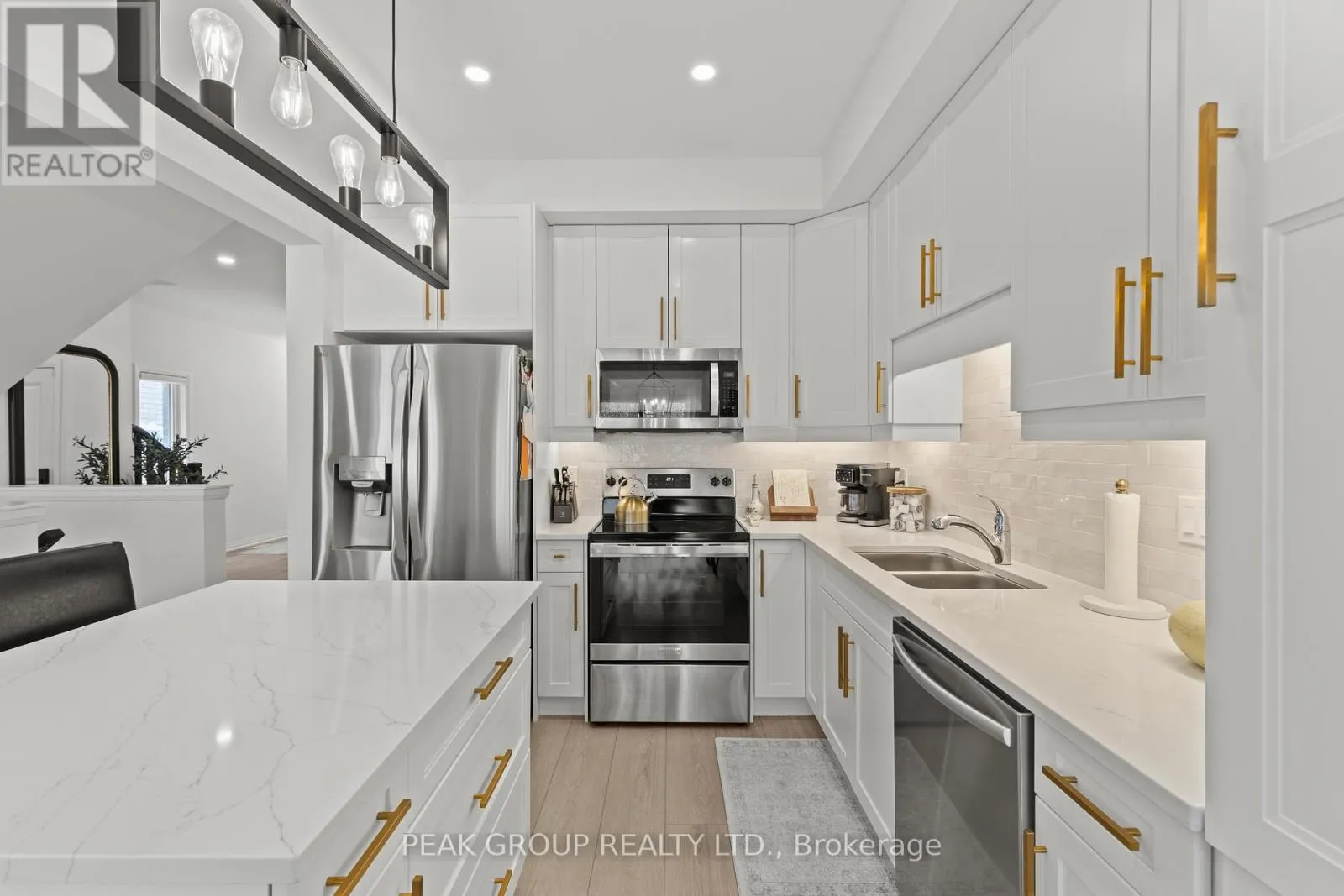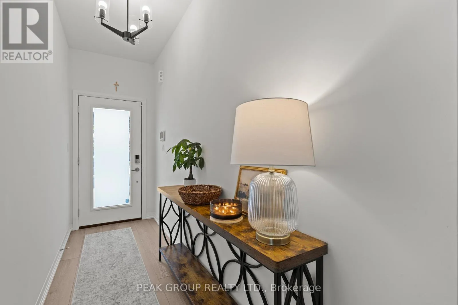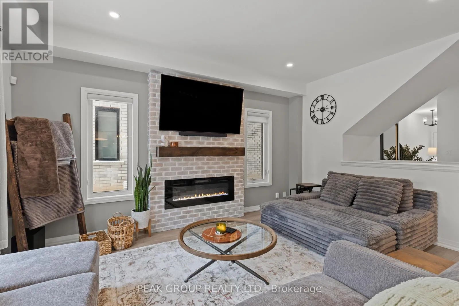 Cross Streets: Thorold Stone / Portage. ** Directions: Morrison Portage or Thorold Stone Portage. Modern Luxury Meets Everyday Comfort in this 2023-built end unit by Mountainview Homes. Thoughtfully designed with both style and function in mind, this modern two-storey residence is the perfect home for you!Step inside to an open-concept main floor featuring luxury vinyl flooring, a designer kitchen with chic gold hardware, quartz countertops, and a spacious island-ideal for entertaining family and friends. The dining area's double sliding doors open to a private backyard, with no rear neighbours, a serene forest view, and privacy fencing for peaceful outdoor enjoyment.The bright and inviting living room benefits from extra windows unique to this end unit, creating a space filled with natural light. A modern brick accent wall frames the built-in electric fireplace, offering the perfect spot for your TV and adding a stylish focal point to the home. A convenient 2-piece powder room completes the main floor.Upstairs, discover four spacious bedrooms, including a primary suite with a walk-in closet and a beautifully appointed 3-piece ensuite. The second floor also offers a full 4-piece main bathroom and a dedicated laundry area for ultimate convenience. The builders choice of large windows, really make the space feel, bright and spacious! The unfinished basement provides potential to complete additional living space. it's a blank canvas for your dream rec room, home gym, or guest suite.The basement includes a rough-in for a future bathroom.Enjoy the benefits of a double car garage, upscale finishes, and a quiet setting surrounded by nature-all within close proximity to Niagara's best schools, amenities, and trails.The community includes luxuries of grass and snow removal for a low monthly maintenance cost of $112. Book your showing today! (id:27476)