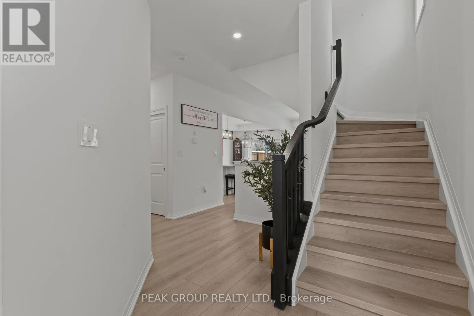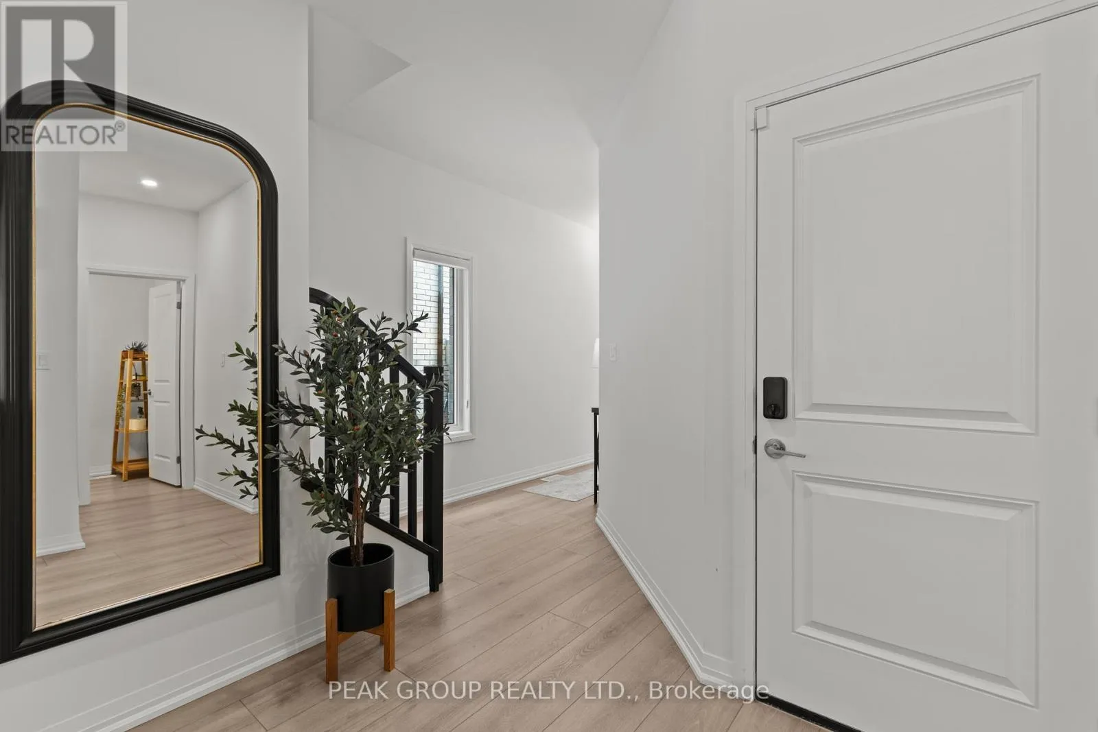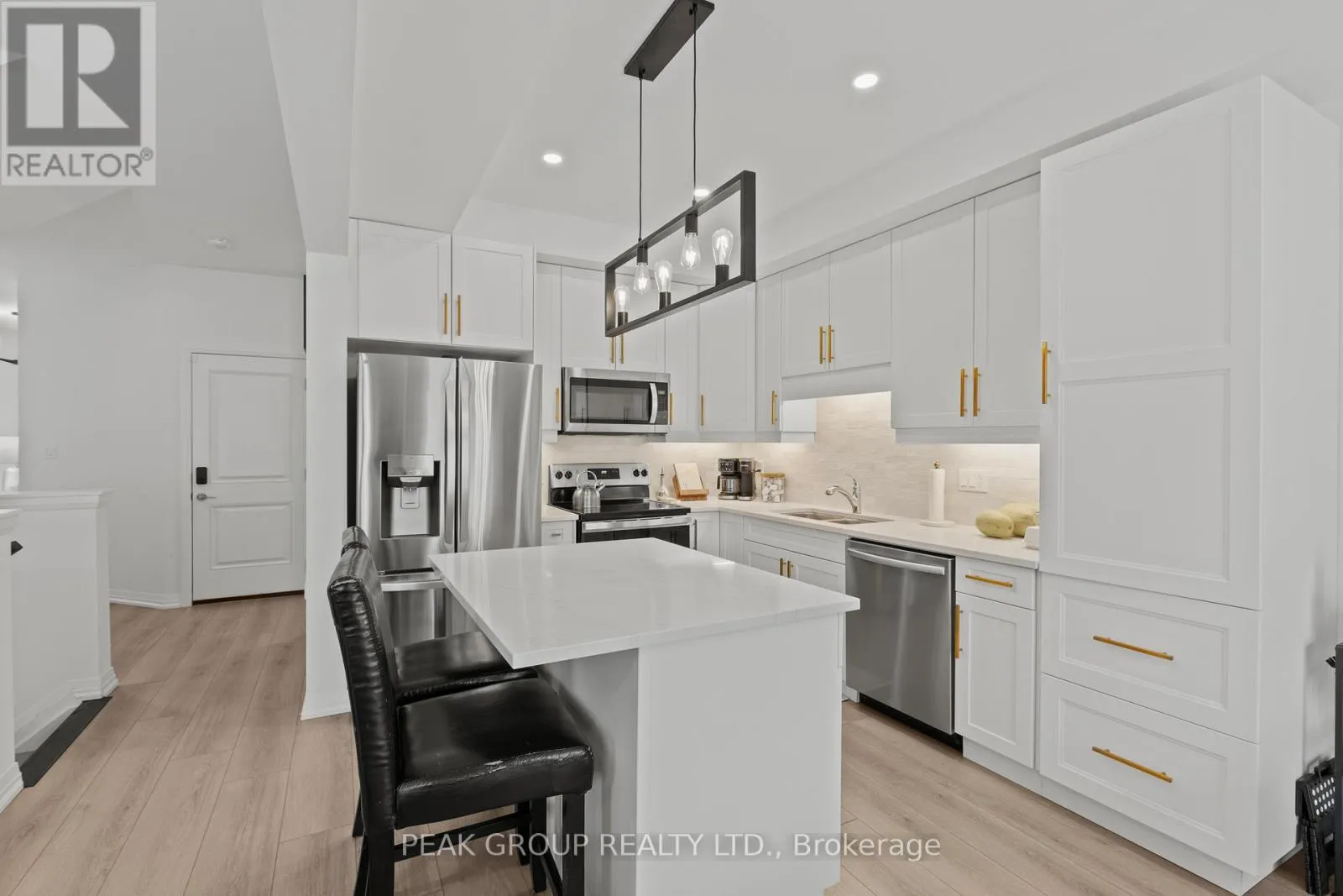Cross Streets: Thorold Stone / Portage. ** Directions: Morrison Portage or Thorold Stone Portage. Modern Luxury Meets Everyday Comfort in this 2023-built end unit by Mountainview Homes. Thoughtfully designed with both style and function in mind, this modern two-storey residence is the perfect home for you!Step inside to an open-concept main floor featuring luxury vinyl flooring, a designer kitchen with chic gold hardware, quartz countertops, and a spacious island-ideal for entertaining family and friends. The dining area's double sliding doors open to a private backyard, with no rear neighbours, a serene forest view, and privacy fencing for peaceful outdoor enjoyment.The bright and inviting living room benefits from extra windows unique to this end unit, creating a space filled with natural light. A modern brick accent wall frames the built-in electric fireplace, offering the perfect spot for your TV and adding a stylish focal point to the home. A convenient 2-piece powder room completes the main floor.Upstairs, discover four spacious bedrooms, including a primary suite with a walk-in closet and a beautifully appointed 3-piece ensuite. The second floor also offers a full 4-piece main bathroom and a dedicated laundry area for ultimate convenience. The builders choice of large windows, really make the space feel, bright and spacious! The unfinished basement provides potential to complete additional living space. it's a blank canvas for your dream rec room, home gym, or guest suite.The basement includes a rough-in for a future bathroom.Enjoy the benefits of a double car garage, upscale finishes, and a quiet setting surrounded by nature-all within close proximity to Niagara's best schools, amenities, and trails.The community includes luxuries of grass and snow removal for a low monthly maintenance cost of $112. Book your showing today! (id:27476)