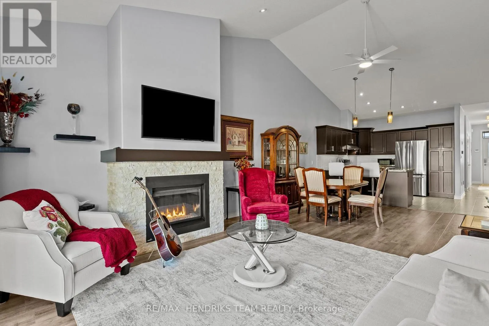 Cross Streets: Osprey Ave. ** Directions: Osprey Ave to Eagle Ridge Dr. Stunning semi-detached townhome with double car garage in Niagara Falls! As you enter, you'll be greeted by elegant tile flooring in the foyer while the first bedroom on the right features beautiful engineered hardwood flooring and double closets. The kitchen showcases warm cabinetry accented by white subway tile backsplash, stainless steel appliances, granite countertops, and centre island with breakfast bar. The open-concept living and dining area is highlighted by vaulted ceilings, a cozy gas fireplace, and durable luxury vinyl plank flooring, creating an inviting space to relax or entertain. Sliding patio doors lead to a private deck and small grass area - perfect for pets! Enjoy maintenance-free, low fee condo living as snow removal and lawn care are both taken care of for you! The convenience continues with a main level laundry room located near the double car garage that offers direct access into the home. Overlooking the backyard, the spacious primary bedroom offers a walk-in closet and a beautifully finished ensuite with a walk-in shower. The fully finished basement extends your living space. The vinyl flooring continues through the family room with second gas fireplace and the 3rd bedroom with walk-in closet. There's also a 4 piece bath with a tub/shower combined plus a dedicated workshop area-ideal for hobbies or extra storage. This home truly combines comfort, style, and easy living in one perfect package! (id:27476)