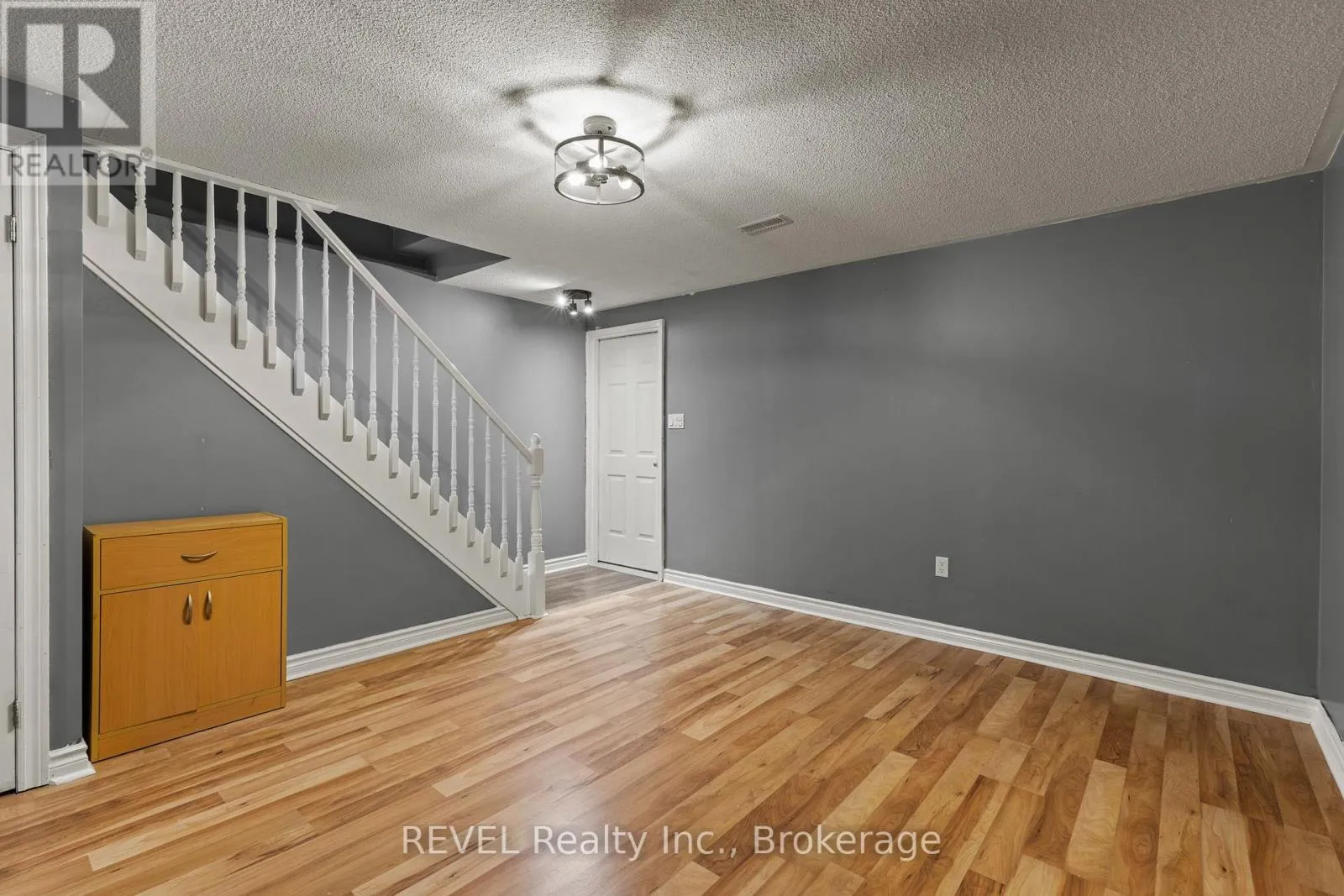 Cross Streets: Valley Way. ** Directions: From Drummond Road, Turn West onto Valley Way, then Right onto Harper Drive. Spacious 3+1 bedroom, 2.5 bathroom semi-detached home located in the heart of Niagara Falls. With over 1600 square feet of finished living space above grade, the main floor offers a bright and open living, dining and kitchen area, a convenient two-piece bathroom, inside access to the garage, and a refreshed kitchen featuring quartz countertops, a new tile backsplash, and plenty of natural light from the sliding glass doors that lead to a new back deck. The fully fenced backyard offers privacy with no rear neighbours and backs onto mature trees. Thanks to the slight slope of the yard, the lower-level bedroom enjoys large windows. Downstairs also includes a rec room thats perfect for a playroom, home gym, or office, along with a spa-like bathroom with a walk-in shower. Located in Balmoral Court, a quiet cul-de-sac on the west end of Valley Way, this home is close to highway access and just a short drive to restaurants, schools, grocery stores, and all the nightlife Niagara Falls has to offer. Recent updates include: both staircases refinished (November 2025), new laminate and vinyl plank flooring throughout the lower level (November 2025), quartz countertops (2024), tile backsplash (2025), back deck (2024), hot water tank (2023), air conditioning (2021), washer and dryer (2022), and the lower-level bathroom (2018). (id:27476)