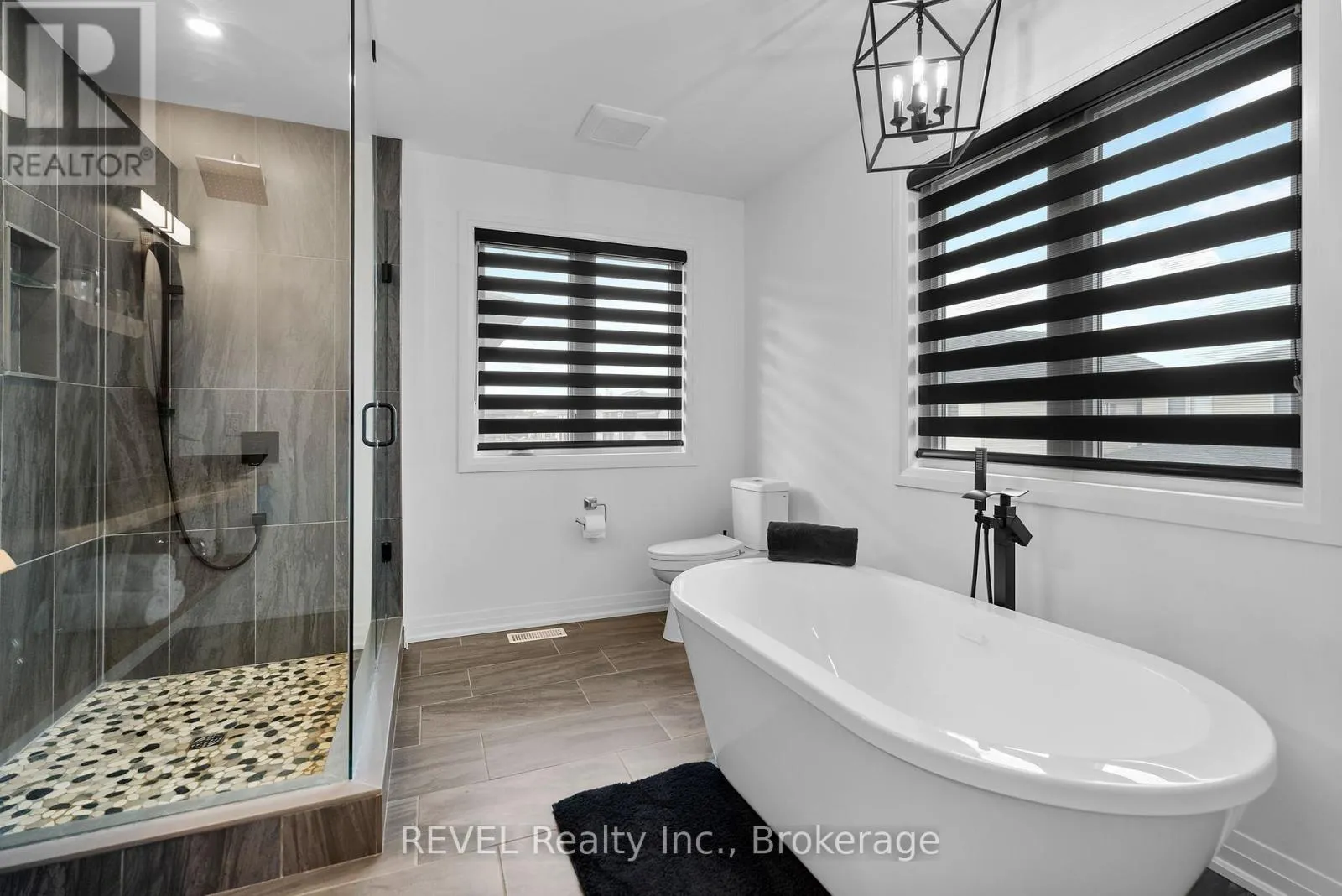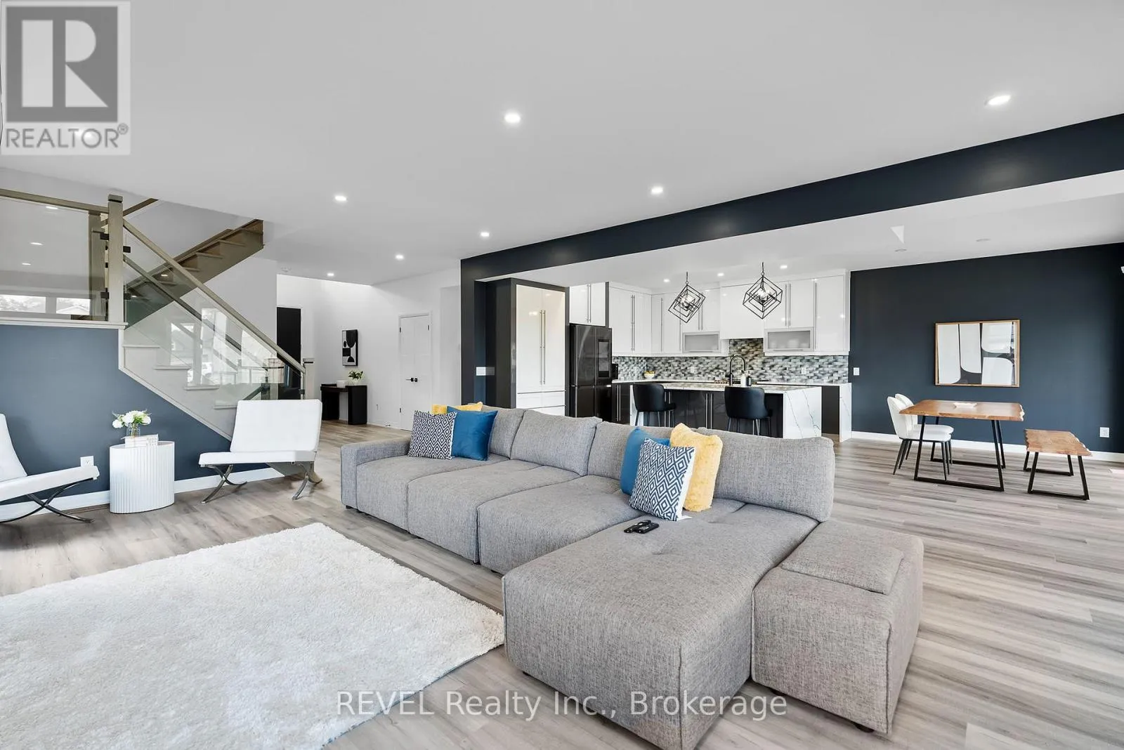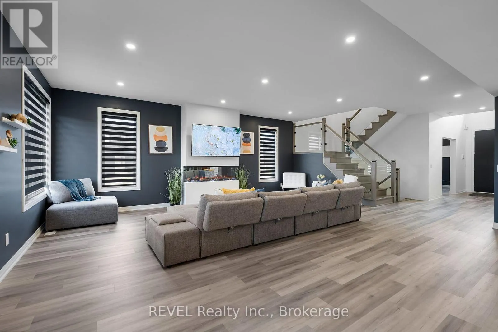 Cross Streets: McLeod Road and Kalar Road. ** Directions: McLeod Road to Matteo Drive to Jonathan Drive. Welcome to 7365 Jonathan Drive, a custom-built masterpiece that seamlessly blends modern design, luxury finishes, and family-friendly functionality. Offering over 3,000 sq ft of refined living space, this 4-bed, 4-bath residence showcases exceptional craftsmanship and thoughtful detail throughout. Step inside to discover soaring ceilings, an airy open-concept layout, and an abundance of natural light. The main floor features a private office that can easily be converted into an additional bedroom, complete with access to a full bathroom - ideal for guests or multigenerational living. The chef-inspired kitchen impresses with sleek quartz countertops and backsplash, a massive waterfall island, high-end stainless-steel appliances, soft-close cabinetry, and an oversized walk-in pantry. The adjoining dining and living areas flow seamlessly to the covered back porch, perfect for family barbecues and outdoor relaxation. Upstairs, a stunning oak staircase with glass railings leads to a beautifully designed second level. The primary suite serves as a true retreat, featuring two walk-in closets and a spa-inspired ensuite with a floating live-edge vanity, double sinks, a freestanding soaker tub, and a glass shower enhanced by custom river-rock and intricate tile work. The remaining washrooms continue the home's elevated design, showcasing elegant fixtures and detailed tile craftsmanship that add warmth and sophistication throughout. The second and third bedrooms share a stylish 4-piece bath, while the fourth enjoys its own private 3-piece ensuite. The unfinished lower level offers tall ceilings, oversized windows, and a bathroom rough-in - a blank canvas ready to become a gym, recreation room, or in-law suite. Located in a desirable Niagara Falls neighbourhood, this home offers the perfect balance of luxury and convenience. Enjoy proximity to top-rated schools, golf courses, wineries, parks, and scenic walking trails. (id:27476)