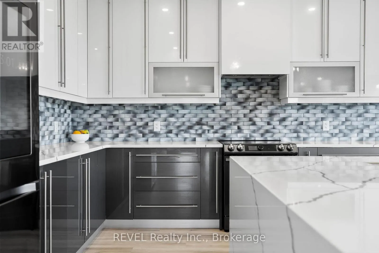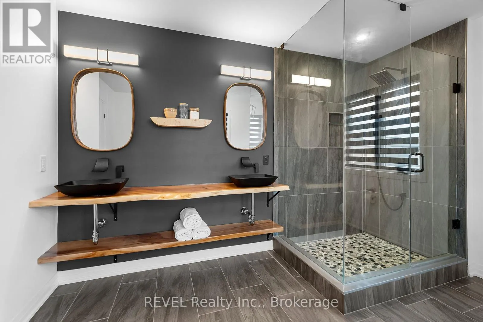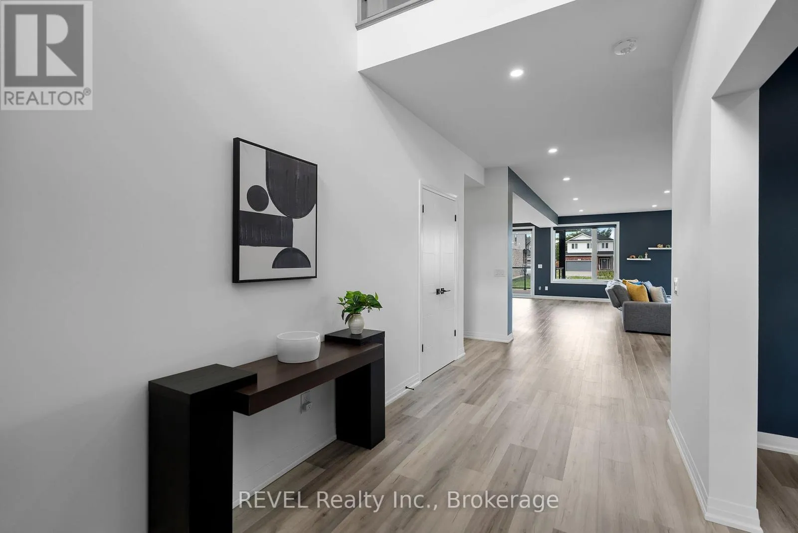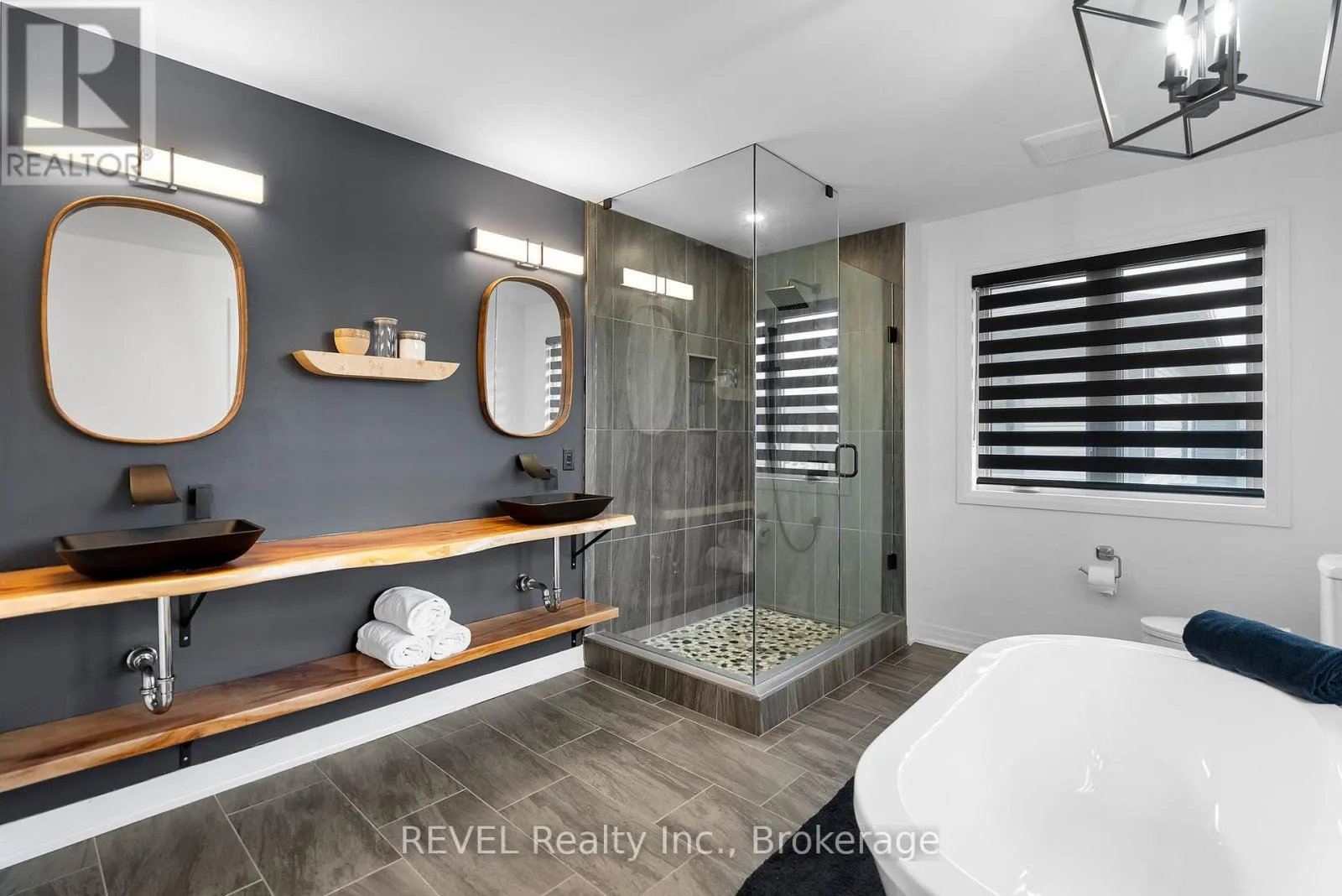 Cross Streets: McLeod Road and Kalar Road. ** Directions: McLeod Road to Matteo Drive to Jonathan Drive. Welcome to 7365 Jonathan Drive, a custom-built masterpiece that seamlessly blends modern design, luxury finishes, and family-friendly functionality. Offering over 3,000 sq ft of refined living space, this 4-bed, 4-bath residence showcases exceptional craftsmanship and thoughtful detail throughout. Step inside to discover soaring ceilings, an airy open-concept layout, and an abundance of natural light. The main floor features a private office that can easily be converted into an additional bedroom, complete with access to a full bathroom - ideal for guests or multigenerational living. The chef-inspired kitchen impresses with sleek quartz countertops and backsplash, a massive waterfall island, high-end stainless-steel appliances, soft-close cabinetry, and an oversized walk-in pantry. The adjoining dining and living areas flow seamlessly to the covered back porch, perfect for family barbecues and outdoor relaxation. Upstairs, a stunning oak staircase with glass railings leads to a beautifully designed second level. The primary suite serves as a true retreat, featuring two walk-in closets and a spa-inspired ensuite with a floating live-edge vanity, double sinks, a freestanding soaker tub, and a glass shower enhanced by custom river-rock and intricate tile work. The remaining washrooms continue the home's elevated design, showcasing elegant fixtures and detailed tile craftsmanship that add warmth and sophistication throughout. The second and third bedrooms share a stylish 4-piece bath, while the fourth enjoys its own private 3-piece ensuite. The unfinished lower level offers tall ceilings, oversized windows, and a bathroom rough-in - a blank canvas ready to become a gym, recreation room, or in-law suite. Located in a desirable Niagara Falls neighbourhood, this home offers the perfect balance of luxury and convenience. Enjoy proximity to top-rated schools, golf courses, wineries, parks, and scenic walking trails. (id:27476)