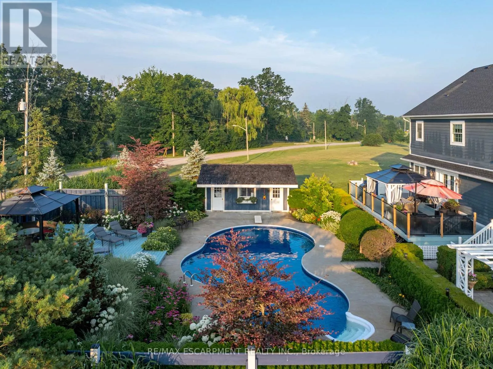 Cross Streets: Montrose Rd/Lyons Creek Rd. ** Directions: From QEW Niagara, follow signs for Ft Erie/Buffalo, take exit 21 for RR47/Lyons Creek Rd toward Chippawa, Merge onto Lyons Creek, Left toward Montrose Rd, Left onto Montrose Rd, Right onto Schisler Rd. PRIVATE ENTERTAINERS PARADISE...Stunning, CUSTOM-BUILT estate nestled on a uniquely configured property at 7804 Schisler Road, offering OVER 2.5 acres of gorgeous, landscaped grounds. Sitting at the border of Niagara Falls & Welland, there is added convenience of access to amenities in both cities, plus easy access to HWY 406/QEW & new hospital! This impressive 3+2 bedRm, 3 bath family retreat offers more than 3,600 sq ft of beautifully curated living space & is truly an entertainer's paradise. From the moment you step into the GRAND FOYER w/porcelain-tiled flooring, vaulted ceilings & statement chandelier, you'll feel the quality & care that went into every detail. Glass FRENCH DOORS lead into formal dinRm, while the main floor office w/dual closets adds flexibility of use. Hand scraped hickory hdwd flooring flows throughout, leading to an OPEN CONCEPT kitchen featuring QUARTZ counters, under-cabinet lighting, S/S appliances, gas stove & B/I micro, while a bright livRm w/gas fireplace anchors the room. WALK OUT to OASIS backyard boasting an oversized deck w/BUILT-IN HOT TUB, luxury INGROUND POOL (liner 2024), 2 gazebos & multiple sitting areas, POOL HOUSE w/changeroom & manicured, picture-perfect gardens. SUNKEN FAMILY ROOM w/vaulted ceilings & French patio doors to an arboured patio, 3-pc bath & laundry complete main living area. Upper level features a BONUS LOFT area - perfect for gaming or play. SPACIOUS PRIMARY SUITE offers a custom WALK-IN closet & LUXURIOUS, SPA-LIKE 5-pc ensuite framed by vaulted ceilings. 2 additional bedRms & 4-pc bath. Lower level includes 2 more bedRms, ideal for extended family. With a TRIPLE car garage (separate heat + inside entry), DUAL driveways w/parking for 20+, multiple septic tanks, drilled well for irrigation & 2000-gallon cistern, this property is as practical as it is beautiful. Don't miss this opportunity to own a multi-functional estate in one of Niagara's most desirable locations. CLICK ON MULTIMEDIA for video tour & more. (id:27476)