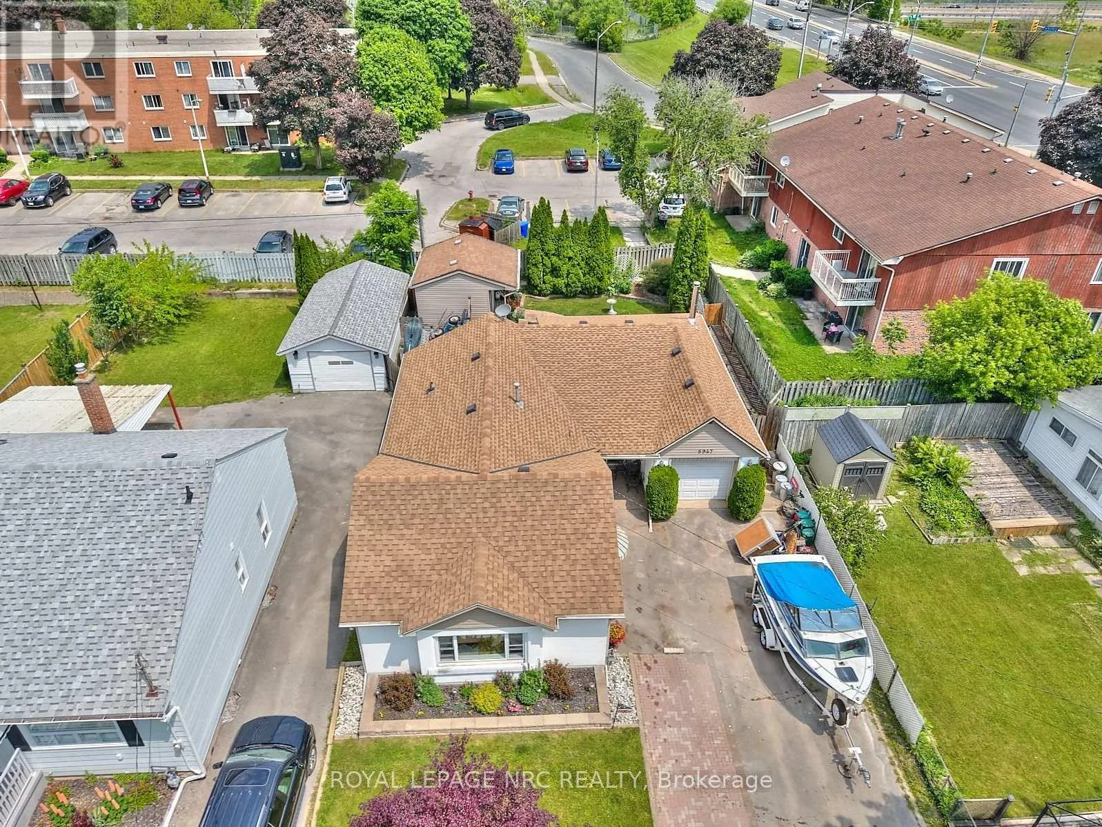 Cross Streets: DORCHESTER AND GARDEN. ** Directions: NEAR CORNER OF DORCHESTER. Welcome to this extremely solid and well built bungalow constructed in 1954 that is situated on a large lot on a quiet, desirable street in Niagara Falls a short distance to shopping, amenities, schools, parks and a major highway. This custom built home offers 1092 sqft which includes a spacious living room plus separate dining room (living and dining room just painted Sept 2025) and large updated kitchen w/maple cabinetry. The 3 pc bath has been recently updated w/a beautiful tiled shower and newer fixtures. There are two bedrooms, one offering garden doors to the fully fenced backyard. The layout continues with a generous family room with vaulted ceilings and wood burning stove (also perfect as a majestic Primary bedroom) with sliding doors that lead out to the rear yard. Enjoy the extra space of the breezeway which offers sliding doors that walk-out to the front of the property to a built-in covered patio. The attached single garage has inside access. The backyard is a private, sweet retreat w/interlock brick patio, and huge 12X16 shed/workshop w/hydro. The expansive driveway holds 6 cars and is perfect for parking your toys, trailers, or weekend wheels. Check out video tour! (id:27476)