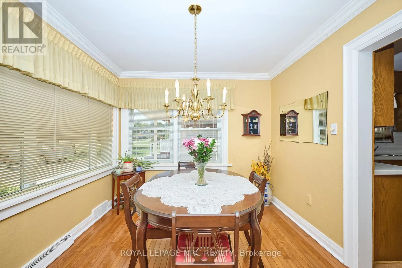 Cross Streets: Sodom Rd. ** Directions: Lyons Creek to Sodom Rd to Welland St. Well maintained 2+1 bedroom, 2 bathroom home on a large 60' x 185' lot situated across the street from Chippawa Lions Park in the quiet community of Chippawa. This spacious home features a large mud room, an eat-in kitchen with updated quartz counter tops, separate dining room, living room, gleaming hardwood flooring, primary bedroom w/wall to wall closet and a beautiful 3 season sun room. The lower level boasts a rec room, a bedroom, 3 pc bathroom, & a laundry room with tons of storage space. You'll love the outdoors with the beautifully landscaped, pool sized back yard with a patio and a storage shed. Other notable features include central vac, natural gas BBQ hook-up, lawn sprinkler system and updated roof, windows, furnace & a/c in recent years. Awnings on the home are removable. Whether you are a first-time buyer or looking for a home to enjoy retirement in, this home is one you won't want to miss. (id:27476)