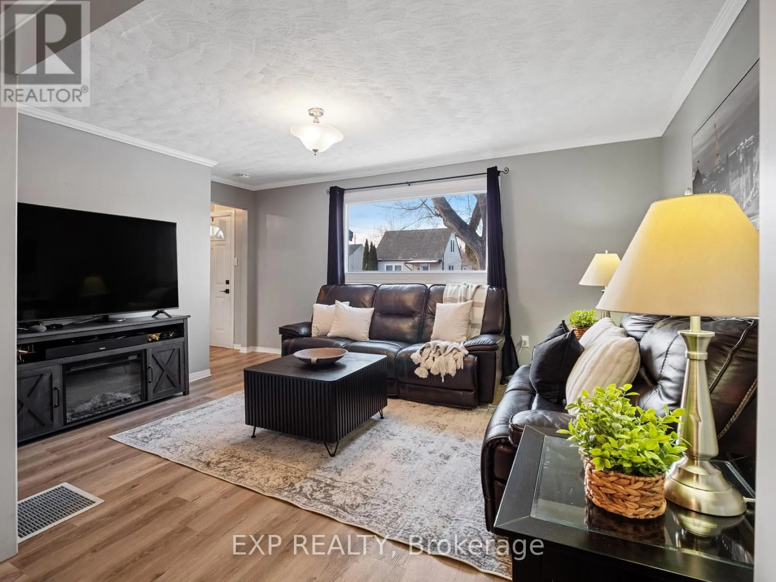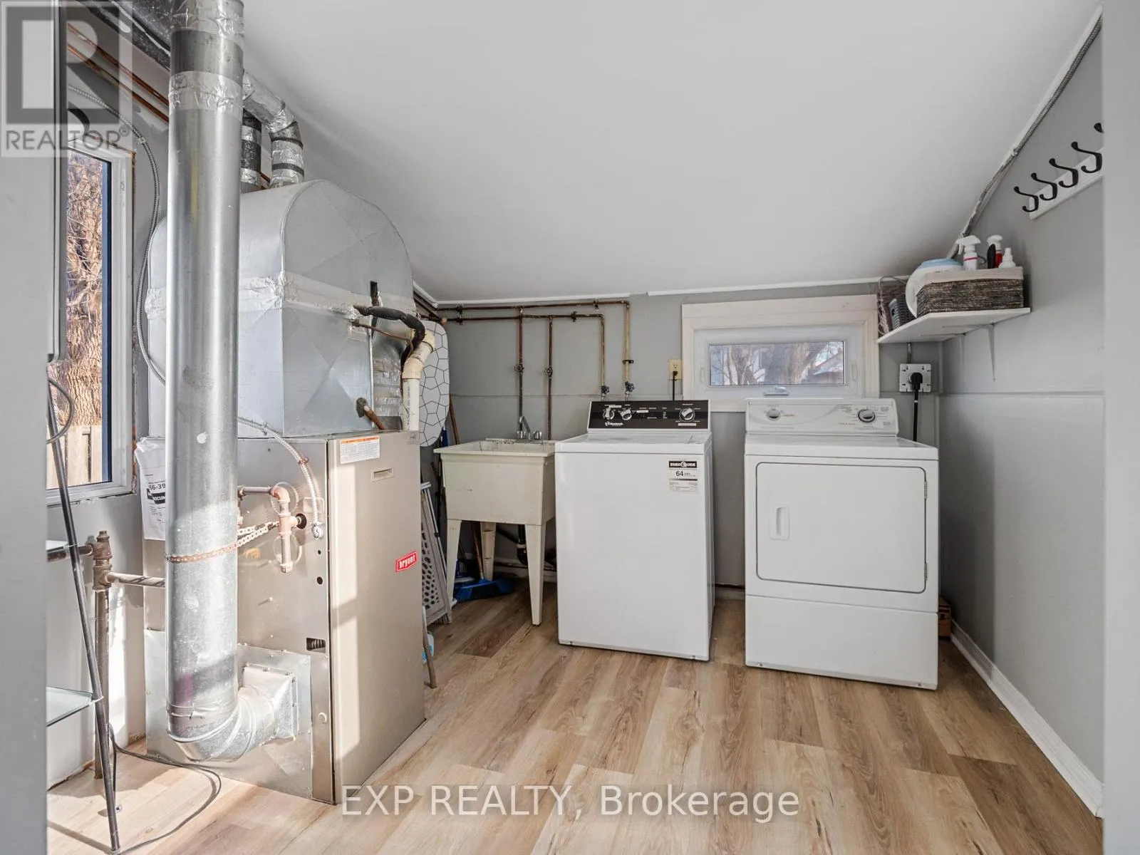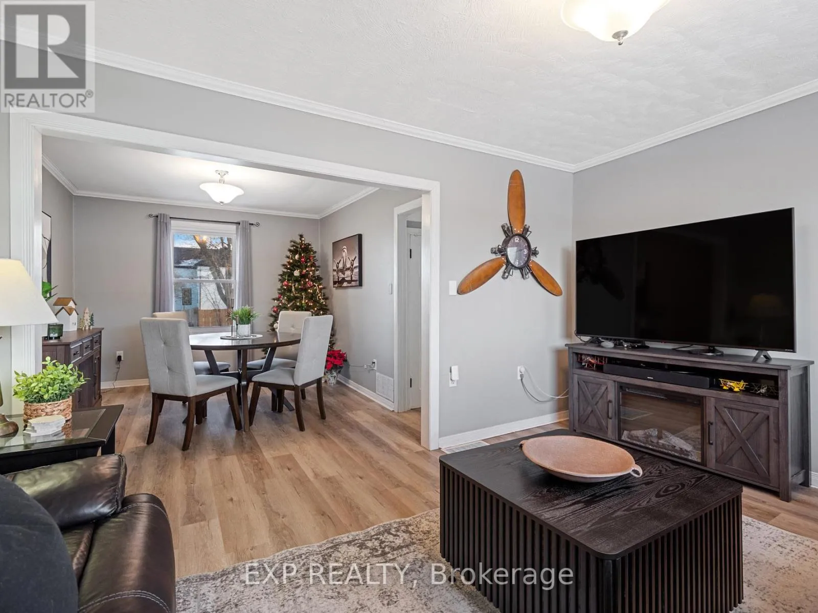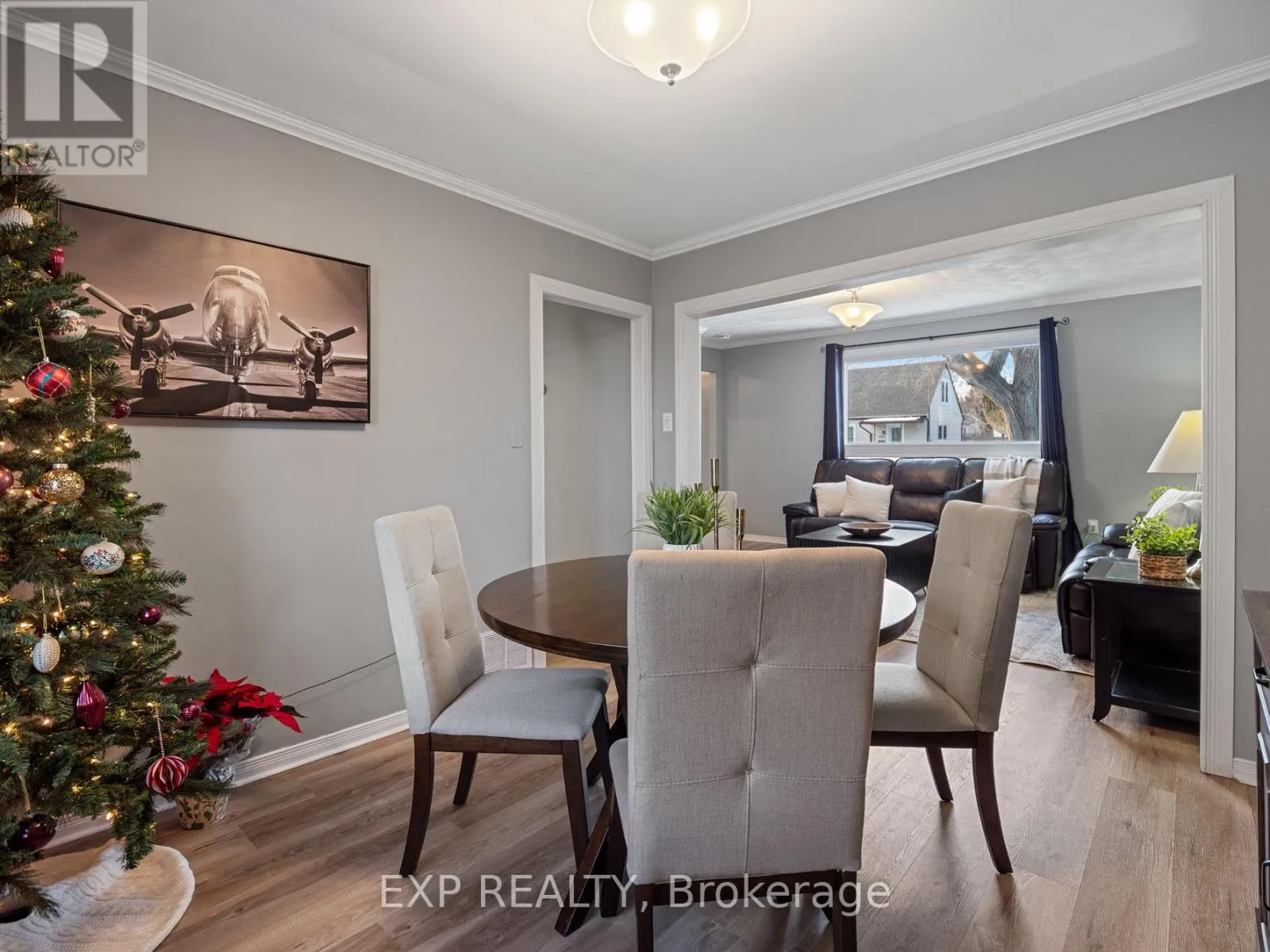 Cross Streets: NORTH OF BRIDGE ST. ** Directions: From Bridge - North on Fifth. A WONDERFUL OPPORTUNITY FOR FIRST TIME HOME BUYERS IN NIAGARA FALLS. This welcoming one and a half storey home sits on a mature tree lined lot and offers an inviting blend of comfort and updates, beginning with a bright kitchen featuring stylish white cabinetry (Updated 2021), stainless steel appliances and generous counter space along with a convenient coat closet at the main entry. Sun filled dining and living areas highlight the updated vinyl flooring and large windows that create an open and airy feel throughout the main floor. The four-piece bathroom offers a tiled tub and extra storage, and the main floor laundry adds everyday ease. Upstairs you will find two spacious bedrooms each large windows (2021). The backyard is a true extension of the living space with a private outdoor setting that includes a relaxed fire pit seating area, a gazebo, a powered shed plus room to enjoy the mature trees that surround the space. Located close to schools, parks, library and community center, this home is move in ready and offers incredible value for first time buyers looking for comfort, convenience and a place to make their own. (id:27476)