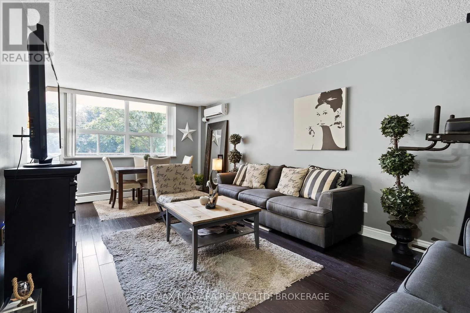 Cross Streets: THOROLD STONE & DORCHESTER. ** Directions: PORTAGE TO HUGGINS. Welcome to one of the most desirable units at the highly sought-after Stamford Place condos in the heart of Stamford Centre, Niagara Falls. This updated second-floor unit offers 2 bedrooms, in-unit laundry, modern flooring throughout, and an eat-in kitchen with a convenient breakfast bar and space for bar stools. The layout is bright and comfortable, featuring a recently resurfaced balcony with peaceful views of mature trees and the A.N. Myer Secondary School field, along with ductless A/C for year-round comfort. A rare bonus, this unit includes two owned side-by-side parking spots. Located in one of Niagara Falls most vibrant and established neighbourhoods, Stamford Centre offers the perfect blend of convenience, community, and culture. Just steps from your door, you'll find grocery stores, banks, cafes, and essential services, as well as Stamford Lions Park, Firemen's Park, and the beautifully renovated Stamford Centre Library. Families will love the proximity to top-rated schools including A.N. Myer, Stamford Collegiate, and Saint Michael Catholic High School. You're also just minutes from wine country, with world-renowned wineries, vineyards, and scenic drives a short trip away. The area boasts easy access to public transit, the QEW, and some of Niagara's best shopping, dining, and cultural destinations including the Niagara Falls Art Gallery, the Convention Centre, and the Clifton Hill tourist district. Whether you're looking to downsize or invest, this is more than just a condo, its a lifestyle in one of Niagara's most connected and community-focused locations. (id:27476)