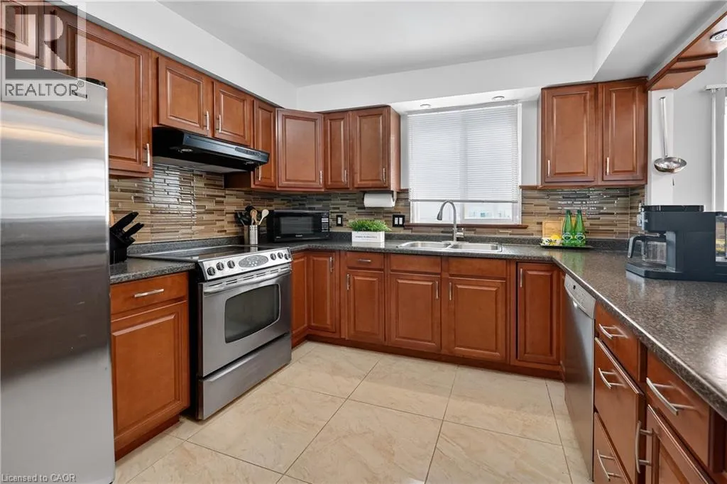 From QEW Niagara, Follow signs for Ft Erie/Buffalo,Take exit 30B toward 30B/Hwy20/Lundy'sLn/DorchesterRd,Use right lane to ramp to RR20/Lundy's Lane,Merge on ON-420,Left on Montrose Rd,Right on Charnwood Ave,Right on Westwood St,Left on Lynhurst Dr. VERSATILE FAMILY LIVING ⦠Pride of ownership is evident throughout this LARGE SIDESPLIT w/FULL IN-LAW SUITE at 8162 Lynhurst Dr in Niagara Falls, offering exceptional space, flexibility, and thoughtful functionality for multi-generational living. A fully enclosed front porch provides a practical and welcoming entry, opening into a foyer w/coat closet. From here, the home flows into the living room highlighted by hand-scraped hardwood flooring, then through to the kitchen where rich cabinetry tones, S/S appliances, and glass backsplash are complemented by a service window overlooking the dining room. Patio doors extend living space to a covered porch w/access to both the backyard and a SEPARATE enclosed entrance. The bedroom level continues w/hardwood flooring throughout. The bright primary bedroom features a front bay window and large closet, while the second bedroom - currently used as an office - also benefits from abundant natural light. A third bedroom overlooks the backyard, creating a peaceful retreat. The tastefully refinished 4-pc bathroom includes a deep soaker tub, beautiful tile surround, and stone-topped vanity. Down from the kitchen, the third level offers an EXTRA-LARGE recreation room w/laminate flooring, oversized windows, and an ornamental fireplace. The living space is so bright it doesnât feel like a lower level at all. Currently arranged as the living and dining area for an IN-LAW SUITE, this level also includes a 3-pc bath w/fully tiled shower, laundry closet, additional storage, and interior access to a separate WALK-UP entrance. A few steps down find a bright, EAT-IN KITCHEN w/ceramic tile and spacious bedroom finished w/LUXURY VINYL flooring, plus boasting ample closets and storage. With close highway access, private DOUBLE-WIDE driveway, and backyard complete w/two storage sheds, this home delivers comfort, versatility, and room to grow - MOVE-IN-READY! CLICK ON MULTIMEDIA for virtual tour, drone photos, floor plans & more. (id:27476)