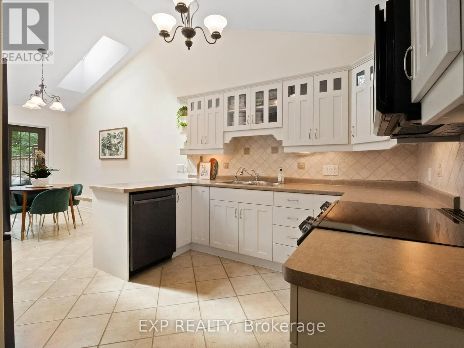 Cross Streets: Matthews Dr. ** Directions: Between Thorold Stone Rd. and Mountain Rd. Enjoy spacious open-concept living and dining in this beautifully maintained bungalow townhome on Burnfield Lane, a mature setting within Niagara Falls sought-after Mount Carmel neighbourhood. Backing onto a serene ravine with no rear neighbours, this 2-bedroom, 2-bath condo features vaulted ceilings, a bright kitchen with new skylights, new matching Samsung black stainless-steel appliances, and new Hunter Douglas window coverings throughout. Step from the kitchen to a large private terrace new deck. The inviting primary suite boasts an updated ensuite, main-floor laundry adds everyday ease, and a partially finished basement offers versatile bonus living space with a rough-in for an additional bathroom. Ideally located with easy access to highways, restaurants, and grocery stores. (id:27476)