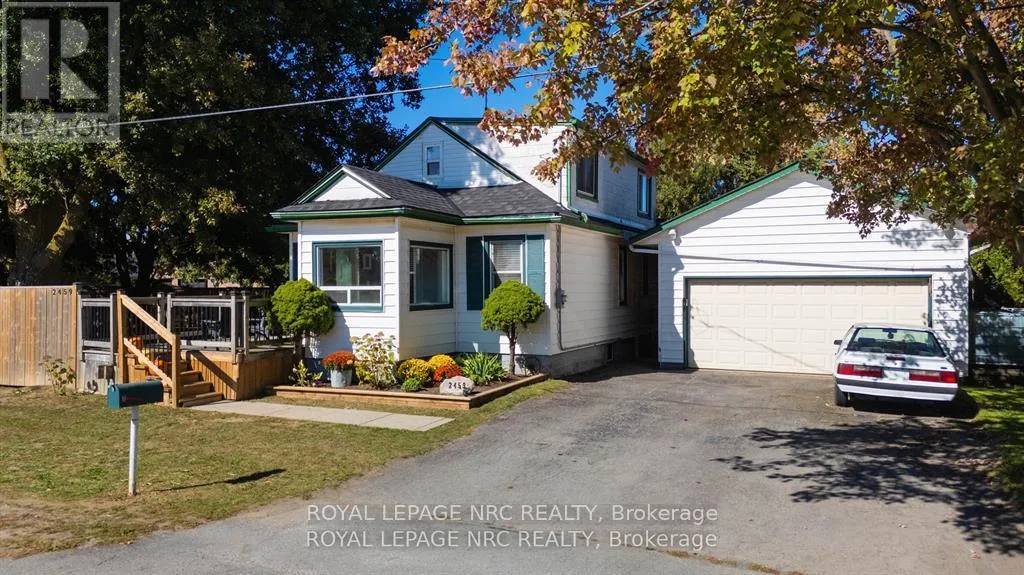 Cross Streets: portage/stanley. ** Directions: Portage to thompson. Welcome home to 2459 Thompson rd in Northend Niagara Falls! This property is truly unique and turnkey! You will arrive at the home and immediately see that you have no neighbours on the west side and no rear neighbours either! With 174 feet of frontage on Thompson road, and 184 feet of frontage on Portage rd, youll find the privacy youre looking for! You will arrive and park in the double wide driveway, and find yourself looking at the 613 sqft garage, that has ten foot ceilings, and Hydro! Entering the home you will see the home is ready to go and turnkey! The home features new roof with warranty in 2023, new flooring throughout, new electrical panel in 2025, bathroom in 2022, as well as all new lighting! The main floor consists of a bedroom, 4pc bathroom, kitchen, dining room and living room! Heading upstairs youll find another living area/office (could be another bedroom), and a second bedroom! The basement consists of a third bedroom, and utility/laundry room! Heading outside into the spacious yard, youll find yourself on a patio with a wood fireplace! The yard is fully fenced, with a gate for access off Thompson rd, and has beautiful trees for shade! The yard is expansive and private! Book your private showing today! (id:27476)
