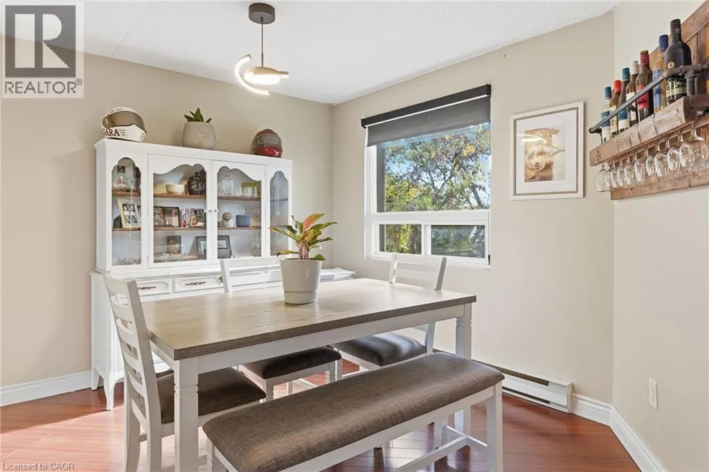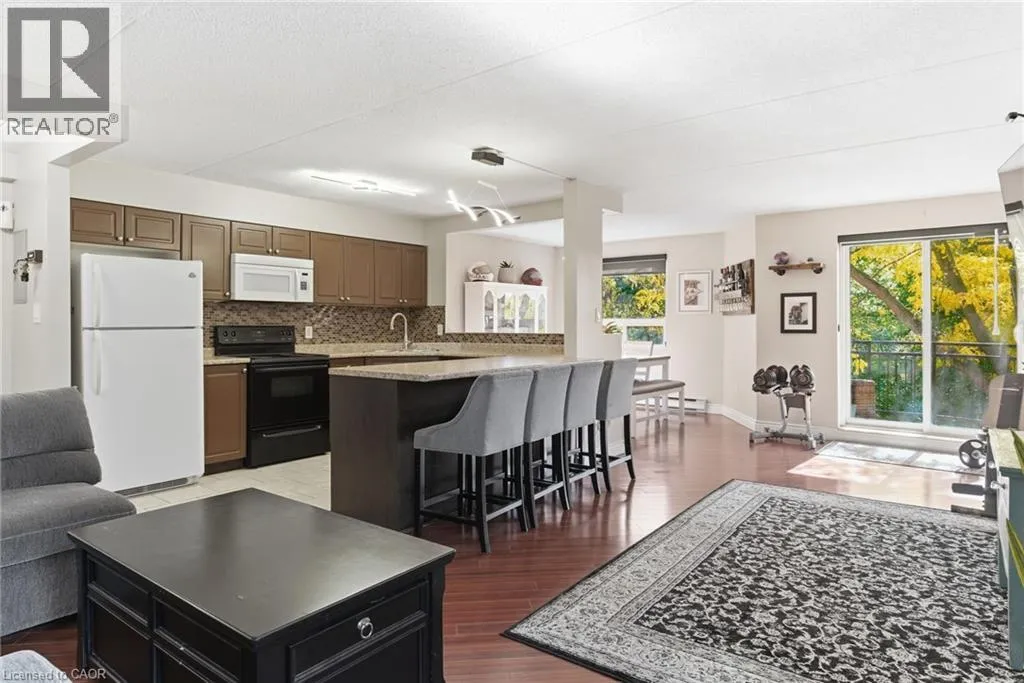 Morrison Road to Drummond Road Step into this updated, bright, and spacious top-floor corner unit, offering stylish comfort and exceptional convenience. This move-in-ready condo features an open-concept layout with a modern kitchen equipped with a peninsula, breakfast bar, and a dedicated dining area â perfect for both casual meals and entertaining. Natural light pours in through large windows, and the walkout to your private balcony adds a serene outdoor escape. Enjoy two generously sized bedrooms, including a primary with ensuite privileges to a well-appointed 4-piece bath. The added convenience of in-suite laundry enhances everyday living. One ground-level parking space is included, with the option to rent additional parking if needed. Located close to shopping, dining, parks, and major highways, this condo is ideal for professionals, small families, or anyone seeking modern living in a desirable Niagara Falls neighbourhood. (id:27476)