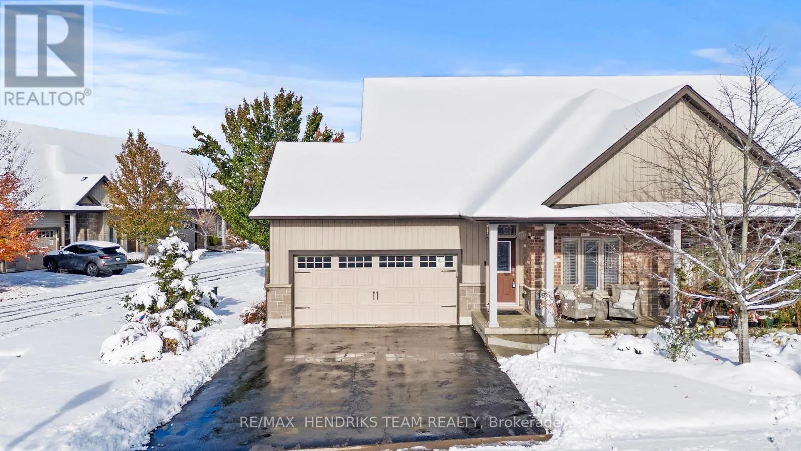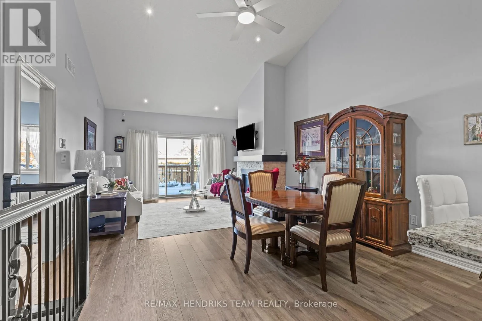 Cross Streets: Osprey Ave. ** Directions: Osprey Ave to Eagle Ridge Dr. Stunning semi-detached townhome with double car garage in Niagara Falls! As you enter, you'll be greeted by elegant tile flooring in the foyer while the first bedroom on the right features beautiful engineered hardwood flooring and double closets. The kitchen showcases warm cabinetry accented by white subway tile backsplash, stainless steel appliances, granite countertops, and centre island with breakfast bar. The open-concept living and dining area is highlighted by vaulted ceilings, a cozy gas fireplace, and durable luxury vinyl plank flooring, creating an inviting space to relax or entertain. Sliding patio doors lead to a private deck and small grass area - perfect for pets! Enjoy maintenance-free, low fee condo living as snow removal and lawn care are both taken care of for you! The convenience continues with a main level laundry room located near the double car garage that offers direct access into the home. Overlooking the backyard, the spacious primary bedroom offers a walk-in closet and a beautifully finished ensuite with a walk-in shower. The fully finished basement extends your living space. The vinyl flooring continues through the family room with second gas fireplace and the 3rd bedroom with walk-in closet. There's also a 4 piece bath with a tub/shower combined plus a dedicated workshop area-ideal for hobbies or extra storage. This home truly combines comfort, style, and easy living in one perfect package! (id:27476)