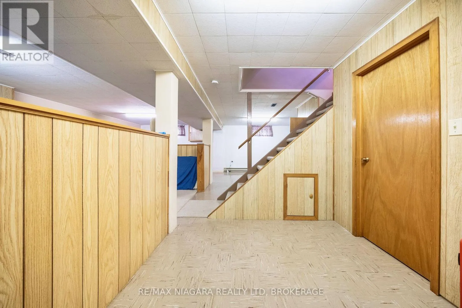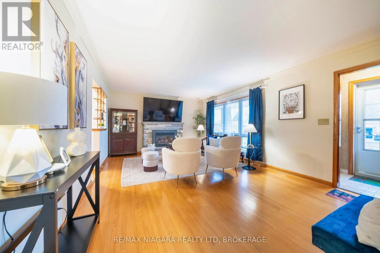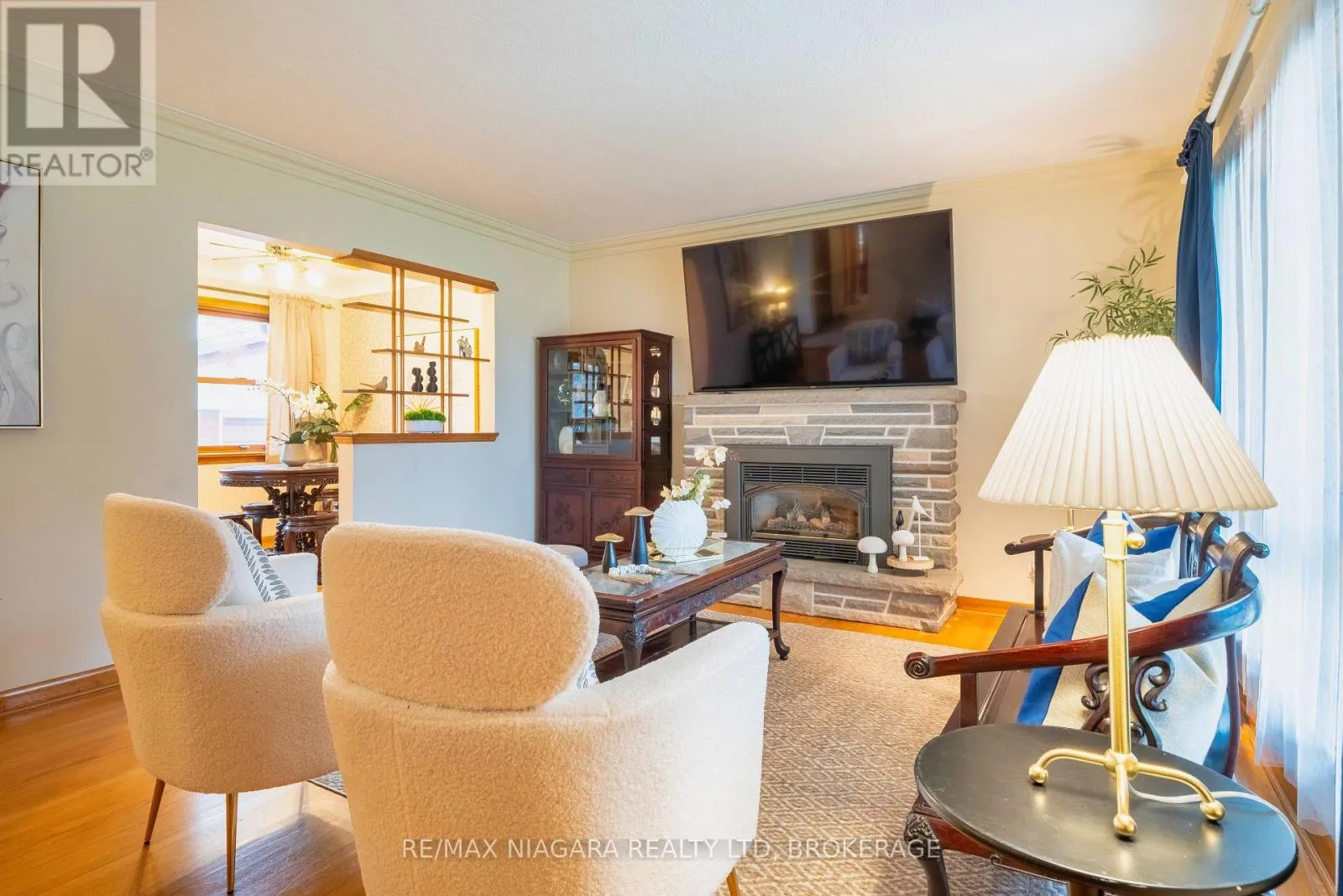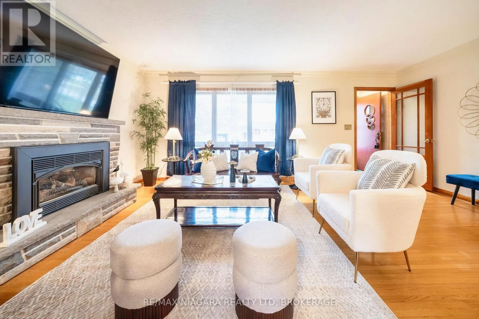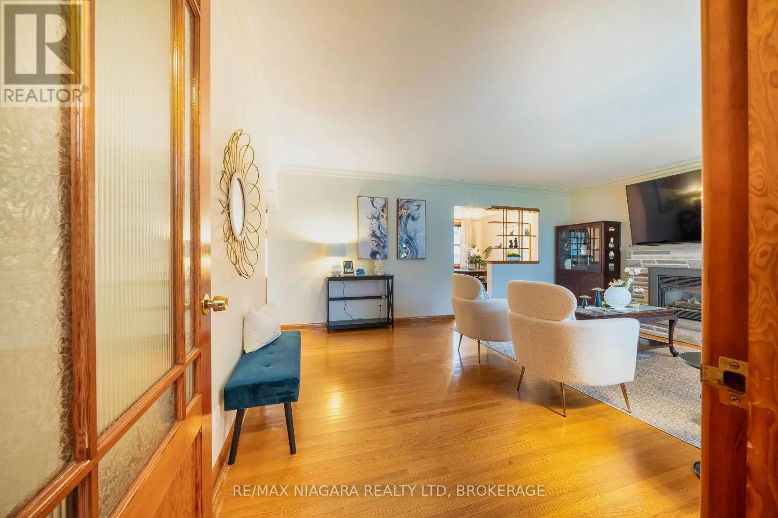 Portage to Huggins to Glendoone Exquisitely maintained detached bungalow in the highly coveted Stamford neighbourhood. Tucked away on a quiet, picturesque street in the north end of Niagara Falls, this charming residence offers timeless comfort and an exceptional lifestyle setting. A welcoming concrete front porch leads into an inviting main floor, where a warm living space with fireplace and expansive picture window creates an elegant yet cozy atmosphere. The space flows effortlessly into a bright, airy kitchen complete with essential appliances and generous functionality.The private bedroom wing features three well-appointed bedrooms, each offering closets and natural light, and is serviced by a tastefully designed 3-piece bathroom. The lower level, with a separate entrance, enhances the home's versatility and includes a spacious recreation room, game area, laundry space, and a convenient 2-piece bathroom-ideal for entertaining, extended family, or flexible living arrangements.Step outside to a serene backyard retreat, fully fenced and surrounded by mature trees, with no rear neighbours-offering exceptional privacy and a peaceful outdoor escape. A detached garage in excellent condition provides additional parking and storage.Perfectly positioned, this home is within walking distance to Mitchelson Park, featuring a pool, splash pad, tennis courts, and soccer fields, as well as St. Paul and A.N. Myer high schools, multiple elementary schools, shopping, grocery stores, banks, professional services, LCBO, and more.An ideal blend of comfort, privacy, and convenience-perfectly suited for discerning families or those seeking refined single-level living. (id:27476)