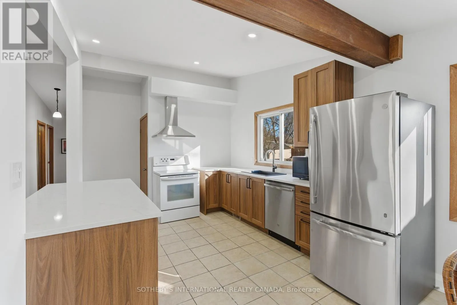 Cross Streets: DORCHESTER AND PETTIT. ** Directions: Dorchester to Pettit to Glenayr. Welcome to this well-maintained bungalow in a highly desirable North Niagara Falls neighbourhood, close to top-rated schools, parks, shopping, and quick QEW access. The home features a renovated kitchen, with vaulted ceilings and mid-century modern character, offering over 2,000 SQF of finished living space.The layout includes a self-contained in-law suite with a separate entrance, second full kitchen, and spacious living area, ideal for extended family living or flexible use. The property also offers a detached double garage and double driveway. Inside, enjoy a bright main floor with an eat-in kitchen, three bedrooms, and an updated 3-piece bathroom. The lower level features a second kitchen, a large recreation room with gas fireplace, a fourth bedroom, a 3-piece bathroom, and a spacious laundry area. A comfortable and versatile home in a sought-after location. (id:27476)