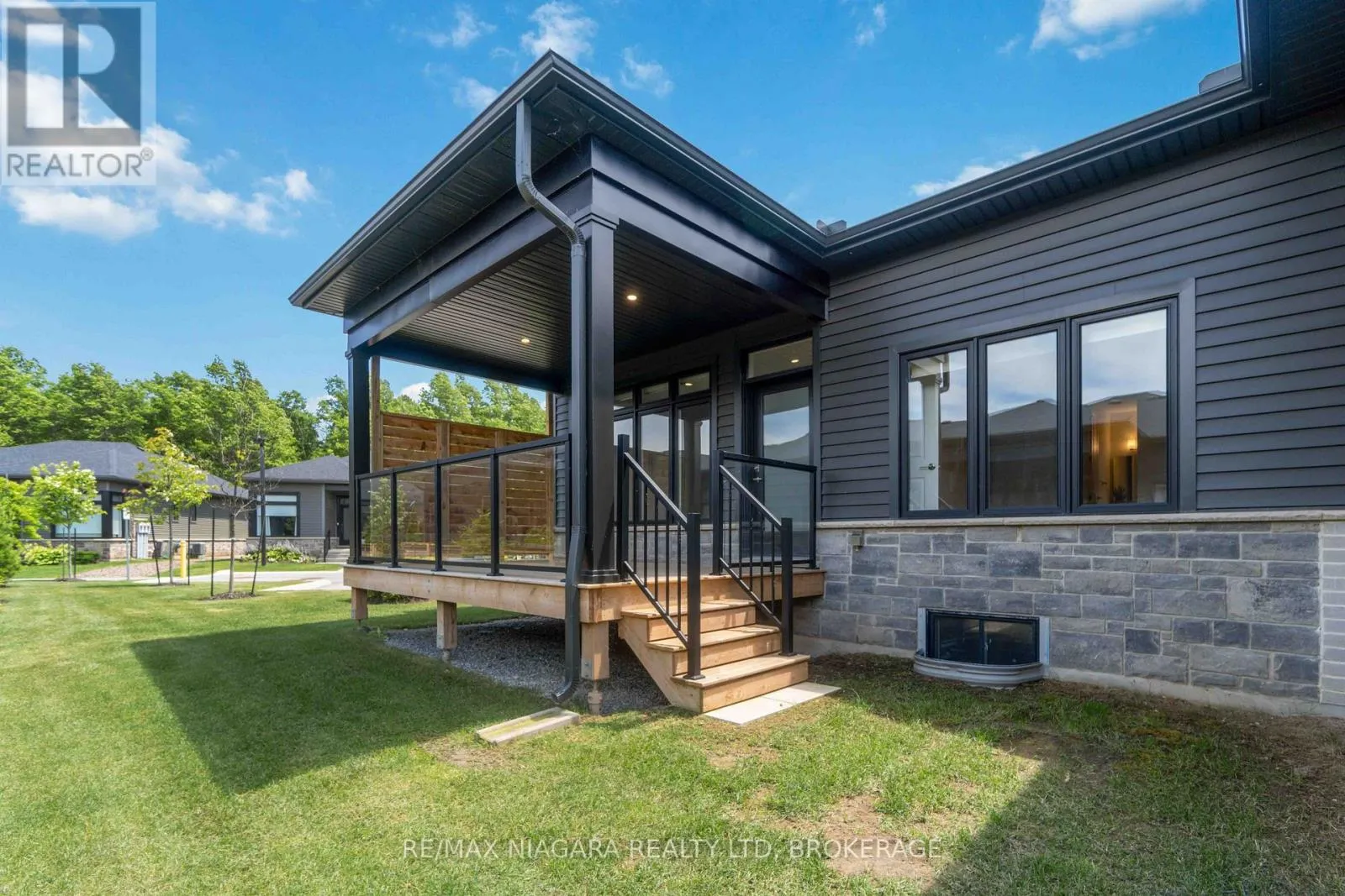 Willoughby This end unit 2 bed 2 bath bungalow townhouse offers a perfect blend of modern elegance and serene living, situated just steps away from a prestigious Legends golf course. Open concept kitchen, Dining rm and Living rm, with garden door to entertainment sized covered deck with glass railings, Engineer hardwood floors throughout main level, master bedroom with walk in closet and ensuite. Upgraded kitchen with stainless steel appliances, and quartz countertops. Large unfinished basement. concrete driveway with single car garage. Enjoy Local Golf, Wineries and excellent restaurants, all within minutes. Convenient access to Highways 406 / QEW, for access to Toronto or USA, just a short drive away.... Perfect for golfers and those seeking a luxurious, low-maintenance lifestyle. (id:27476)