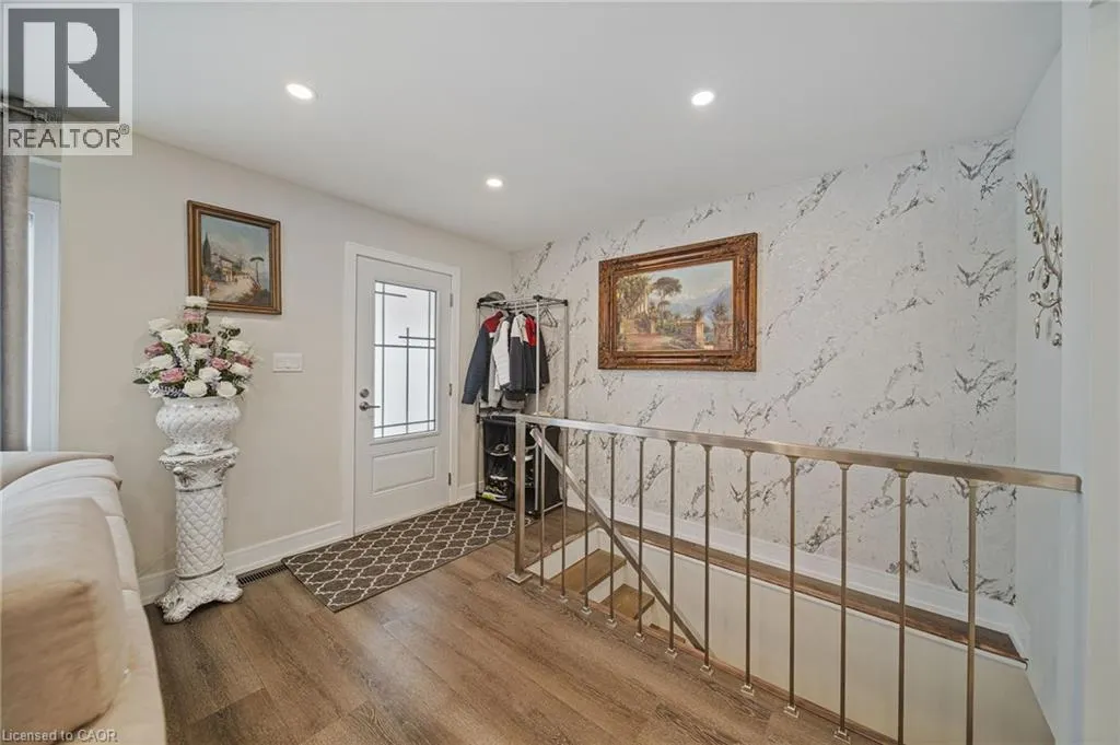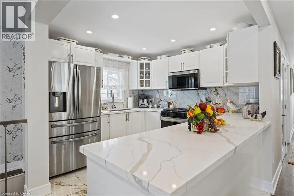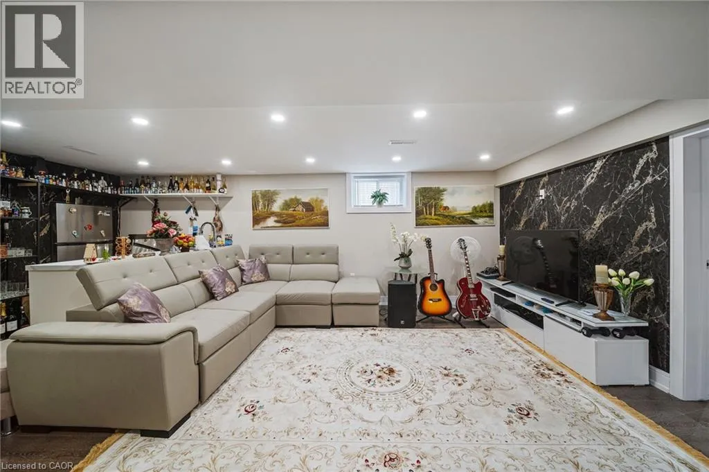 From the QEW, take the 420 exit, Turn left on Stanley Ave, Right on Bridges St, left on Sixth. House is on the right. Step inside this fully renovated Niagara Falls bungalow and experience a perfect blend of modern style and comfort. The open-concept main level boasts bright living and dining space highlighted by a showpiece high-gloss media wall and smart LED lighting. Entertain with ease in the designer kitchen featuring polished marble-look tile flooring, quartz countertops, sleek cabinetry, and stainless steel appliances. The main bathroom feels like a spa with its contemporary fixtures and smart mirror, serving the two beautifully remodeled bedrooms on this level. The main level transitions seamlessly into a fully finished lower level â an entertainerâs dream space. The expansive rec room invites movie nights and game days with its custom bar. A private guest suite (third bedroom) and a stylish second bathroom make this floor ideal for visitors or extended family. Outside, unwind or entertain in the large fenced backyard, complete with a patio area perfect for BBQs and summer gatherings. A private driveway provides convenient off-street parking. Situated on a quiet dead-end street, this home is minutes from schools, parks, shopping, and transit. Enjoy the best of both worlds â a tranquil neighbourhood setting with quick access to all the amenities and attractions Niagara Falls has to offer. This turn-key home delivers smart features, designer finishes, and an unbeatable lifestyle location! (id:27476)