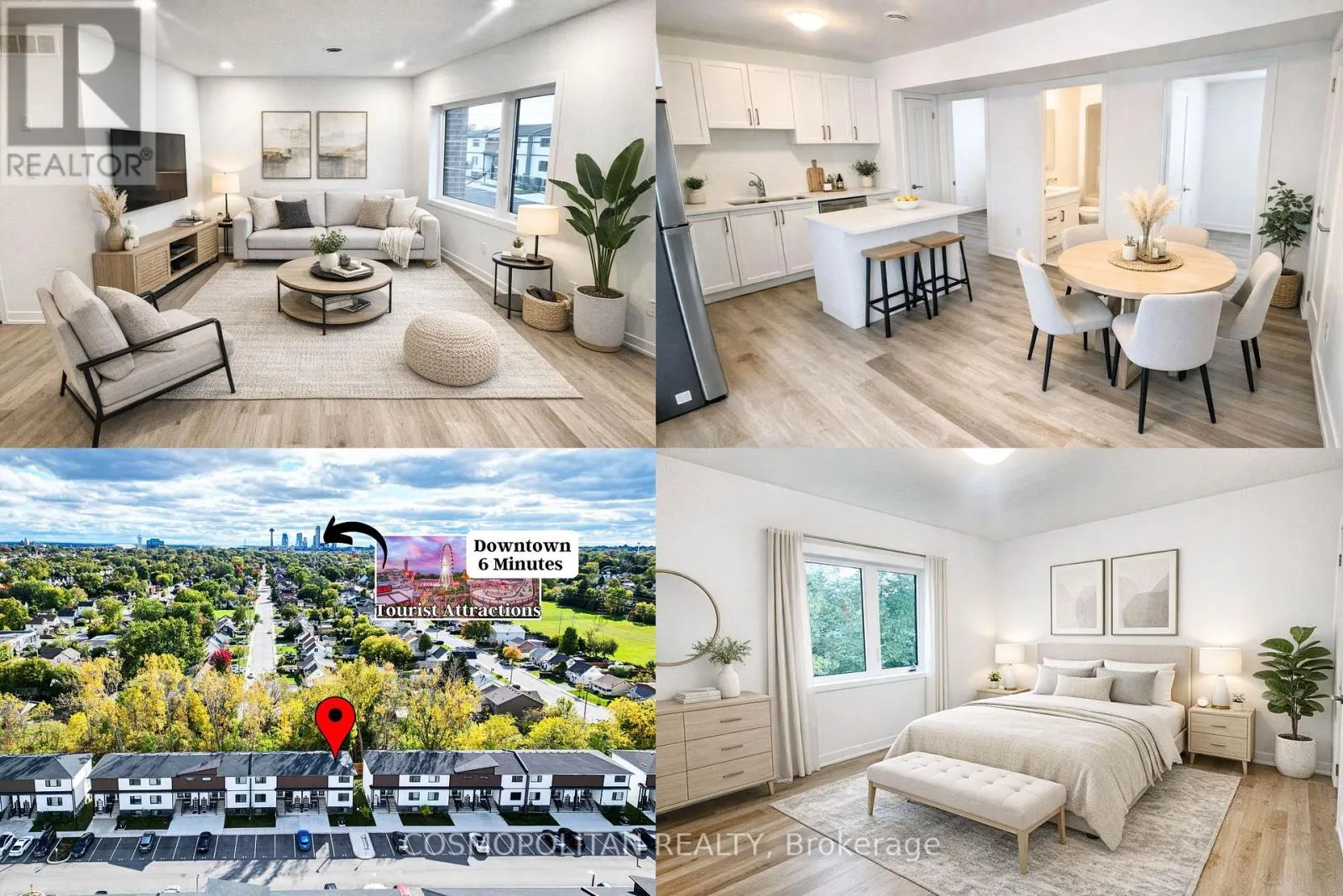 Bridge St. onto Fourth Ave Beautiful 2-Bedroom Condo in Prime Niagara Falls Location. Enjoy modern and comfortable living in this bright and spacious 2-bedroom ravine stacked townhouse - perfect for professionals or small families.The unit features 2 large bedrooms, 2 modern bathrooms, and an open-concept layout with stylish vinyl flooring throughout. Large windows bring in plenty of natural light and offer amazing views of the Skylon Tower, SkyWheel, and Fallsview Casino.The upgraded kitchen includes quartz countertops, stainless steel appliances, a modern backsplash, and a large island - perfect for everyday living and entertaining. One parking space included.Located minutes from Niagara Falls, Niagara Falls University, GO Station, wineries, restaurants, and major attractions, with quick access to the QEW. Modern living, great location, and excellent value - a place you'll love to call home.AAA+ tenants preferred. Rental application must include a completed lease agreement, credit report, last three pay stubs, government-issued ID, and a letter of employment. Tenants are responsible for all utilities and the hot water heater rental. Some photos have been virtually staged to illustrate possible furniture layouts. (id:27476)
