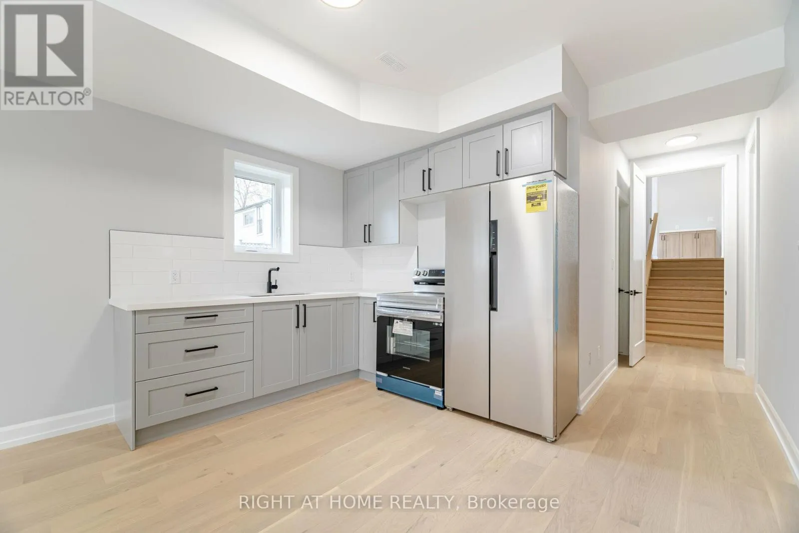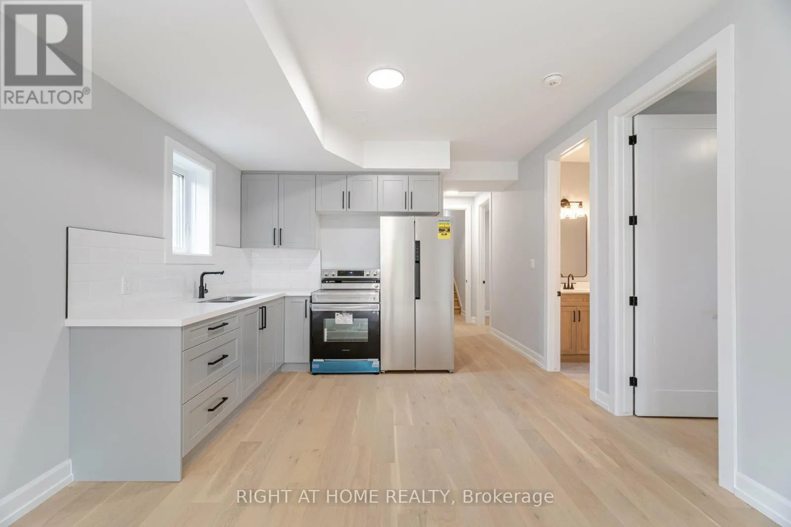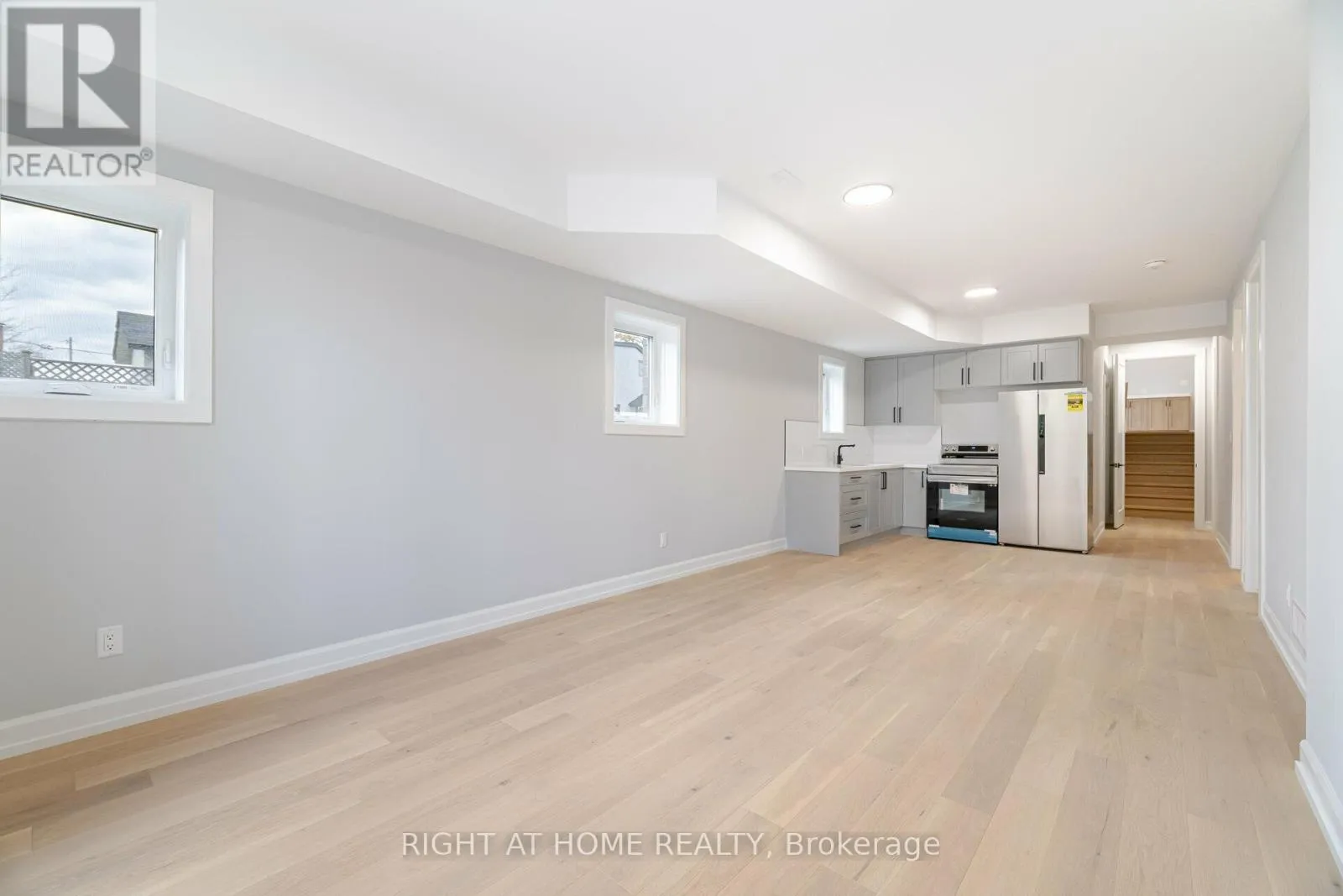 Montrose/WoodbineorKalar/Woodbine 2 year-new walk-up basement apartment in a custom-built luxury home, nestled in a peaceful and family-friendly neighborhood. This stunning unit features 9-foot ceilings and large above-ground windows, allowing for abundant natural light. The thoughtfully designed space includes two spacious bedrooms, a fully equipped kitchen, and a beautifully finished 3-piece bathroom. With a private, separate entrance and elegant hardwood flooring throughout, the open-concept kitchen, dining, and living area create a modern and inviting atmosphere. Perfect for a small family, a couple, or an individual seeking a stylish yet affordable home, this semi-walkout unit offers the feel of an above-grade apartment. Tenant pays 40% of utilities and enjoys the convenience of one dedicated driveway parking space. Well-qualified applicants are preferred. **This is a must-see! Pictures were taken prior to current tenants moving in. (id:27476)