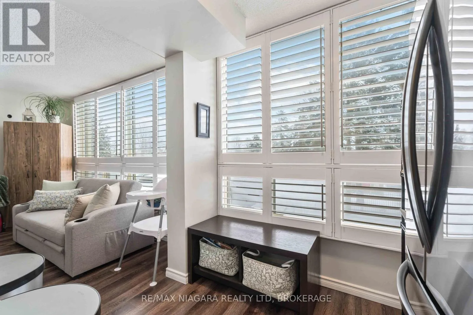 Cross Streets: DAWSON. ** Directions: DORCHESTER. Discover the perfect blend of luxury, comfort, and convenience in this move-in ready condo, boasting a spacious layout with 1 bedroom and 1.5 bathrooms. The unit features an ensuite laundry and delights with its east-facing views that promise stunning sunrises between the pine trees, overlooking a gated pool. This condo shines with modern neutral finishes, 6 matching stainless steel appliances, California shutters, and durable laminate flooring throughout, complemented by large porcelain tiles in the bath and laundry area.Step into a private area where a large bedroom awaits, complete with a generous walk-in closet and a full 4pc ensuite bathroom. A tucked-away nook offers a cozy space for an office, reading room, or additional storage. Located conveniently right off the elevator, this unit is easily accessible and includes the largest basement locker for extra storage, situated just across from the elevator door. An exclusive underground parking spot enhances the appeal, close to garage access door, along with an underground car wash bay for added luxury.The building's amenities are designed to impress, featuring a welcoming lounge on the main level with a kitchen and an outdoor backyard patio, perfect for entertaining guests. A well-equipped workout room and an outdoor pool evoke summer resort vibes, all set within beautifully landscaped grounds. The maintenance fee covers all utilities, including Bell Fibe cable, individually controlled heat and air conditioning, water, hydro, as well as professional landscaping, garbage, and snow removal. Embrace the ease and elegance of this cheerful condo, where every detail caters to a serene and upscale lifestyle. (id:27476)