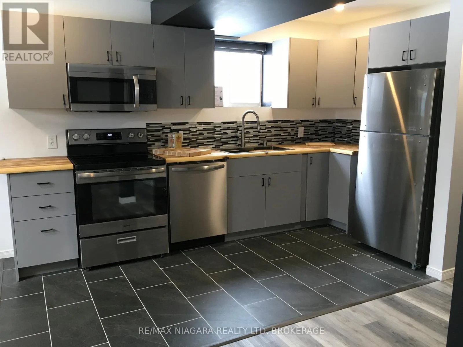 Cross Streets: Alpine Drive. ** Directions: Near Alpine PARK. This Modern 1 Bedroom with walk in closet, Lower Level Unit has Private Side Entry and is Newly Renovated Bright and Clean! Open Concept Living Area features Above Grade Windows, allows lots of light, New Vinyl and Tile Floors and a sparkling New Kitchen with amazing Butcher Block counters. Four NEW Stainless appliances and on tap R.O. Water. The Bedroom Area is a Spacious, Peaceful Escape and perfect for the light sleeper or shift worker. It has a flexible design lay out as a King Sized Bedroom with a Large Walk in Closet that can be used as a Den, Office, Gym or 2nd / Guest Bedroom. This unit has in suite private Laundry Facilities, On Site Storage available, includes outdoor Lawn Maintenance and Snow removal and there is really no better option for a Single, Empty Nester or Seniors. Maintenance Free Living with a House and Yard! The owner is even planning a large deck, hot tub, BBQ Pit and landscape for the backyard. The Home has High Ceilings, Sound Deadening Insulation throughout and Black Out Blinds, Paved Parking, Forced Air Heat and Central Air Conditioning. Resort Like - Fresh and Healthy Whole Home Soft Water and Alkaline Water on Tap.The wide Pie shaped lot is mostly privacy fenced and the Property is perfectly situated at the back end of a quiet, low traffic Crescent. A newer subdivision located in the North End of Niagara Falls and conveniently close to highways, shopping, bakeries and banks, walking paths and fantastic Alpine Park ! The only other tenant in this building is the owner, a single Day worker who will occupy one of the only two units and looking for a tenant/s who appreciates a little peace and quiet. ALL UTILITES and UNLIMITED WiFi and Video Streaming are INCLUDED ! Lawn maintenance and snow removal are also INCLUDED. Tenant has additional add on options if needed: Add $53/mo for ensuite laundry machines , Add $53/mo for Steel Storage Container (13x7 - better than a self storage unit and it is right on site) (id:27476)