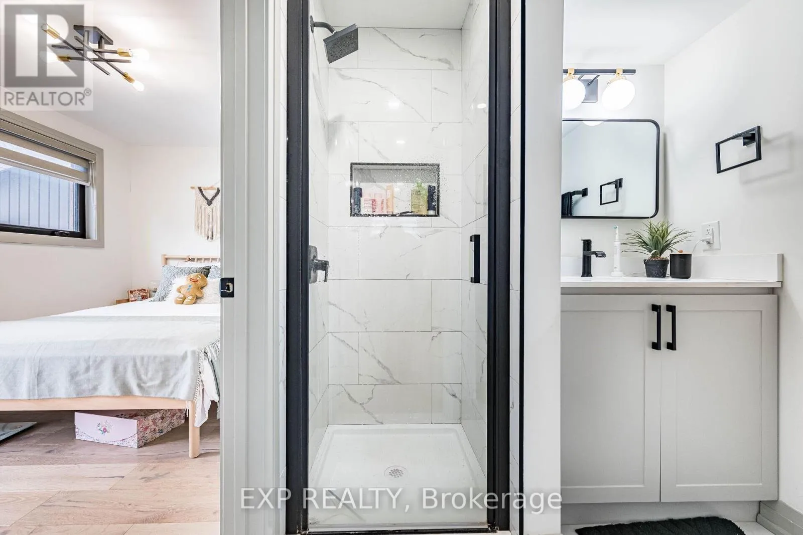 Montrose to Chorozy Looking for a versatile, income-generating property with exceptional flexibility? This extensively renovated designer home offers multiple separate living spaces ideal for multi-generational living or strategic investment. The main level features a private 1-bedroom suite with its own separate entrance, living area, and ensuite - perfect for extended family or rental income. The upper level showcases a beautifully upgraded kitchen with quartz countertops, a bright living room with patio doors to a balcony, and three spacious bedrooms, creating a comfortable primary residence while maintaining privacy between levels. Adding even more value, the basement has its own separate entrance, presenting strong potential for future conversion into a legal unit (buyer to complete due diligence regarding zoning and approvals). Renovated top to bottom with premium modern finishes. All measurements and information provided to be independently verified by the Buyer and Buyer's Agent. The large backyard includes a new interlocking patio and spacious shed, while the location offers convenient access to golf, restaurants, shopping, and quick connections to Hwy 406 and the QEW for commuting to Toronto or the U.S. (id:27476)