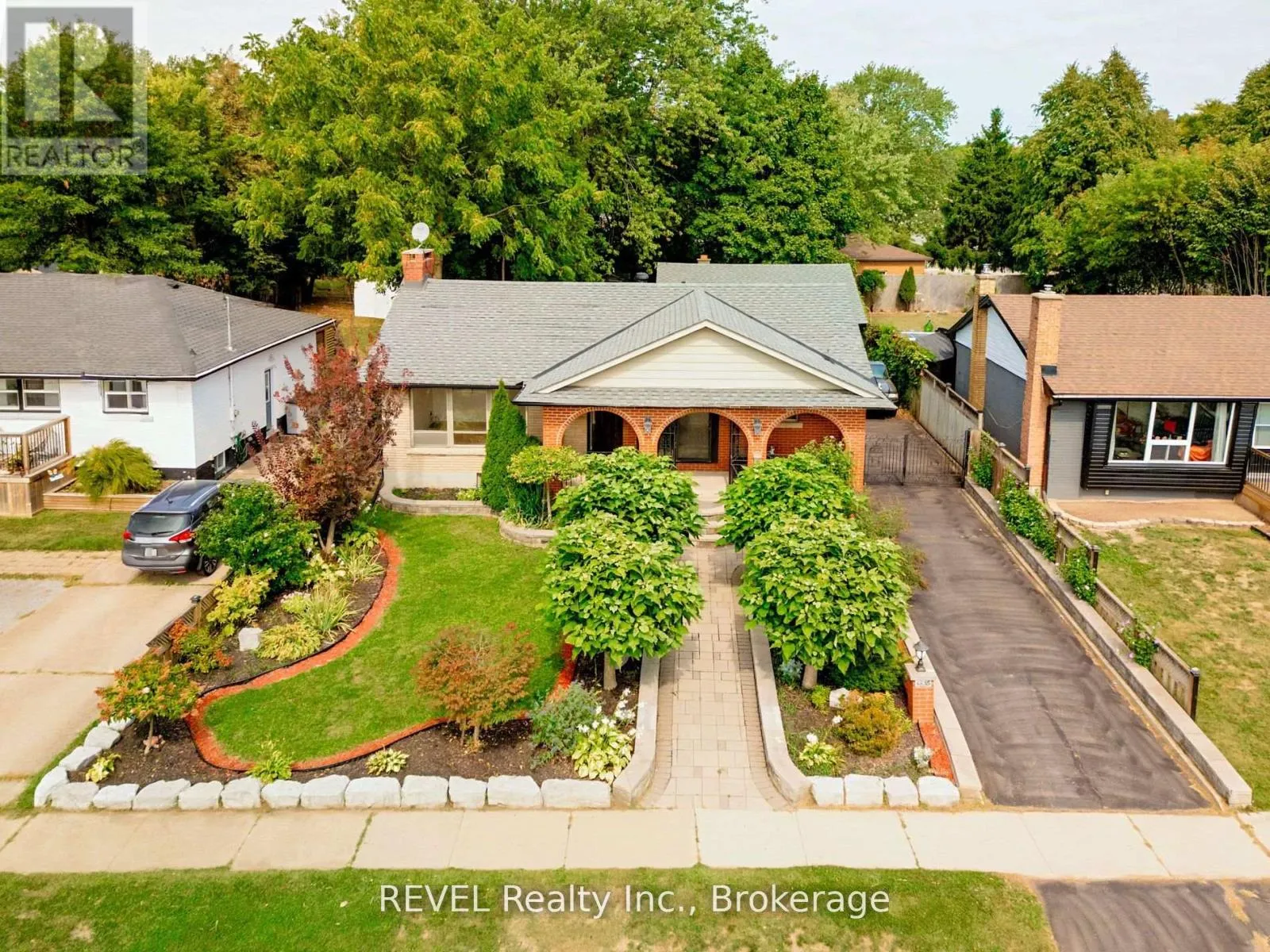 Cross Streets: From QEW, Exit 32 for Thorold Stone Road, Turn right onto Thorold Stone Rd, following left onto Dorchester Rd, and right towards Will St. ** Directions: Dorchester Road/Wills St. Beautiful all-brick bungalow located in Niagara Falls' sought-after Stamford neighbourhood! Set on an impressive 56 x 163 ft lot, this property features a covered front veranda, wrap-around driveway with parking for 8+ vehicles, and a 2.5-car detached garage with loft. The main level offers 3 bedrooms, a 4-pc bath, a bright Eat in kitchen with sliding doors, and a spacious living room with original hardwood flooring. The finished basement with separate entrance includes a bedroom, full kitchen, full bath, laundry, and fireplace-perfect for extended family or income potential. Enjoy the private backyard with covered seating, wood-burning fireplace, and plenty of room for a pool. Close to schools, shopping, parks, and Firemen's Park. (id:27476)