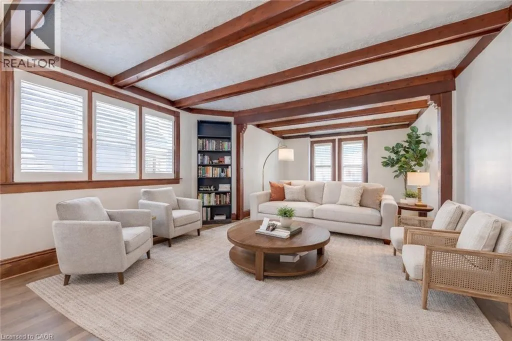 Morrison to St. Clair to Ellis Charming century home on a deep, tree-lined lot! Welcome to 4456 Ellis St, offering nearly 1600 sq ft of above ground space with 4 bedrooms and 2 bathrooms, blending timeless character with thoughtful modern updates, highlighted by exposed natural wood beams, California shutters, fresh paint throughout, and new flooring on the second floor. The kitchen is equipped with newer appliances including a brand new dishwasher and stove, while major updates completed in 2017 include the roof, furnace, A/C and windows, providing peace of mind for years to come. The triple-wide driveway accommodates up to four vehicles and offers space for a trailer. Situated within walking distance to the GO Train station, library, Niagara Parkway and scenic trails, this property offers the perfect combination of charm, space and convenience. Some images are virtually staged. (id:27476)
