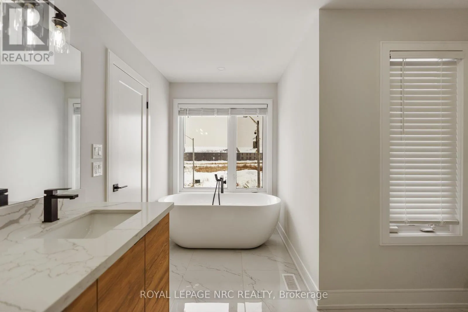 Cross Streets: McLeod. ** Directions: McLeod to Marvel to Splendour. Welcome to Satisfaction. Custom built luxury two storey semi-detached house well positioned in and exclusive new subdivision in Niagara Falls. This 2,078sf semi has (4+1) large bedrooms, (2.5+1) bathrooms and (1+1) kitchens. With large open concept living/dining area overlooking the backyard, complete with rear deck off the dining room, custom kitchen with island, stainless steel appliances and quartz countertops. Large living room with electric fireplace that opens to rear deck overlooking the backyard. The spacious primary suite feature a walk-in closet and luxurious en-suite with glass shower and soaker tub. Three additional oversized bedrooms and a full bathroom upstairs. Engineered hardwood and tile flooring throughout. Complete with single car garage, main floor laundry, pot lights, 9 foot ceilings, HRV system, tankless on demand hot water heater. The basement (750sf) has a side walk-up entrance, an additional bedroom, full bath, kitchen and laundry to use as an in-law suite. Conveniently located in the desirable new Splendour subdivision, with easy access to great schools and public transit. Backing onto the new Thundering Heights Public School, close to parks, Heartland Forest, walking distance to bigbox retail, grocery, restaurants, and the QEW. Enjoy the best of what Niagara has to offer from this central location. (id:27476)