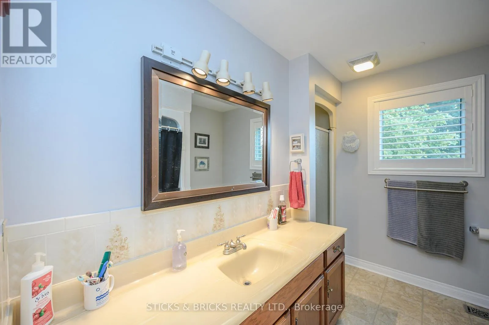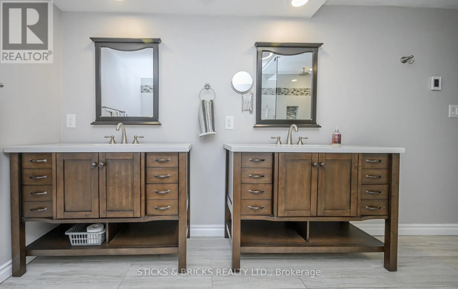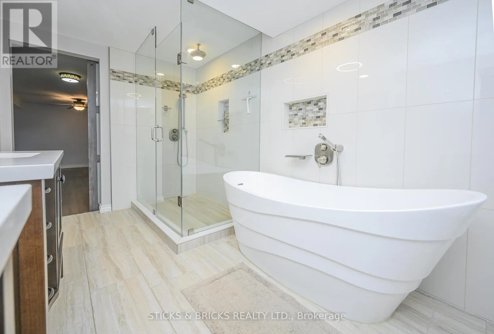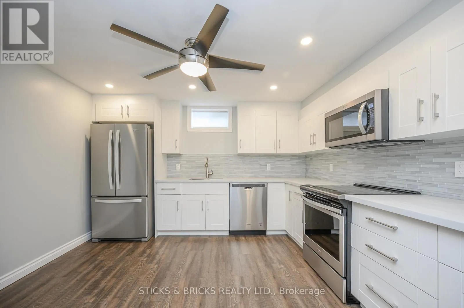 Cross Streets: thorold stone rd and burbank cres. ** Directions: thorold stone rd to burbank cres. Welcome to Burbank Crescent! This north end closed circle street offers this Solid Brick Two Storey home with over 3,000 sq. ft. of finished living space. Including a fully finished in law suite on the lower level and a two car garage. The main level has a generous entrance leading to the large, well-appointed kitchen and sunken family room with gas fireplace. You have a formal dining room and big, bright living room, and convenient main floor laundry. The second level offers 3 good sized bedrooms and a 5 pc. bath. The freshly completed in law downstairs offers a bright, newer kitchen with Quartz counters and stainless steel appliances. There's also a bedroom and a spa-like 5 pc. bath with soaker tub, separate glass shower, double sinks and heated flooring to complete the package! Updates to this extremely well cared for home include newer steel roof (2016), newer HVAC, triple wide exposed aggregate driveway, Grohe' Smart water controller, newer windows, and much more. You'll love the large, private backyard with deck and pergola with no rear neighbours. All this in this top north end neighbourhood, close to access to the QEW, top area schools, shopping and more. You know what they say about location, this is it !! (id:27476)
