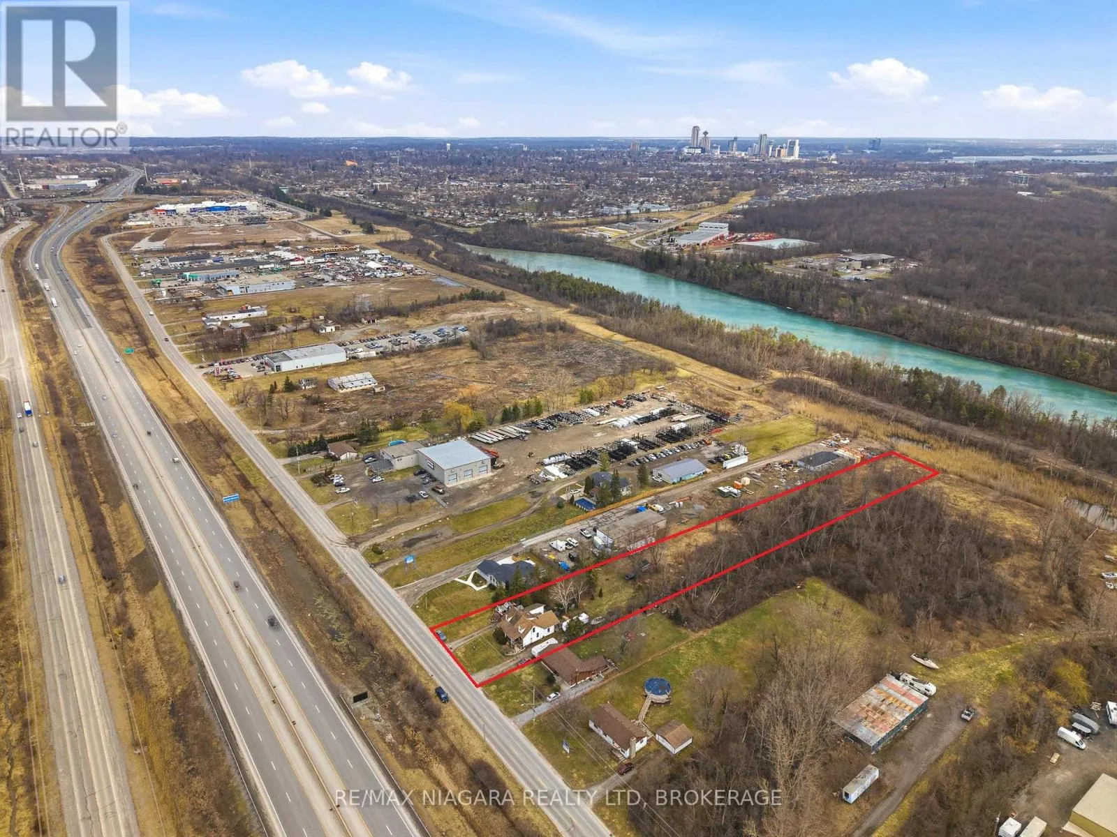 Cross Streets: McLeod Rd and QEW Highway. ** Directions: McLeod Rd to Oakwood Dr. Strategic industrial development opportunity with premium QEW exposure in one of Niagara Falls' fastest-growing employment corridors. Positioned minutes from the McLeod Road commercial hub anchored by Costco, Rona and Walmart, and in close proximity to the new Niagara South Hospital, this corridor continues to see significant public and private investment. The approximately 94.36 x 812 ft parcel is designated Prestige Industrial under the Niagara Falls Secondary Plan, allowing up to 60% lot coverage and a broad range of permitted uses including winery, new or used automobile dealership, adult entertainment, warehouse/distribution, and nursery operations. Auxiliary buildings includes a side-by-side duplex offering interim holding income potential. With exceptional depth, visibility, and flexible zoning, this is a rare opportunity to secure scale and frontage in a high-growth node poised for continued expansion. (id:27476)