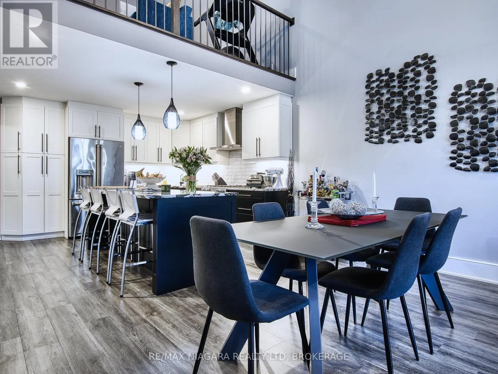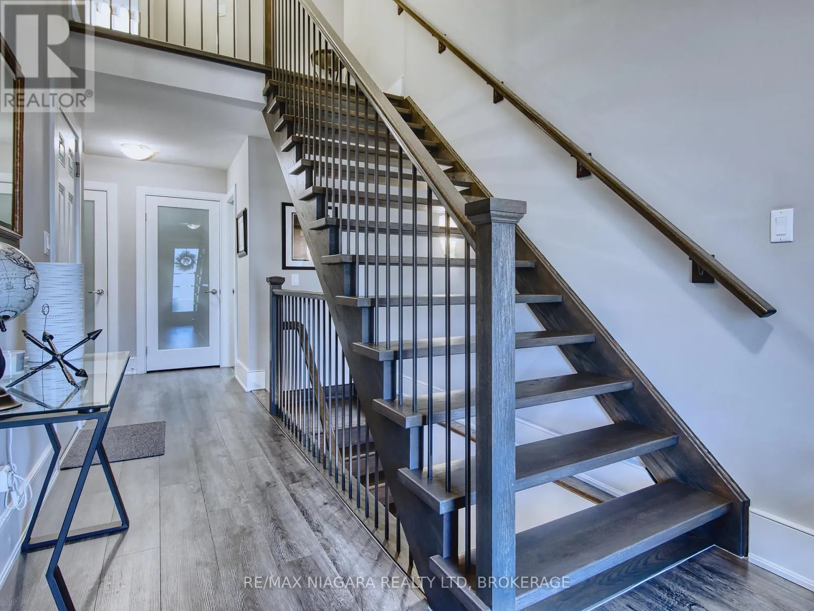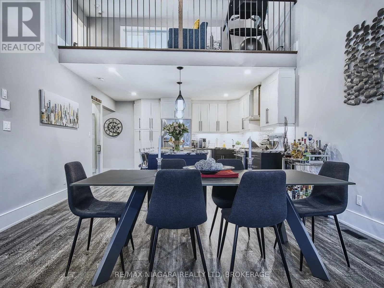 Cross Streets: Mcleod/Stanley. ** Directions: Mcleod to Thundering Waters Blvd to Clubview. Welcome to Clubview Lane, an executive enclave of bungaloft townhomes offering luxury, privacy, and convenience in south Niagara Falls. Located just steps from the clubhouse and first tee, this one-owner home was built in 2017 by Mountainview Homes and features numerous upgrades throughout.The home offers nearly 1,900 sq ft of finished living space. A spacious foyer welcomes you with access to both levels, a 2-piece powder room, and main floor laundry. The main living area features a dramatic vaulted ceiling and an open-concept layout combining the kitchen, dining, and living space, ideal for entertaining. The custom kitchen is complemented by upgraded flooring, custom finishes, and a built-in wine display. The main floor primary suite overlooks the garden and includes custom closets and a well-appointed 4-piece ensuite. Upstairs, the open loft provides flexible living space suitable for a home office, lounge, games area, or library. This level also features an upgraded 4-piece bath and a spacious second bedroom with double closets. The basement is currently unfinished and offers excellent potential, with a bathroom rough-in and cold cellar already in place. Outside, the property features a double garage, two additional driveway parking spaces, rear decking, and professionally landscaped gardens designed for easy maintenance and relaxing outdoor evenings. An exceptional opportunity whether you're seeking a full-time residence, a seasonal retreat, or a home close to golf and amenities. (id:27476)