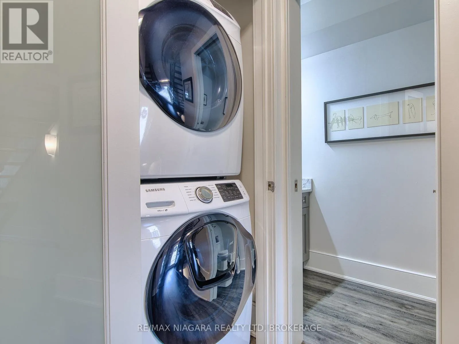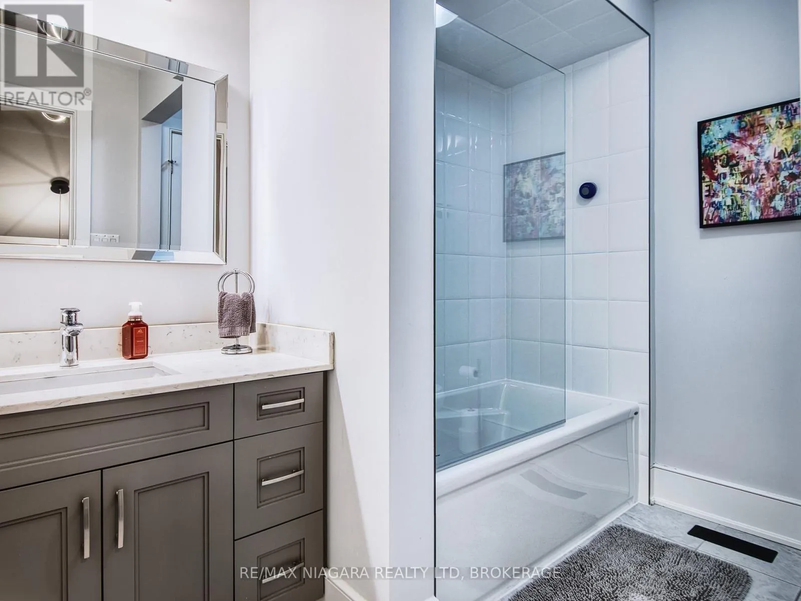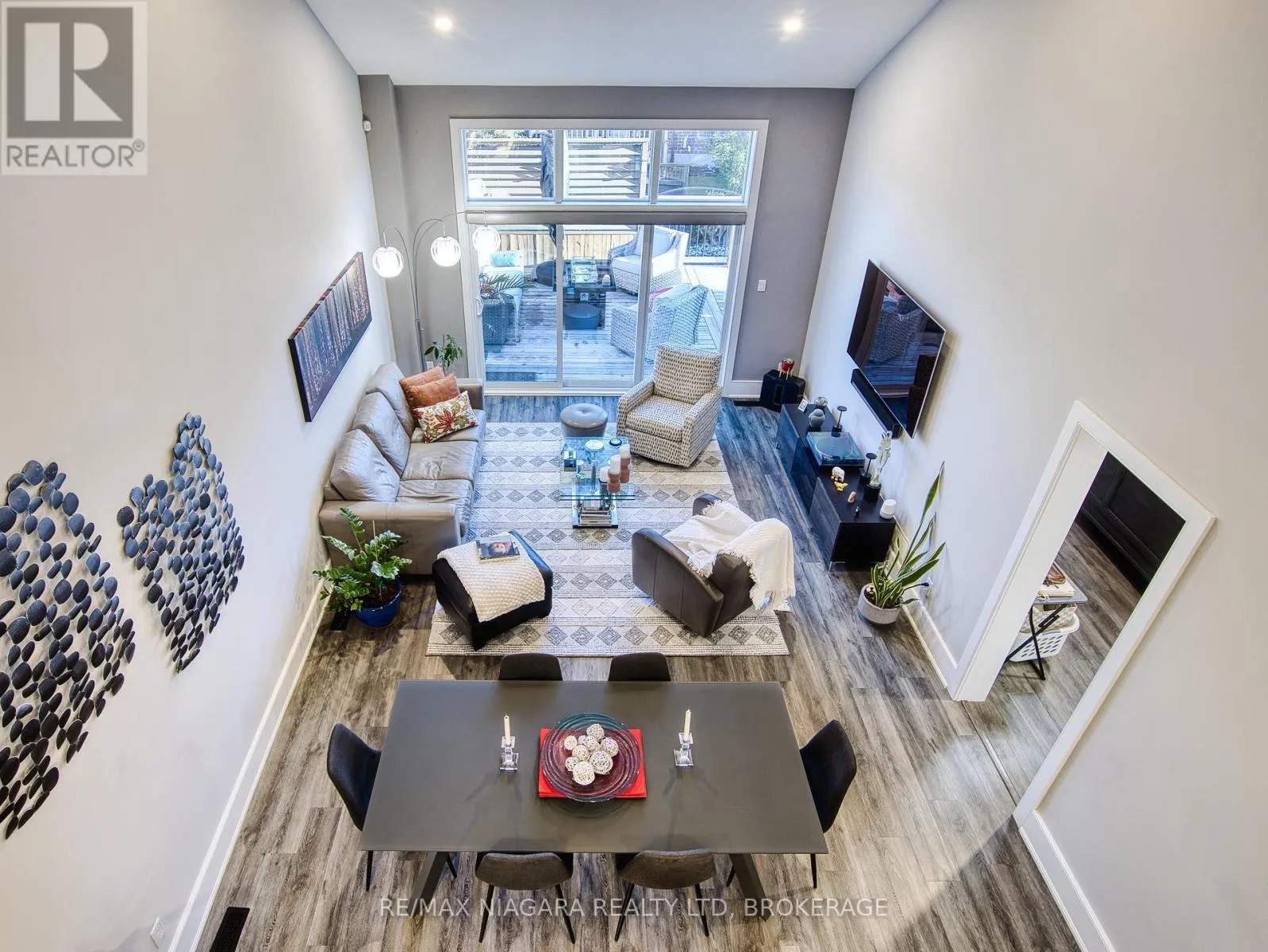 Cross Streets: Mcleod/Stanley. ** Directions: Mcleod to Thundering Waters Blvd to Clubview. Welcome to Clubview Lane, an executive enclave of bungaloft townhomes offering luxury, privacy, and convenience in south Niagara Falls. Located just steps from the clubhouse and first tee, this one-owner home was built in 2017 by Mountainview Homes and features numerous upgrades throughout.The home offers nearly 1,900 sq ft of finished living space. A spacious foyer welcomes you with access to both levels, a 2-piece powder room, and main floor laundry. The main living area features a dramatic vaulted ceiling and an open-concept layout combining the kitchen, dining, and living space, ideal for entertaining. The custom kitchen is complemented by upgraded flooring, custom finishes, and a built-in wine display. The main floor primary suite overlooks the garden and includes custom closets and a well-appointed 4-piece ensuite. Upstairs, the open loft provides flexible living space suitable for a home office, lounge, games area, or library. This level also features an upgraded 4-piece bath and a spacious second bedroom with double closets. The basement is currently unfinished and offers excellent potential, with a bathroom rough-in and cold cellar already in place. Outside, the property features a double garage, two additional driveway parking spaces, rear decking, and professionally landscaped gardens designed for easy maintenance and relaxing outdoor evenings. An exceptional opportunity whether you're seeking a full-time residence, a seasonal retreat, or a home close to golf and amenities. (id:27476)