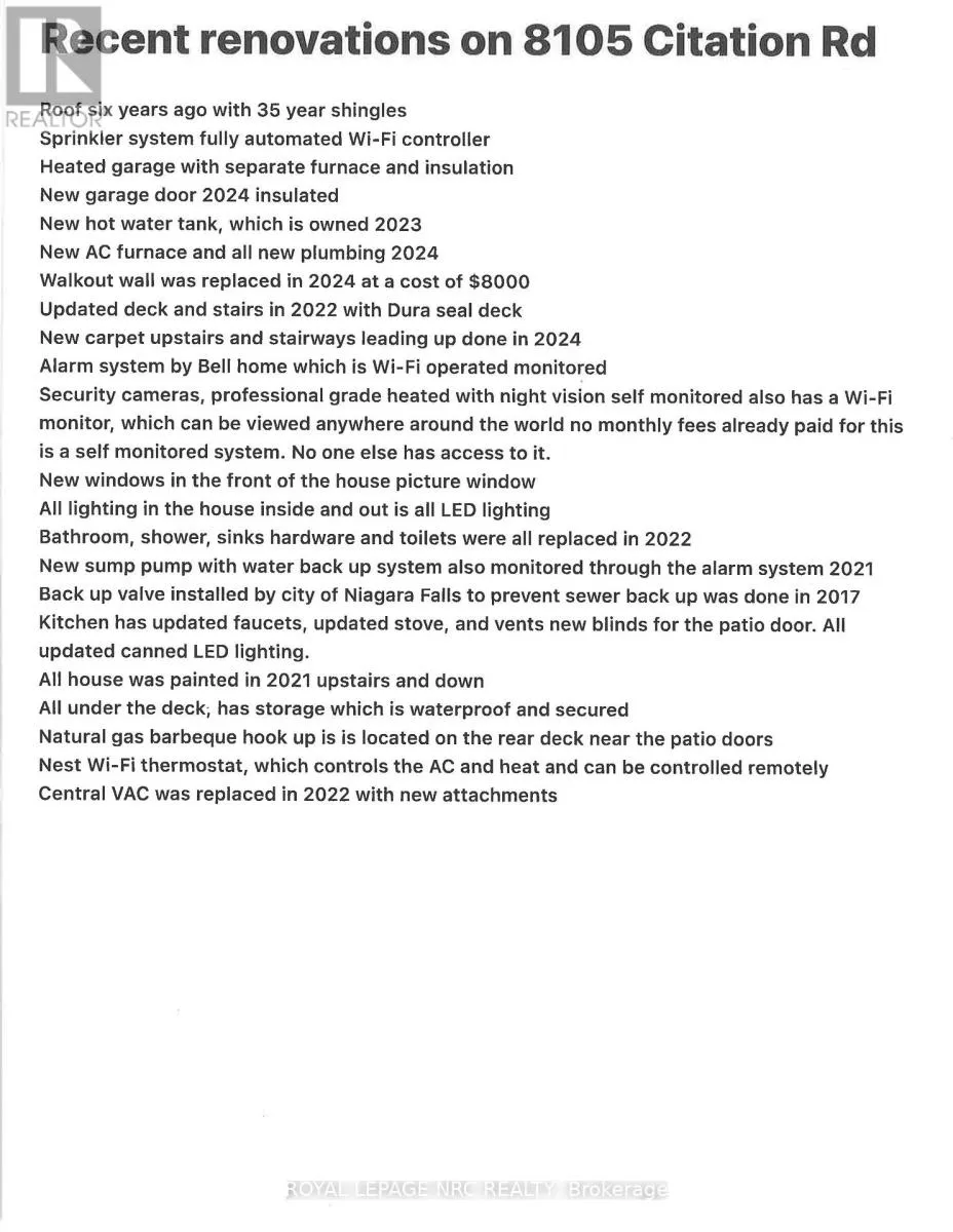 Cross Streets: Kalar Rd & Paddock Trail. ** Directions: Kalar Rd to Paddock Trail right onto Post Rd follow the bend and a right onto Citation. House is halfway down on left side of the street. This beautifully maintained 2+1 bedroom, 2-bathroom home offers exceptional pride of ownership and a warm, inviting atmosphere from the moment you arrive. Built in 2000 and lovingly cared for by only its second owner, this move-in-ready home combines thoughtful updates, functional living spaces, and a fantastic location. The open-concept living and dining area flows seamlessly into the kitchen, creating a bright and welcoming space perfect for everyday living and entertaining. The spacious primary bedroom provides a comfortable retreat, while the finished lower level features a large rec room with French doors and a cozy gas fireplace-an ideal space for family gatherings, movie nights, or relaxing at the end of the day. Step outside through the kitchen's sliding doors to your covered Dura-seal deck (2022) overlooking a fully fenced, private backyard with beautifully manicured gardens. Whether hosting friends or enjoying a quiet morning coffee, this outdoor space offers both charm and privacy. An oversized storage shed tucked beneath the deck adds convenient extra storage. Additional highlights include a 1.5-car garage with a new door (2024), its own dedicated furnace and upgraded insulation, a walk-up from the utility room, and ample storage throughout the home. Lovingly maintained and truly move-in ready, this home offers comfort, functionality, and peaceful living in a desirable Niagara Falls neighbourhood. Don't miss your chance to see this wonderful home-book your showing today! (id:27476)
