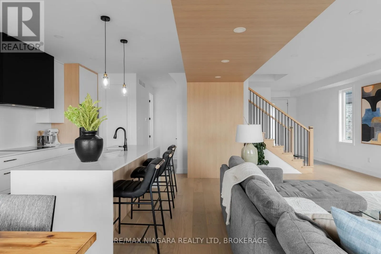 Cross Streets: Garner Road. ** Directions: Start at Lundys Lane heading east toward Garner Road.Turn right onto Garner Road.Continue south on Garner Road for roughly 1 km.Turn left onto Curlin Crescent. Elevated design. Exceptional versatility. Located on a quiet crescent in the sought-after Garner Estates, 6176 Curlin Crescent is a custom-built Scandinavian-inspired home that stands apart from the typical new build. With its modern stucco exterior and warm light oak finishes throughout, the home blends clean contemporary design with a calm, welcoming atmosphere. A key highlight is the fully finished lower level with its own separate entrance, offering a complete in-law suite with a full kitchen, bedroom, bathroom, living area, and laundry. Ideal for extended family, guests, or potential rental income, it adds valuable flexibility rarely found in homes in this area. The main floor features a bright open-concept layout with 9-foot ceilings, engineered hardwood floors, and a striking solid oak staircase. The designer kitchen pairs style and function with quartz countertops, a waterfall island, matte black fixtures, wall oven, sleek cooktop, soft-close cabinetry, and a walk-in pantry. The adjoining living and dining areas create a natural space for both entertaining and everyday living. Upstairs offers four spacious bedrooms and three full bathrooms, including two private ensuites, along with a versatile loft lounge perfect for a home office, media space, or playroom. The primary suite features double walk-in closets and a spa-inspired ensuite with a glass shower and double vanity. Minutes from Costco, excellent schools, highway access, and the growing amenities along Lundy's Lane, this home delivers thoughtful design, flexible living space, and lasting value in one of Niagara Falls' most desirable communities. (id:27476)