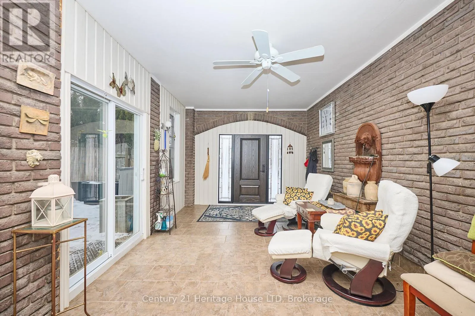 Cross Streets: Ussher and Chipman. ** Directions: Sarah to Ussher. Welcome to this well-maintained 4-level backsplit located at 3112 Ussher Street, in the desirable Chippawa, Niagara Falls neighbourhood close to the Niagara Parkway, golf courses, parks, and all amenities. This thoughtfully designed home offers three bedrooms and a full bathroom on the upper level, featuring refinished flooring and a fresh, neutral palette throughout. The main floor showcases a bright kitchen with updated cabinetry, countertops, backsplash, and stainless steel appliances, including a gas stove, flowing into the dining area and living room finished with engineered hardwood flooring. A sun-filled three-season sunroom provides additional living space for relaxing or entertaining. The lower level features a separate entrance walk up, an additional bedroom, a completely remodelled family/TV room, and a three-piece bathroom, offering excellent flexibility for guests or extended family. The fourth level adds versatility with potential for a kitchenette. Major improvements completed within the last six years include furnace and air conditioner, an updated electrical panel, repaired chimneys, updated front door and front windows, and a gas fireplace that has been professionally serviced and is ready to enjoy. Outside, enjoy a fully fenced backyard with perennial gardens, an interlock patio, 10X10 garden shed, and a hot tub with dedicated power, creating a private and comfortable outdoor retreat.A move-in-ready home offering space, comfort, and flexibility in a fantastic location! (id:27476)