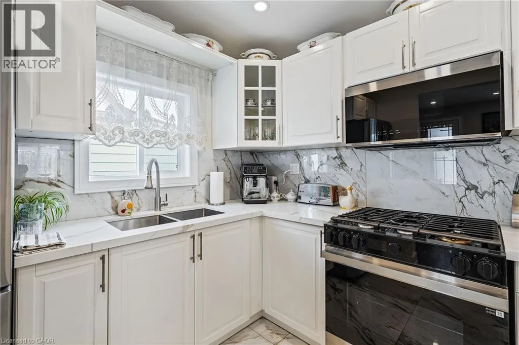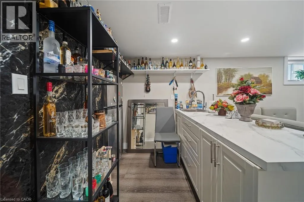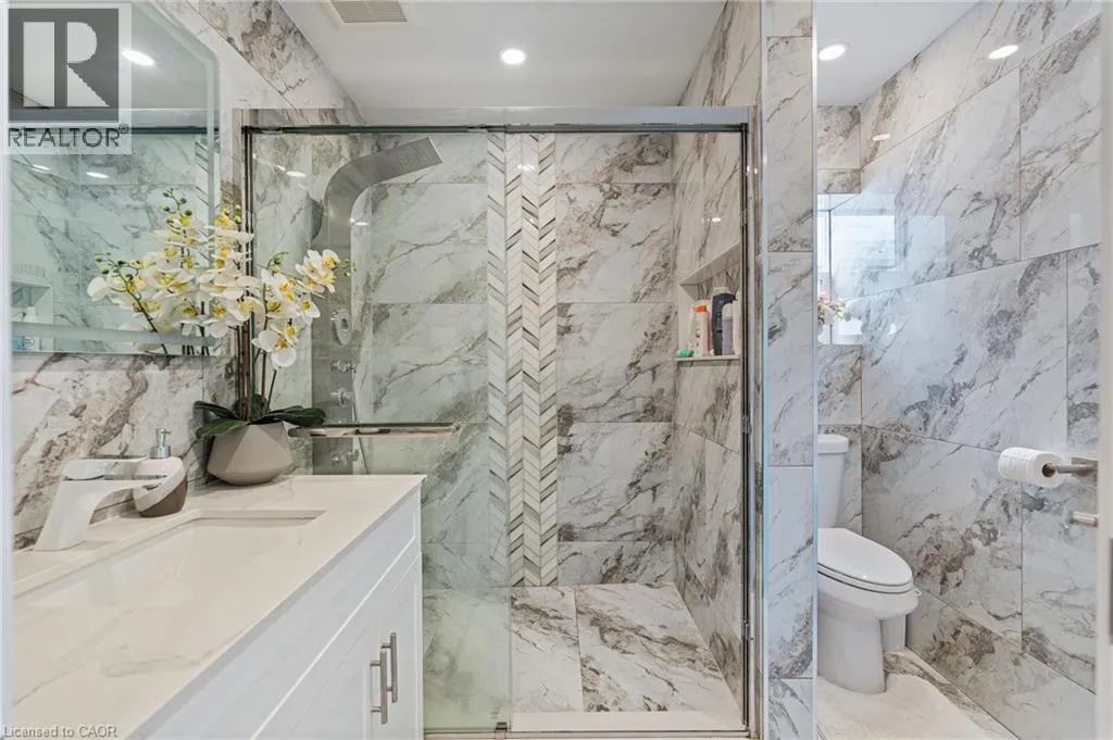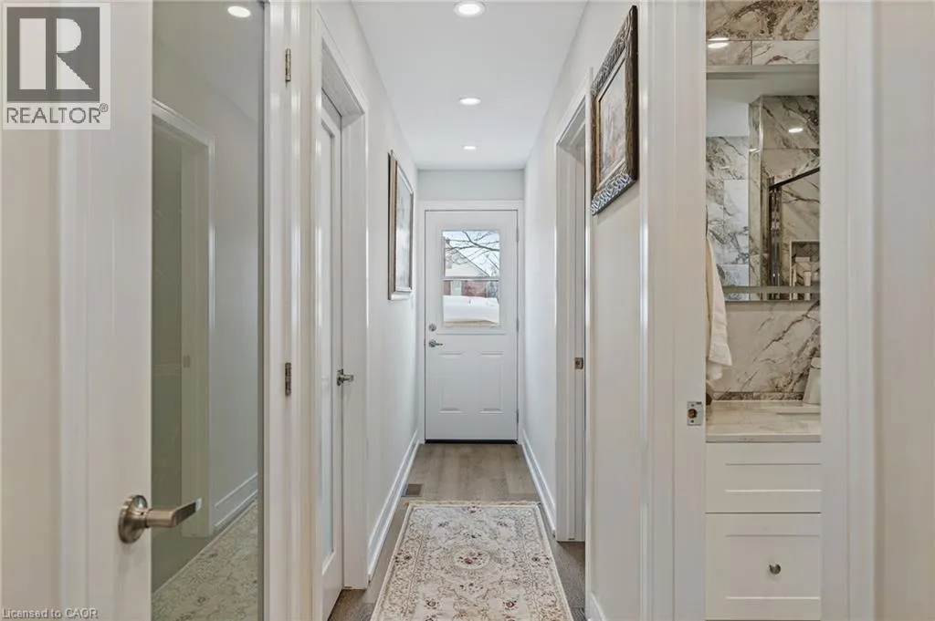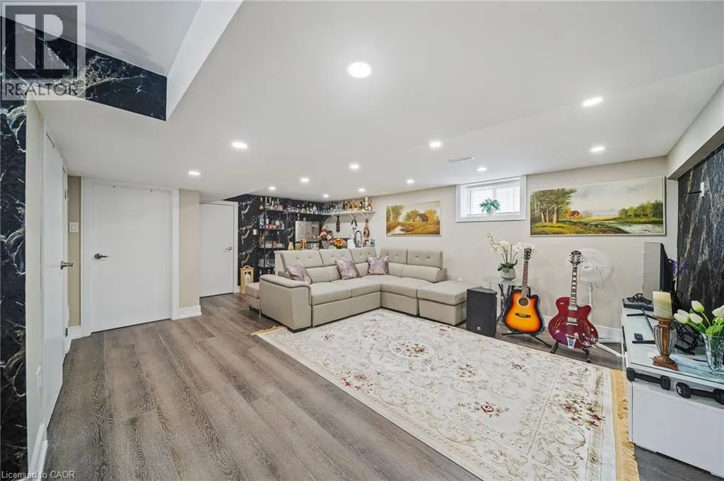From the QEW, take the 420 exit, Turn left on Stanley Ave, Right on Bridges St, left on Sixth. House is on the right. Step inside this fully renovated Niagara Falls bungalow and experience a perfect blend of modern style and comfort. The open-concept main level boasts bright living and dining space highlighted by a showpiece high-gloss media wall and smart LED lighting. Entertain with ease in the designer kitchen featuring polished marble-look tile flooring, quartz countertops, sleek cabinetry, and stainless steel appliances. The main bathroom feels like a spa with its contemporary fixtures and smart mirror, serving the two beautifully remodeled bedrooms on this level. The main level transitions seamlessly into a fully finished lower level â an entertainerâs dream space. The expansive rec room invites movie nights and game days with its custom bar. A private guest suite (third bedroom) and a stylish second bathroom make this floor ideal for visitors or extended family. Outside, unwind or entertain in the large fenced backyard, complete with a patio area perfect for BBQs and summer gatherings. A private driveway provides convenient off-street parking. Situated on a quiet dead-end street, this home is minutes from schools, parks, shopping, and transit. Enjoy the best of both worlds â a tranquil neighbourhood setting with quick access to all the amenities and attractions Niagara Falls has to offer. This turn-key home delivers smart features, designer finishes, and an unbeatable lifestyle location! (id:27476)