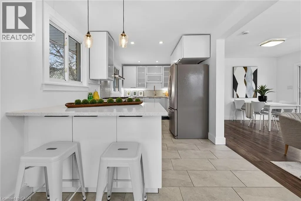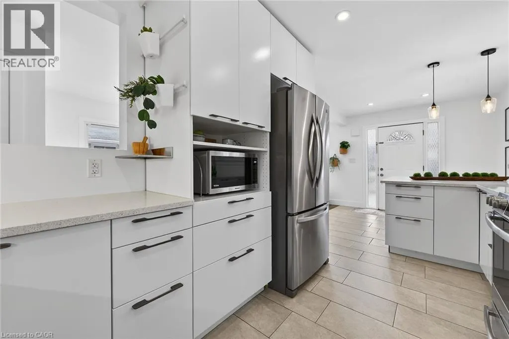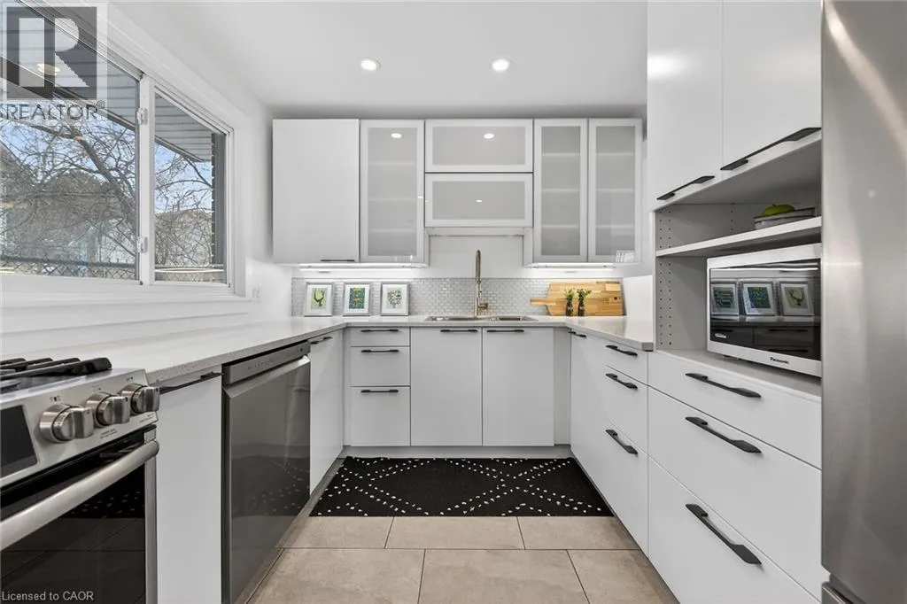 Welcome to 3075 Empire Place! Located on a quiet, family-friendly court, this well-maintained 4-level back split offers space, function, and a great locationâsteps to an elementary school, park, and public transit. The main level features a bright, open-concept living and dining area filled with natural light. The expanded, chef-inspired kitchen is a standoutâcomplete with quartz countertops, plenty of cabinetry, and newer appliances. Upstairs offers three good-sized bedrooms and a renovated 4-piece bathroom. The lower level includes a large, sun-filled rec room with big windows and a gas fireplaceâideal for a family room, games area, office, or teen space. A 3-piece bathroom and separate rear entrance with walkout add flexibility. The basement provides additional space for a workshop, storage, or future finishing, plus a large laundry area. For investors or multi-generational setups, the layout, separate entrance, and window size support strong duplex potentialâtwo units across two levels each. The fully fenced backyard includes three shedsâone with hydro and another roughed-in for power. Updates include kitchen, bathroom, stair carpeting, fresh paint, central air (2025), and gutter guards (2023). A rare opportunity offering a solid home with room to growâand income potential if you want it. (id:27476)