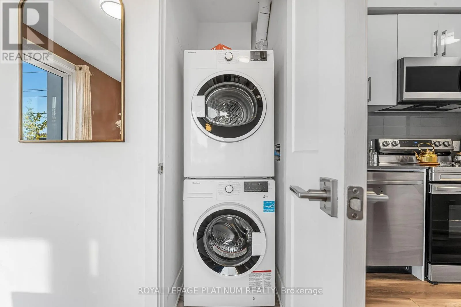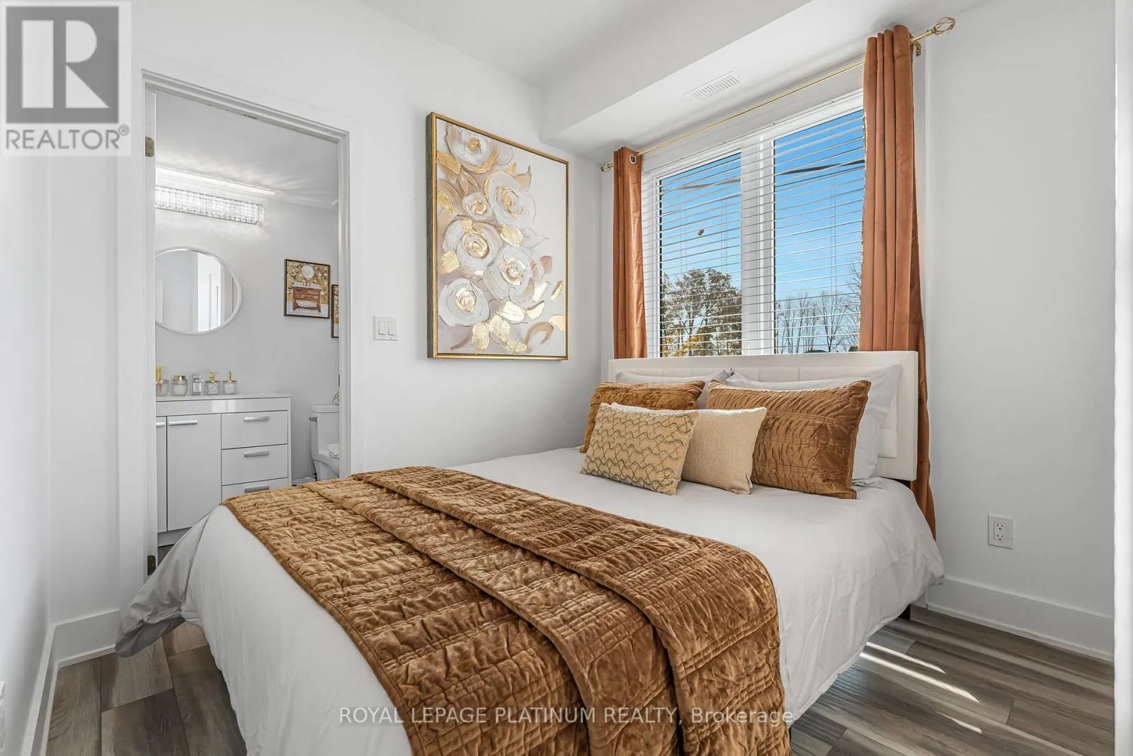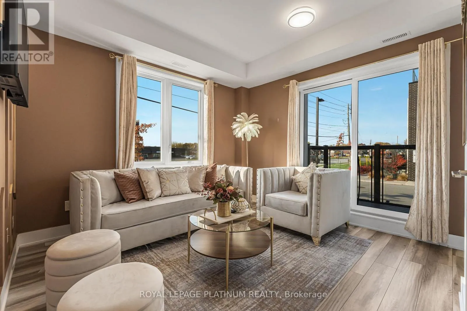 MCLEOD RD LEFT IN 6065 MCLEOD Welcome to 6065 McLeod Road, Unit 204-a modern, bungalow-style townhome built in 2022. This stacked townhouse is located in the highly sought-after south end of Niagara Falls and presents outstanding value for investors, first-time buyers, and downsizers alike. It's also a great opportunity for short-term rental use, including Airbnb or Vrbo. This bright, thoughtfully designed unit offers 2 bedrooms, each with its own ensuite bathroom, plus an open-concept layout. Large windows and laminate flooring throughout enhance the sense of space and natural light. The contemporary kitchen features quartz countertops and stainless steel appliances, seamlessly connecting to the dining area, which opens onto a private balcony-perfect for relaxing or entertaining. Conveniently situated just minutes from Clifton Hill, Fallsview attractions, Costco, dining, and all the amenities Niagara Falls has to offer, this home provides exceptional accessibility for both residents and visitors. (id:27476)