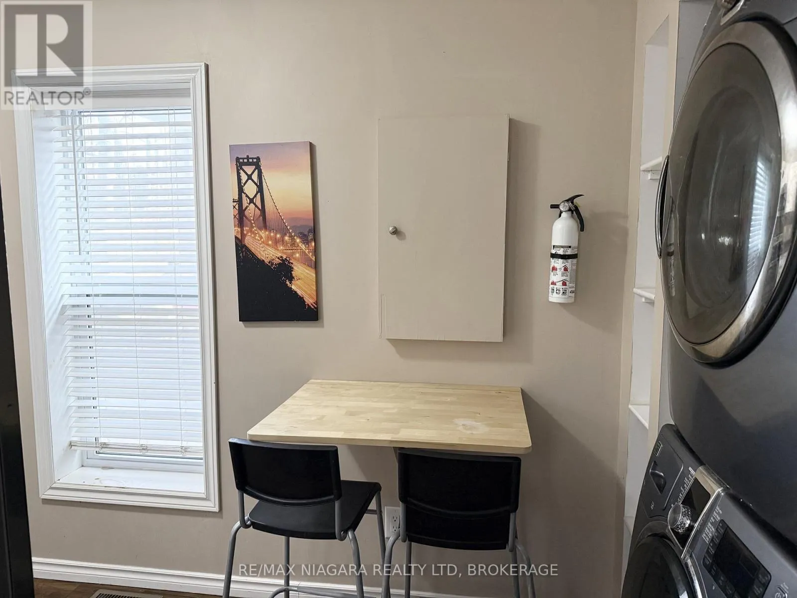 Cross Streets: Queen St and Zimmerman Ave. ** Directions: Queen St to Zimmerman Ave. FULLY FURNISHED UNIT, WITH A PRIVATE BACKYARD AND TWO PRIVATE PATIOS. AVAILABLE FOR IMMEDIATE POSSESSION! Just a short walk to the UNIVERSITY OF NIAGARA FALLS, this newly renovated UNIQUE unit offers modern comfort and unbeatable convenience in the heart of downtown. Located in a well-maintained, secure building, the unit features energy-efficient LED lighting throughout, a bright kitchen WITH IN-UNIT WASHER AND DRYER, and living area-perfect for relaxing or entertaining. Rent includes water, shared internet and private parking, offering true peace of mind. Tenant pays only gas and hydro. This unit is fully furnished, including kitchen essentials, couch, coffee table, queen size bed and bedding, office desk with a chair, office couch and more - is ideal for a turnkey living experience!! Facing the majestic Niagara River, enjoy serene views that elevate everyday living. Take pleasure in two large private patios in your backyard, perfect for socializing or unwinding outdoors. Situated just steps from restaurants, cafes, shopping, transit, schools, the library, parks, casinos, Clifton Hill, and Niagara Falls itself-this location offers the perfect blend of urban living and everyday comfort. Ideal for students and professionals seeking a TURNKEY LIVING EXPERIENCE rental in a prime location. (id:27476)