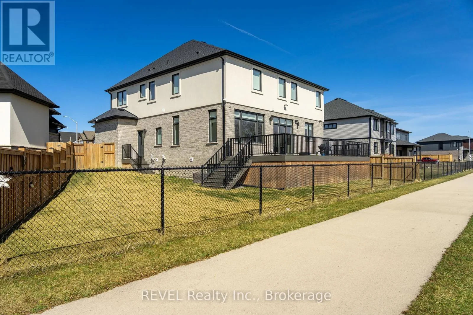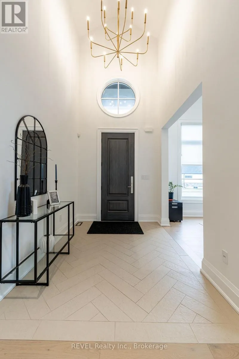 Matteo Dr and Mcleod Rd Luxury, style, and modern convenience define this stunning 2-storey stone & stucco home, built in 2022 and backing onto a tranquil retention pond. Thoughtfully designed with high-end finishes, this home boasts engineered hardwood flooring on the main and second floors, soaring ceilings, and oversized windows that flood the space with natural light.The open-concept main floor is perfect for both everyday living and entertaining. The spacious living room features an electric fireplace, while the chefs kitchen is a showstopper with extensive cabinetry, an oversized island with additional storage and seating, built-in appliances, and a striking herringbone backsplash. A butlers pantry with a prep sink adds functionality. A private office, 2-piece bath, and a mudroom with rear yard access complete this level.Upstairs, the primary suite offers dual walk-in closets and a spa-like 5-piece ensuite with a soaker tub and glass shower. Three additional bedrooms provide ample spaceone with a private 3-piece ensuite and walk-in closet, while the other two share a Jack & Jill 5-piece bath. A second-floor laundry room adds convenience.The finished basement (awaiting ceiling completion) features heated floors, a large rec room, oversized windows, and a 3-piece bath. This home is fully equipped with a built-in speaker system inside and out, a security camera system, and a sprinkler system for effortless lawn care.Outside, enjoy the fully fenced pie-shaped lot with a raised composite deck, perfect for entertaining. A oversized 2.5 car garage and a prime location in a growing Niagara Falls subdivision, close to shopping, amenities, and major highways make this home an exceptional opportunity. (id:27476)