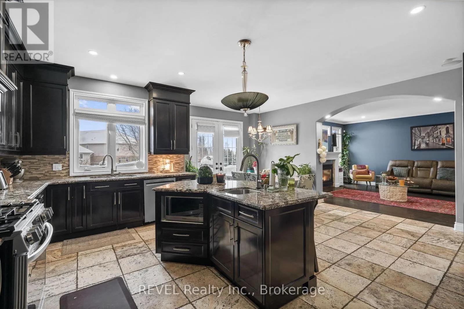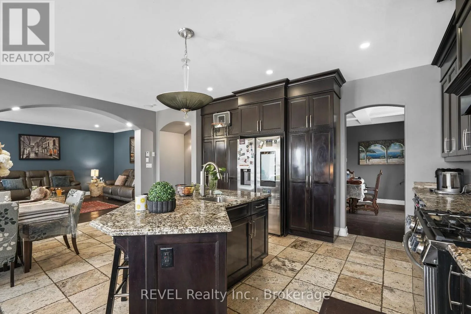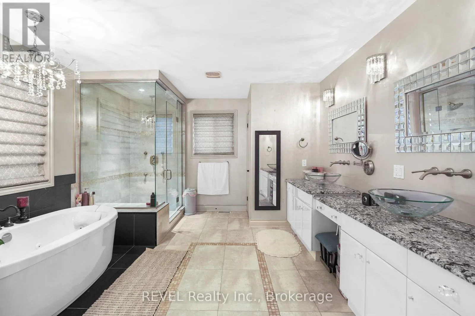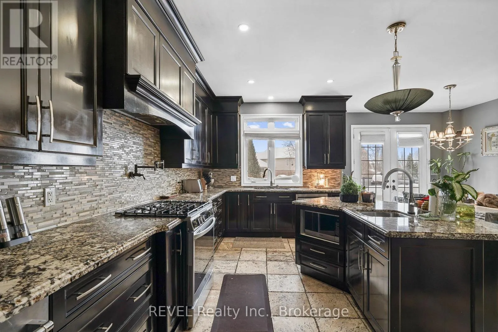 Cross Streets: Richard Cres & Glavic Drive. ** Directions: Kalar Rd, turn east on Glavic Dr, thenturn west onto Richard Cres. One of a kind in Forestview Subdivision luxury at its finest with Award winning OASIS Backyard - Luxury Pie-Shaped Lot with Resort-Style Amenities! This Home is loaded with all the bells and Whistles .You're looking for. #OpentoAbove #Elevator #Pool #Jaccuzzi #HomeTheatre#WetBar #Gym. All-stone & brick exterior, wrought iron gates, heated saltwater pool, stamped concrete patio, and raised maintenance-free deck over looking a fenced backyard and ravine. Main floor features 20-ft ceilings in living room, elegant dining with coffered ceiling, family room with gas fireplace, office, laundry, and gourmet maple kitchen with granite counters, island, stainless steel appliances, and wine fridge. Upstairs:20x19 ft master suite with spa-like ensuite, 3 additional bedrooms, and stunning views to below. Fully finished walk-out basement with 5thbedroom, 3rd bath, and entertainment space. A rare Niagara Falls luxury home perfect for entertaining and family living (id:27476)