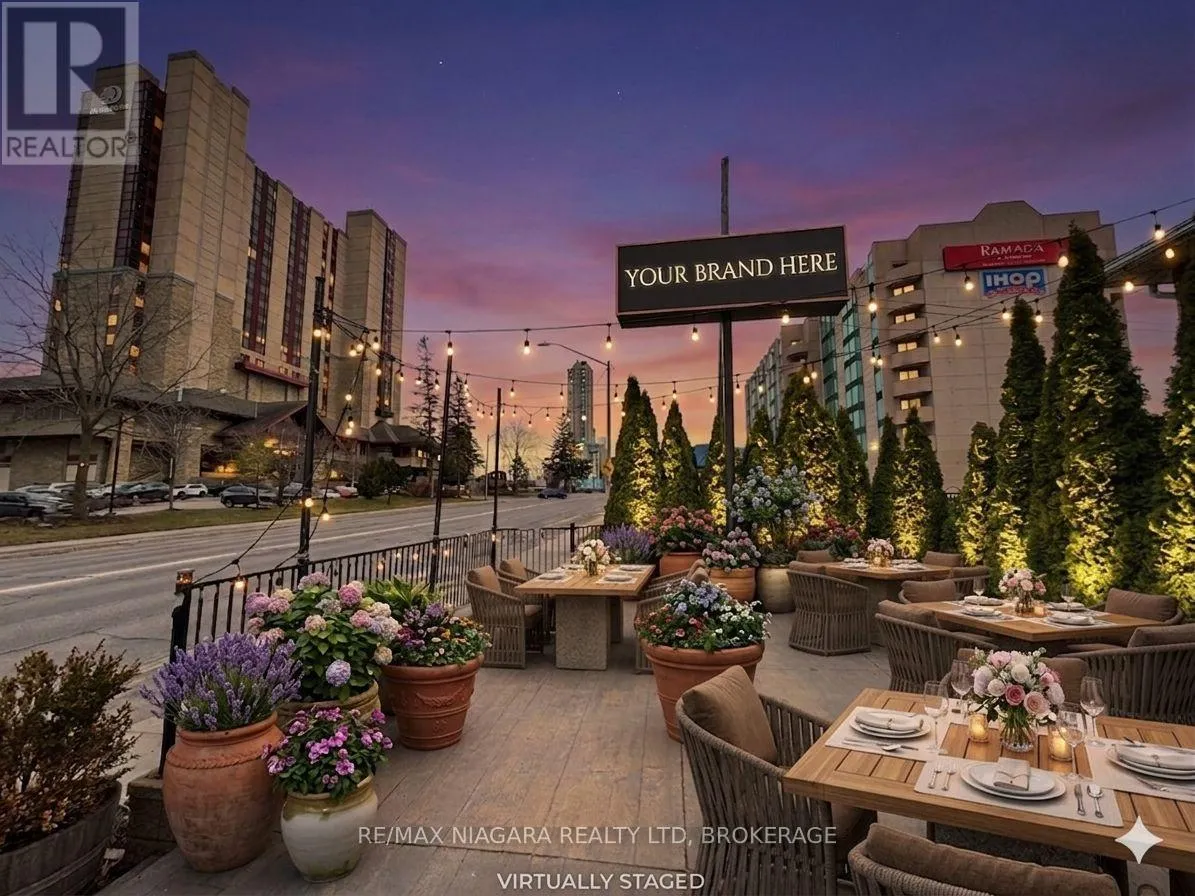 Cross Streets: Stanley/ Ferry. ** Directions: From QEW, make right (south) on Stanley, property on right just after Ferry St. Seize an exceptional opportunity to establish a flagship restaurant or franchise in the heart of the world-renowned Fallsview District. This high traffic location offers unparalleled exposure to millions of annual tourists and features a prominent pylon sign and 15 dedicated parking spaces. The versatile 2,542 sq. ft. space is designed for high-volume success, fully licenced with AGCO, boasting, a licenced 80-seat main dinning room and licenced 40-seat outdoor patio. The property is uniquely equipped with a comprehensive triple-hood system (12ft, 8ft, and 6ft), two separate kitchens - including a full commercial lower level kitchen ideal for catering and prep, along with two walk-in fridges, two walk-in freezers, and extensive storage. Technical specs include a 200 Amp, 600V service, individual water meter, and two rooftop - HVAC units. Triple Net Lease. (id:27476)